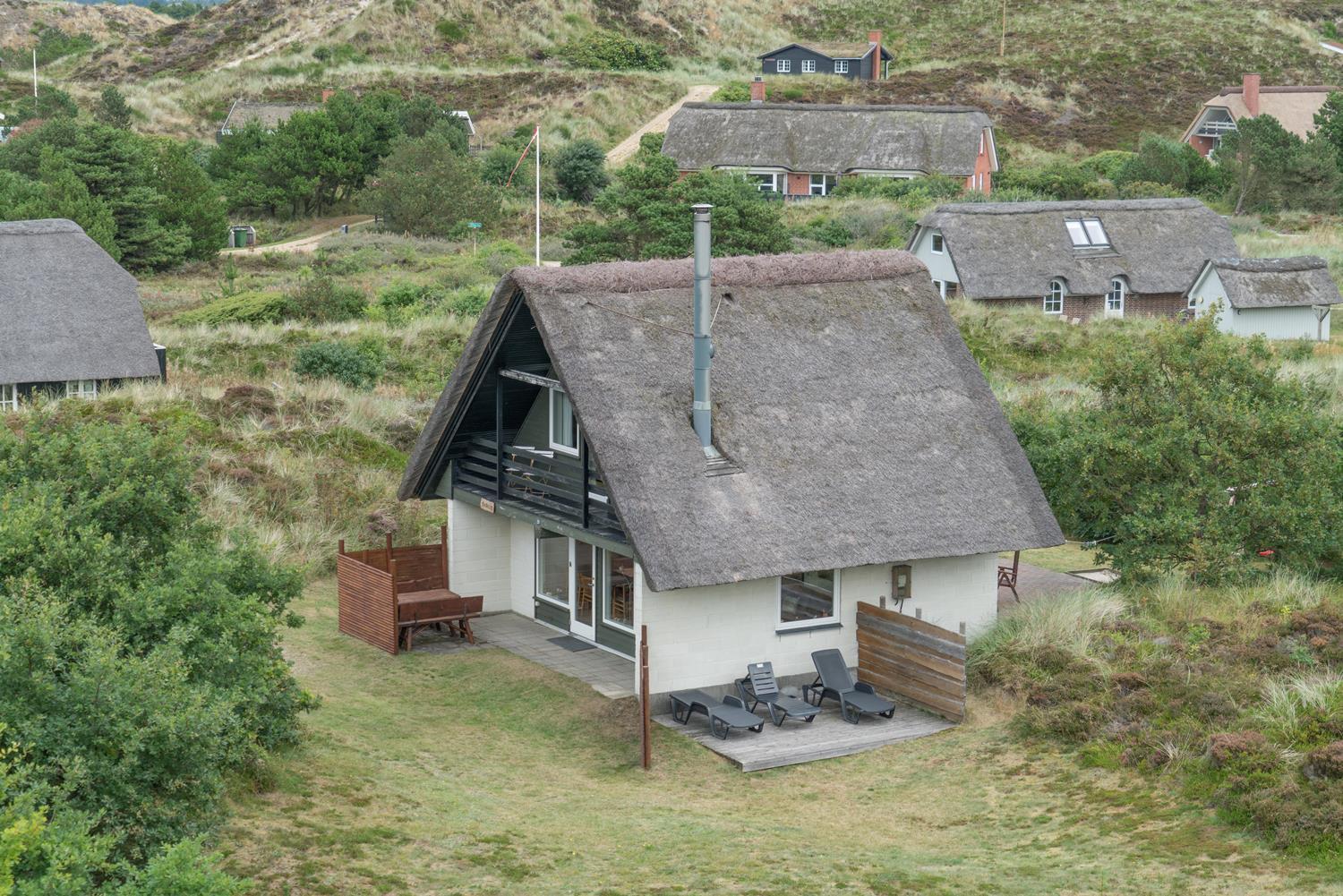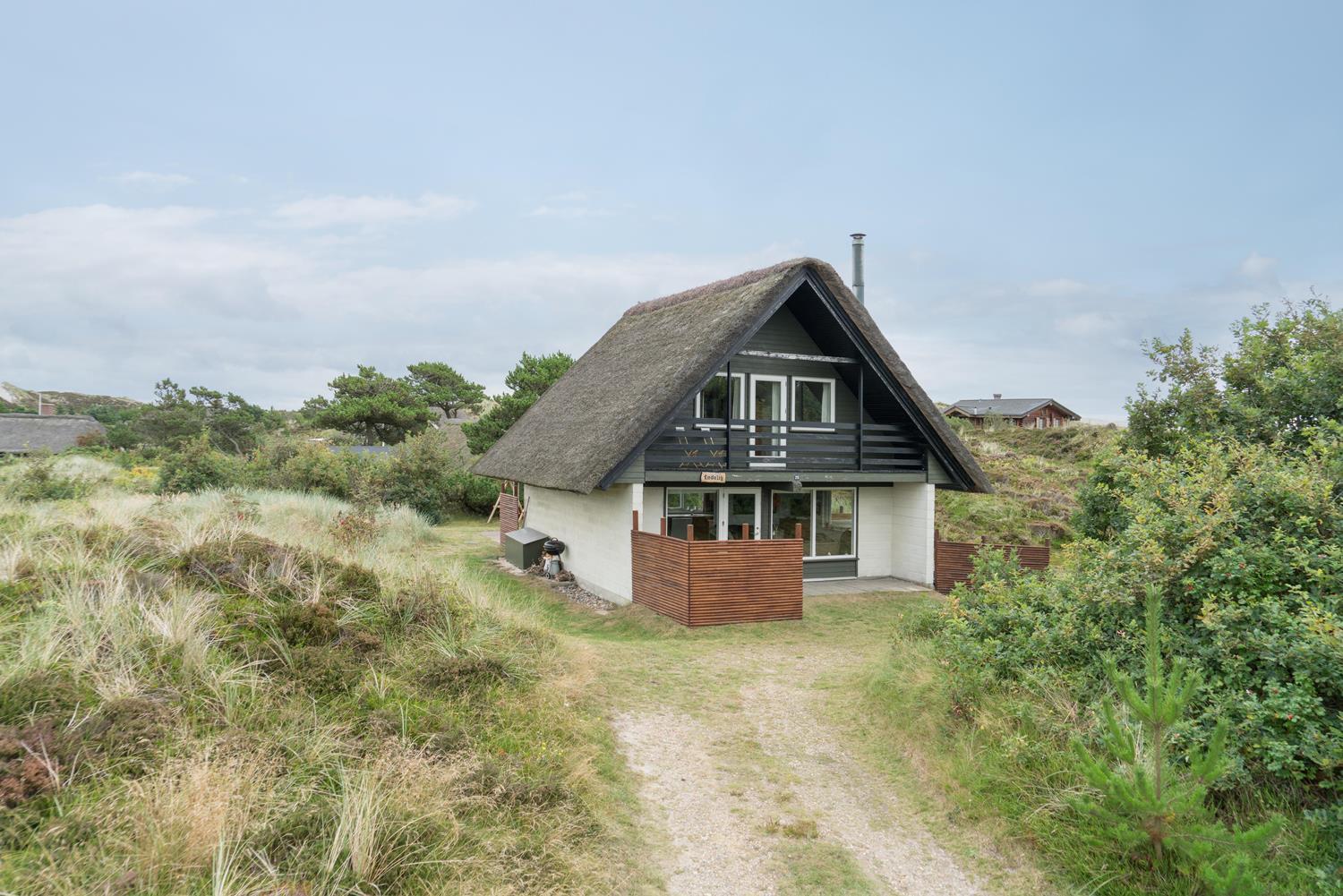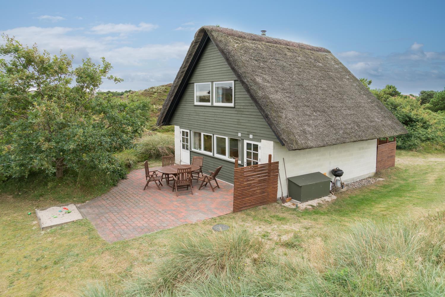 Kleines, gemütliches reetgedecktes Ferienhaus gelegen auf einem ungestörten Dünengrundstück am Ende einer Sackgasse. Das Haus ist modernisiert mit neuer Küche von 2015. Gemütlich eingerichtete Stube mit Kaminofen und Essecke. Älteres Badezimmer im Erdgeschoss. Auf der 1.Etage befinden sich die 4 Schlafzimmer des Hauses. Es gibt einen Sandkasten und eine Schaukel für die kleinen Gäste. Mehrere gute Terrassen und einen Balkon. Drahtlos Internet gibt es ebenfalls im Haus.