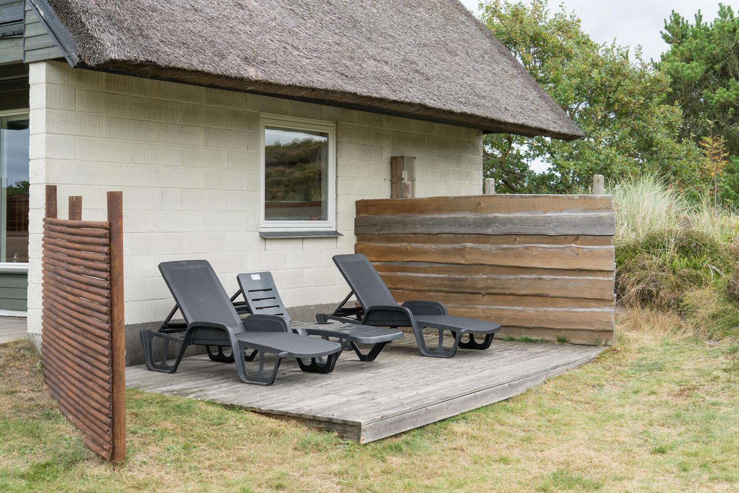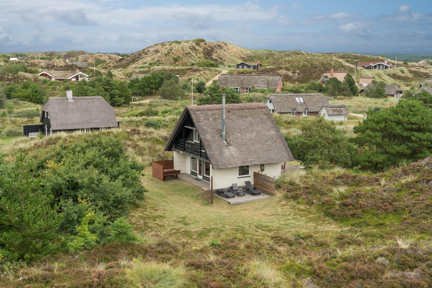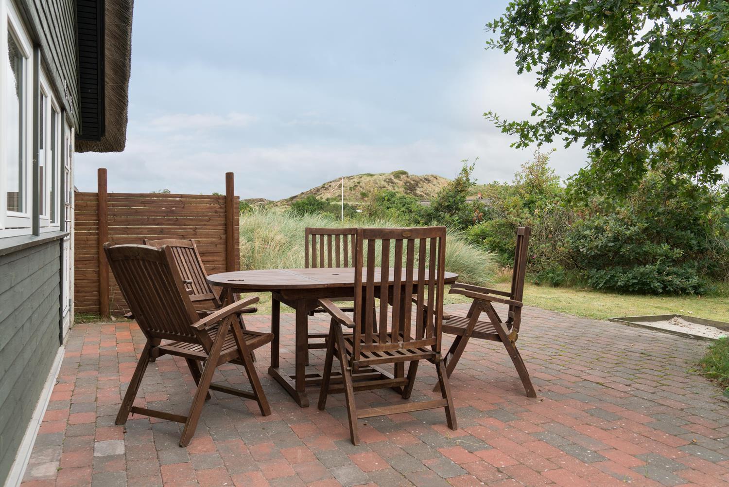 Kleines, gemütliches reetgedecktes Ferienhaus gelegen auf einem ungestörten Dünengrundstück am Ende einer Sackgasse. Das Haus ist modernisiert mit neuer Küche von 2015. Gemütlich eingerichtete Stube mit Kaminofen und Essecke. Älteres Badezimmer im Erdgeschoss. Auf der 1.Etage befinden sich die 4 Schlafzimmer des Hauses. Es gibt einen Sandkasten und eine Schaukel für die kleinen Gäste. Mehrere gute Terrassen und einen Balkon. Drahtlos Internet gibt es ebenfalls im Haus.
