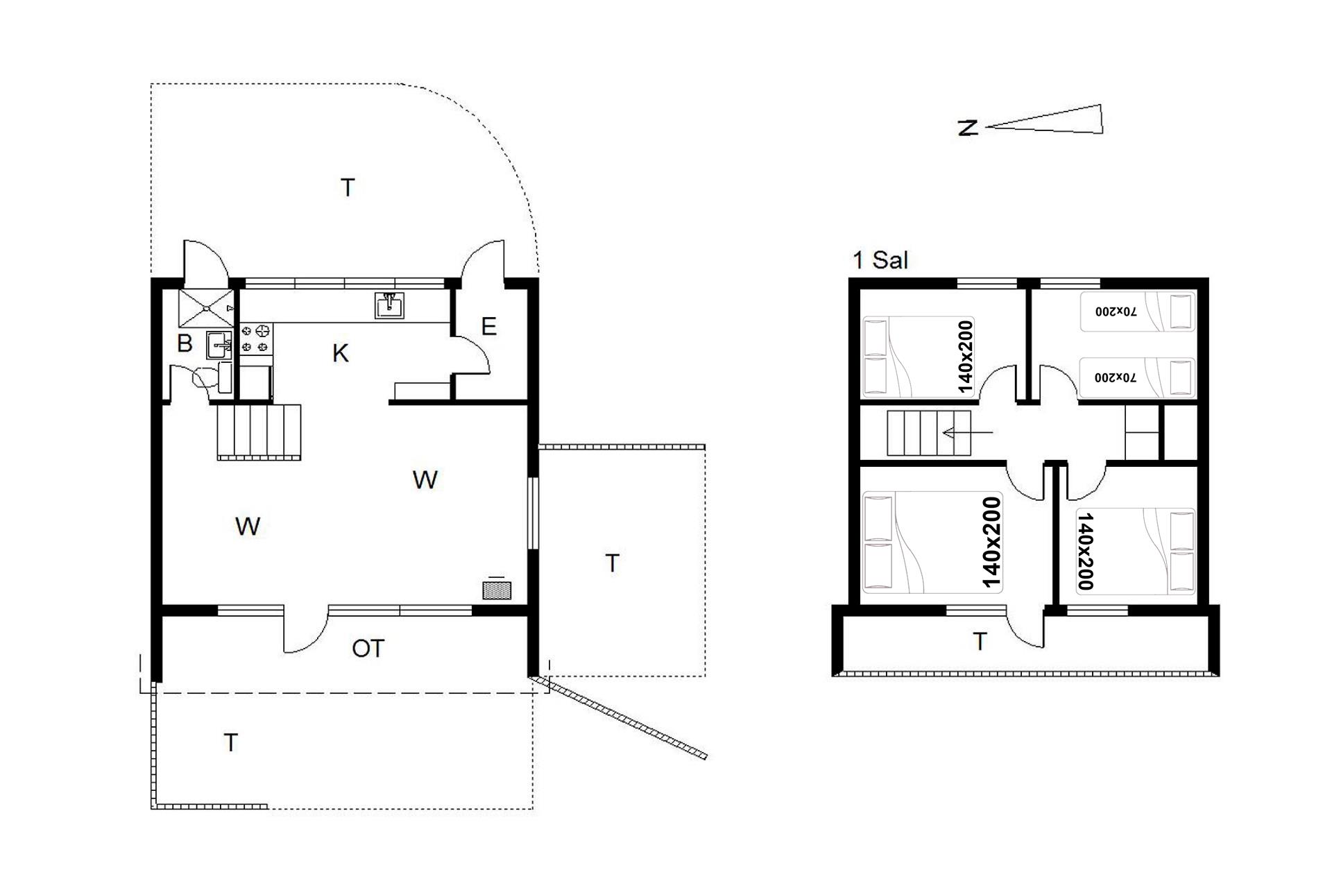 Bettengrösse: 3 Doppelbetten 140 x 200 cm + 2 Einzelbetten 70 x 200 cm.