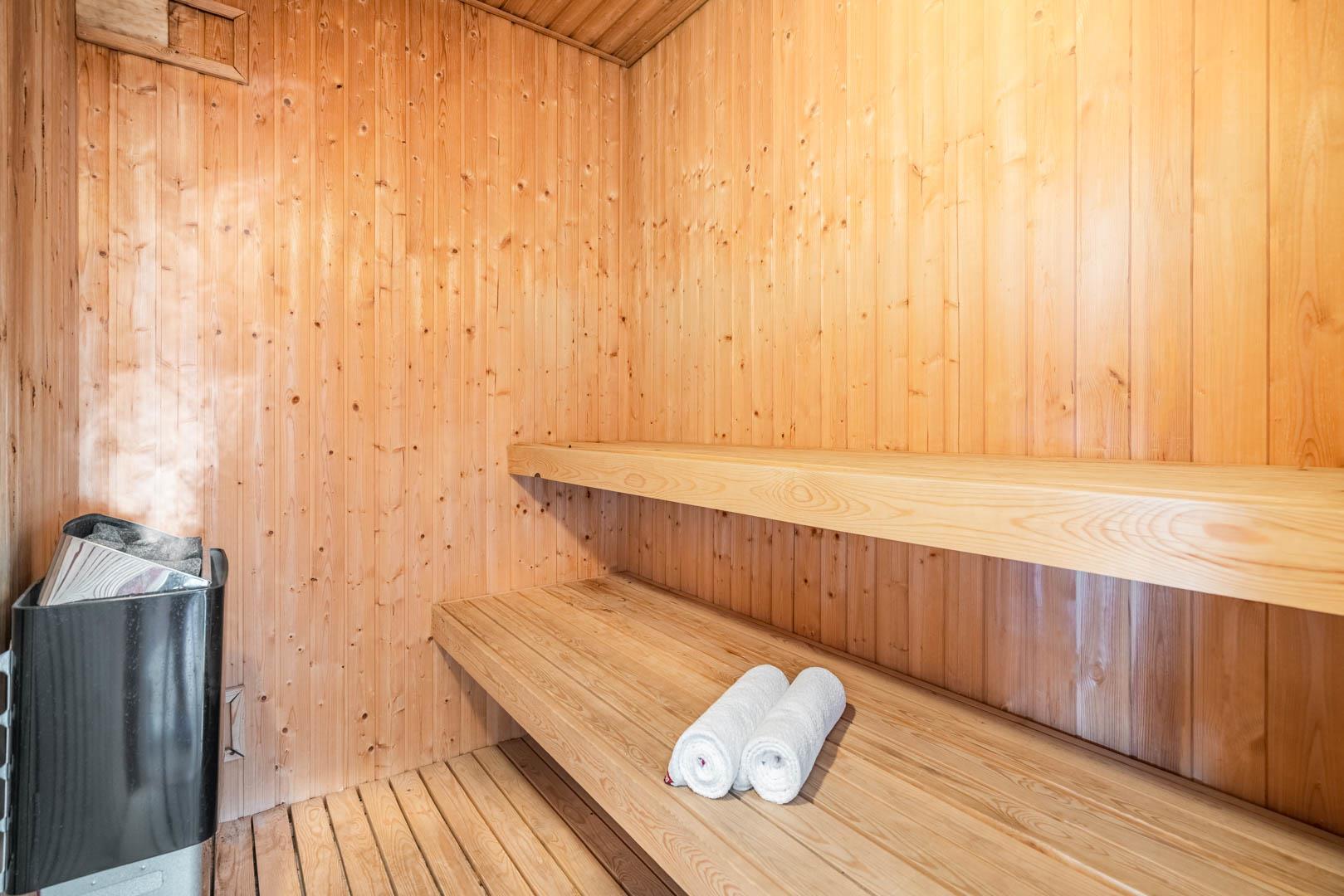 Vom Poolbereich gelangt man auf eine herrliche geschlossene Innenhofterrasse, die in den Sommermonaten wunderbar ist, wenn die Tage langsam sind und man keine Lust hat, ins 'richtige' Wasser zu gehen, wenn man sich etwas abkühlen möchte . In der kalten Jahreszeit ist der bequeme Zugang zur Sauna wunderbar für frische Winterbader.