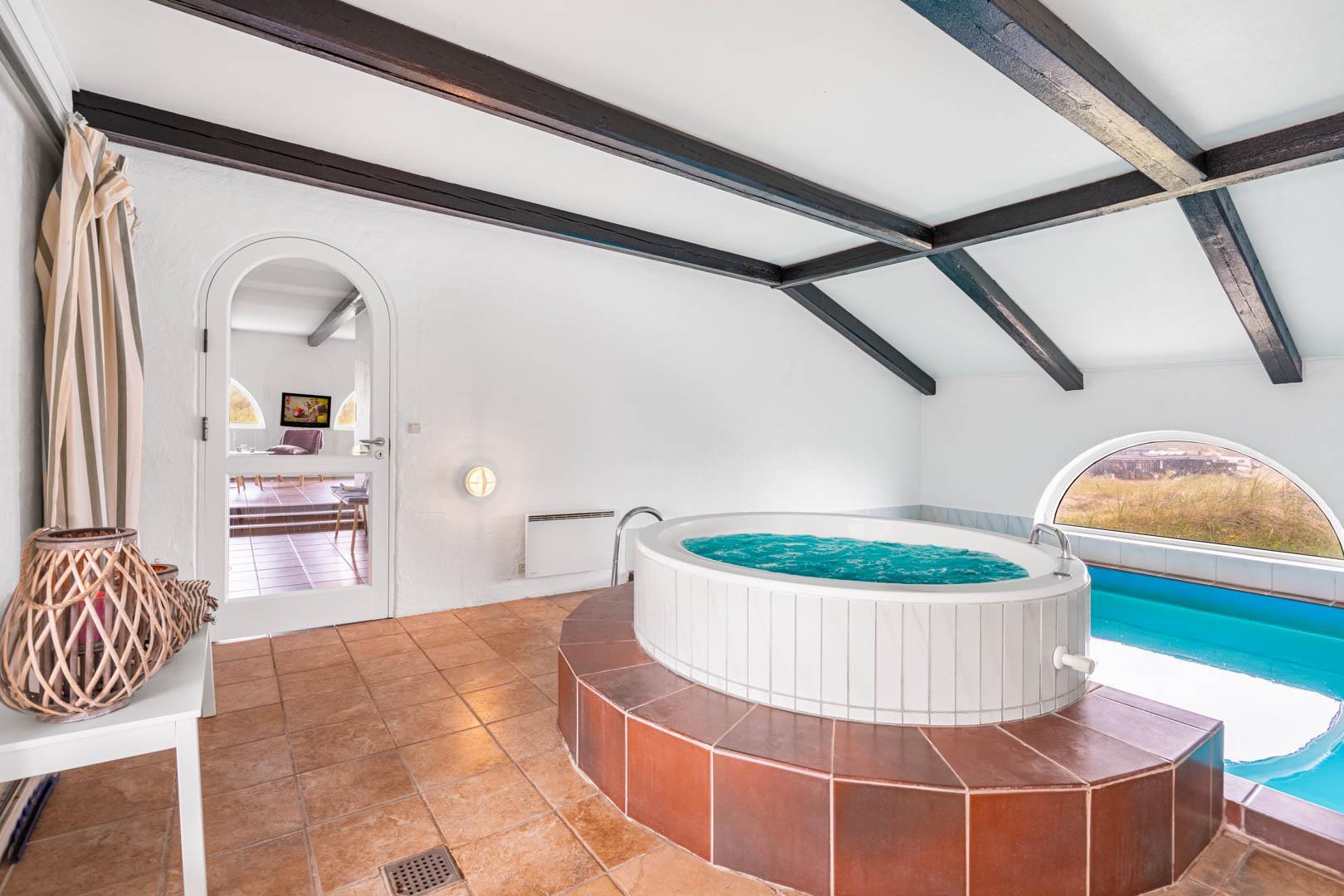 Vermissen Sie den Charme Andalusiens oder das prickelnde Sommerleben der Costa Brava? Dann buchen Sie einen Urlaub oder ein Wochenende in diesem fantastischen Haus 683 - Strandvejen 439 in der idyllischen Dünenlandschaft von Henne Strand. Das Haus ist durch und durch spanischen Stil mit weiß getünchten Wänden, rustikalen Balken und einer stimmungsvollen Hofterrasse gebaut und da es in der ersten Reihe zum Strand liegt und über einen Swimmingpool verfügt, ist es fast so, als käme man in den Süden - unabhängig von der Saison.