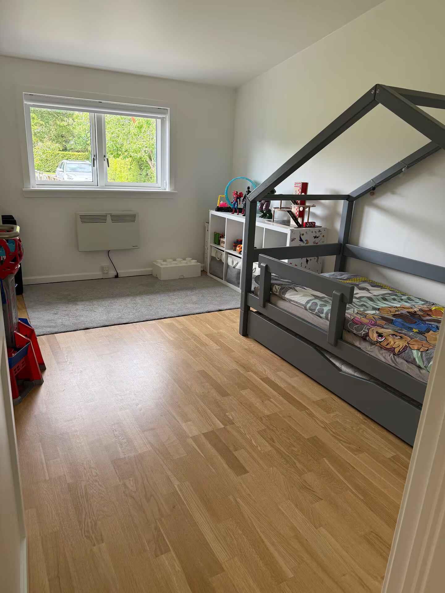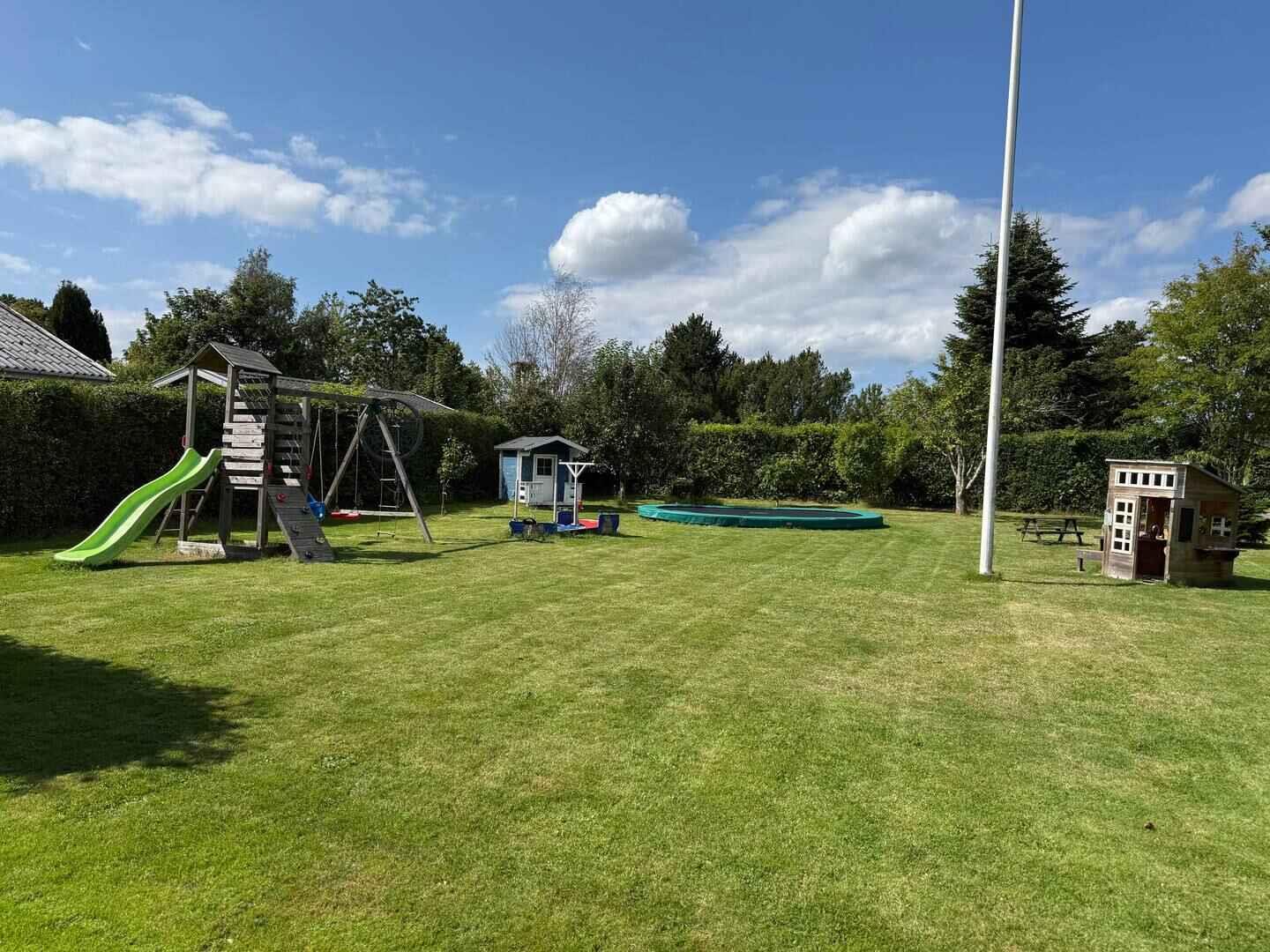 The 118 m² holiday home provides a comfortable setting for up to six guests. The layout is simple and practical, with a separate kitchen, dining room and living room, allowing meals and relaxation to take place in a calm atmosphere. The house includes three bedrooms, including a children’s room with two beds. With air conditioning and a pellet stove, the home stays comfortable throughout the year. The floor plan makes it easy for families to spend time together. The private garden is large and sheltered, offering plenty of space for play, games and relaxation. At the front of the house, a small play area allows children to enjoy activities safely while adults unwind. The area is well suited for guests seeking both nature and access to nearby attractions. Hillerød offers Frederiksborg Castle, the castle lake and scenic park areas for walks or boat rentals in summer. Gribskov and Lake Esrum are also close by with great cycling and hiking routes. Shops, cafés and restaurants are within short distance, while the house remains in peaceful surroundings without through-traffic. Copenhagen can be reached in about 40 minutes by car, making it easy to combine cultural experiences with quiet days back at the house. The property suits families and couples looking for an informal base with plenty of space and easy access to activities. Days can be spent in the garden, exploring nature or taking trips to castles, forests and lakes in the area. A welcoming place to return to after a day out — ideal for weekends or longer stays all year round.