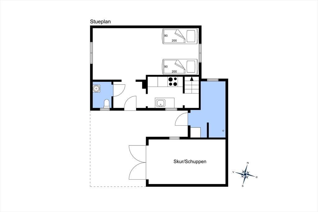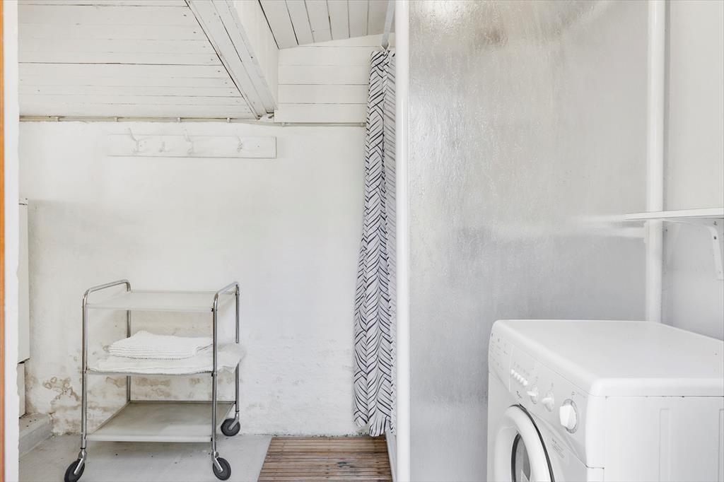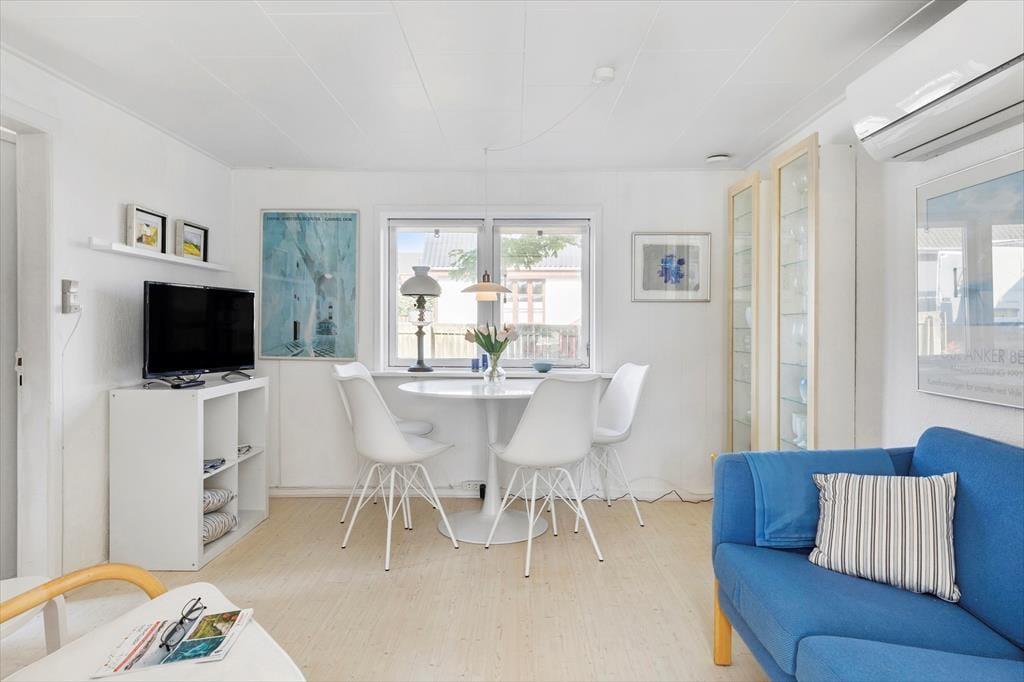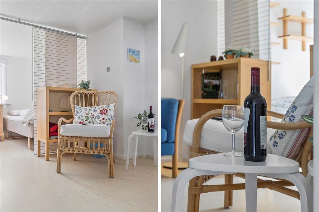 Wenn du das Haus betrittst, wirst du von einem hellen und freundlich eingerichteten Wohnzimmer empfangen, das nach den Erlebnissen des Tages zu Ruhe und Gemütlichkeit einlädt. Hier kannst du dich mit einer Tasse Kaffee ins Sofa sinken lassen, während du den nächsten Ausflug planst oder einfach der Stille lauschst. Das Haus verfügt über eine separate Küche, in der du in ruhiger Umgebung kleine Urlaubsmahlzeiten zubereiten kannst, und der schlichte Stil vermittelt das Gefühl, dass das Tempo sinkt, sodass du den Urlaub in deinem eigenen Rhythmus genießen kannst. Eine Toilette und ein Waschbecken befinden sich im Haus, während sich die Dusche in einem kleinen Nebengebäude befindet – ein Detail, das für authentische Ferienhausatmosphäre sorgt.