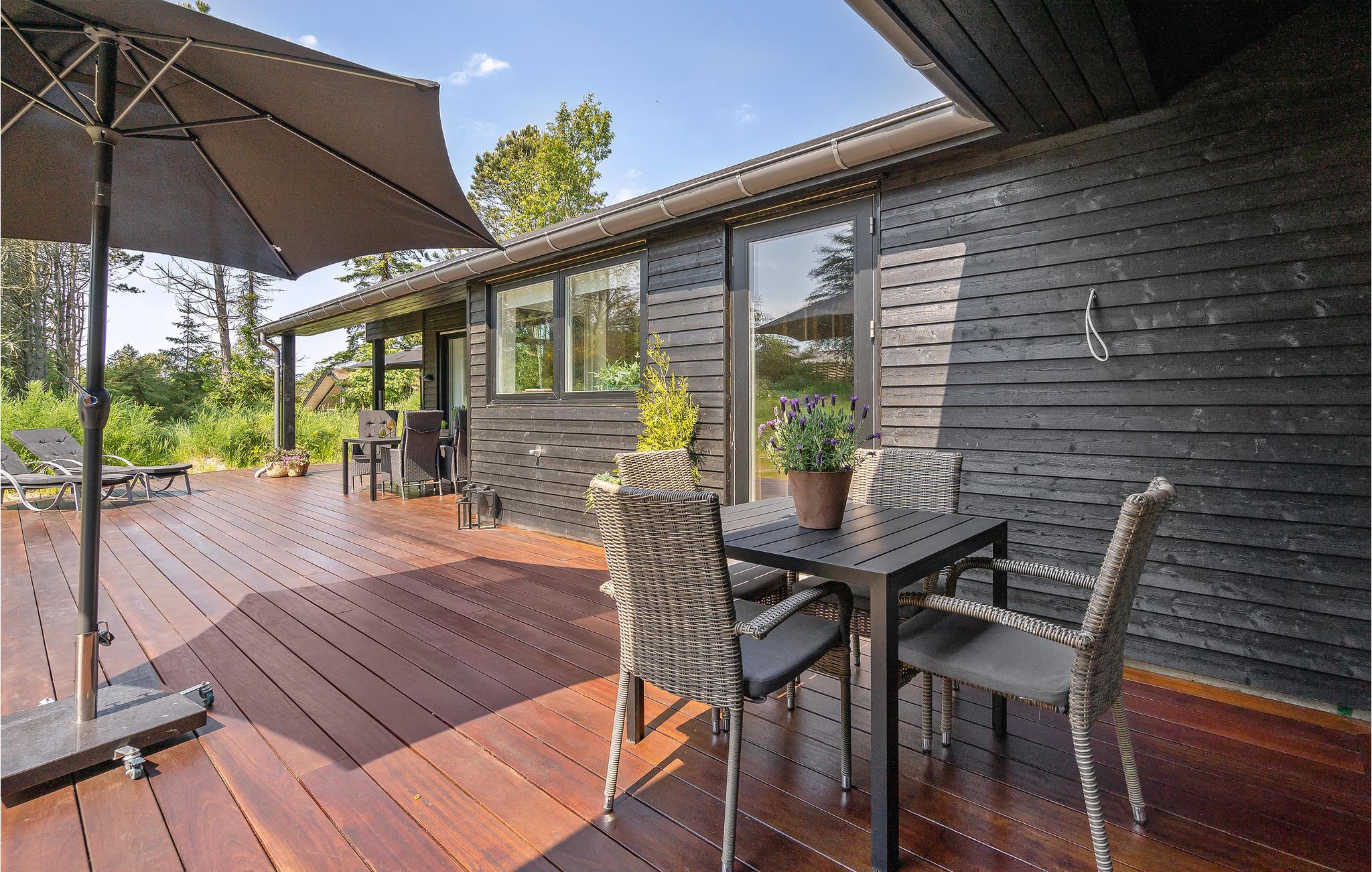 Das Haus befindet sich auf einem schönen abgelegenen Grundstück, umgeben von Bäumen. Auf der großen Terrasse können Sie lange Sommerabende genießen.
