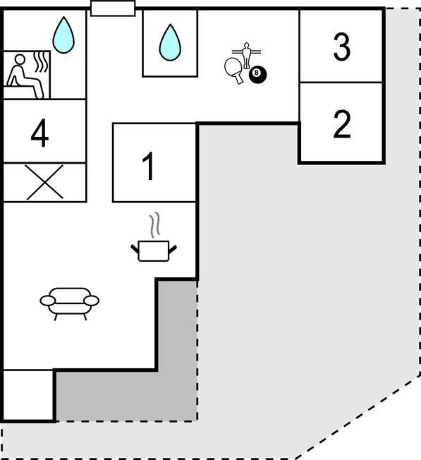 Entspannen Sie hier auf dem Sofa mit einem prasselnden Feuer im Kamin oder bei einem spannenden Filmabend. Für Unterhaltung ist im Aktivitätsbereich mit Tischfußball und Billardtisch gesorgt. Schöne Wellness-Momente bietet das Bad mit Badewanne und Sauna oder das Badefass mit Whirlpoolfunktion im Garten.