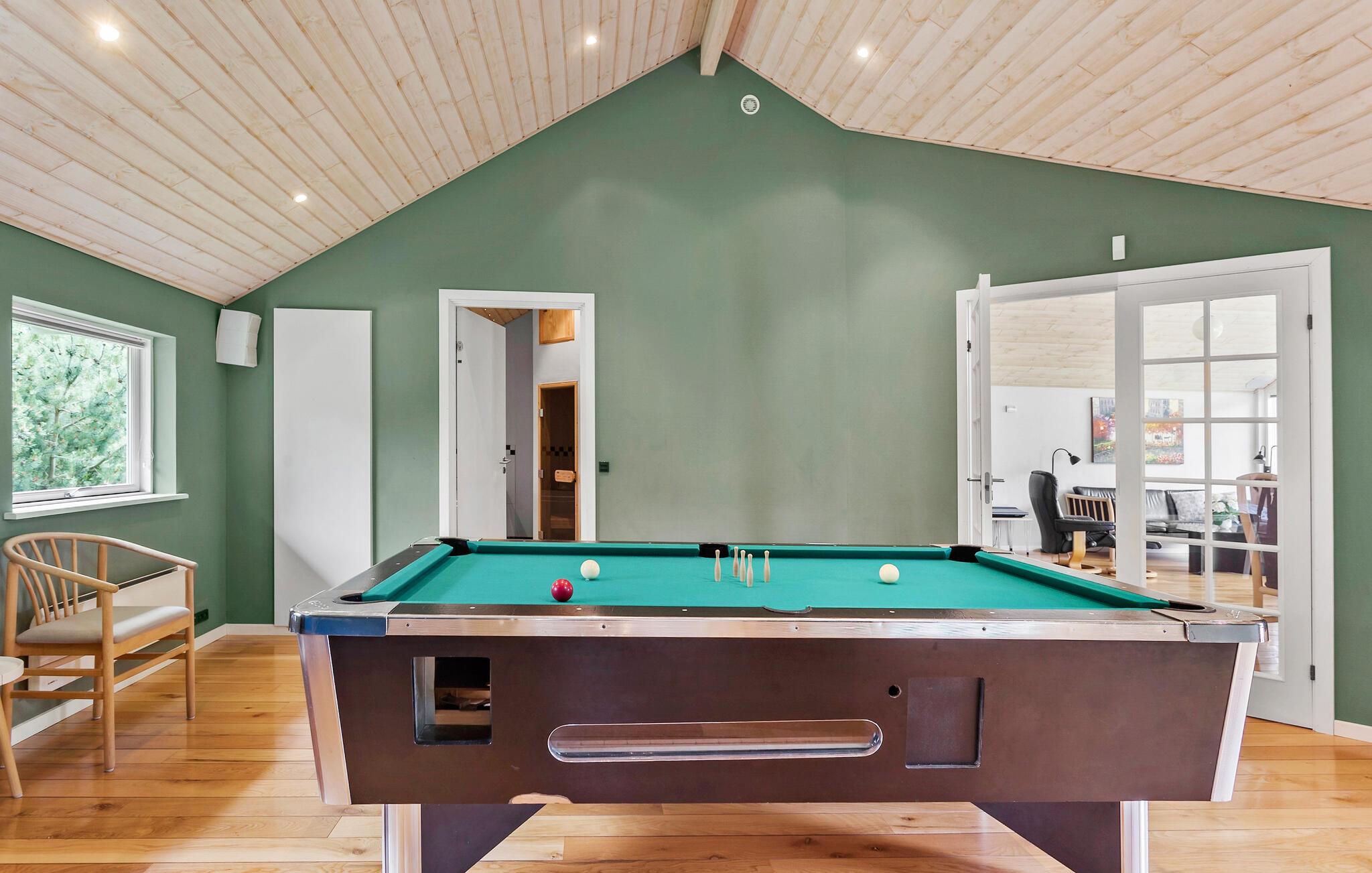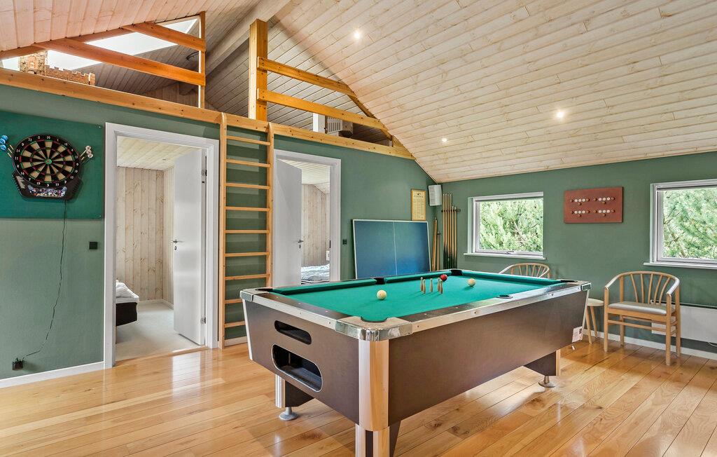 Ihr Ferienhaus, gelegen in der Nähe des Fährhafens von Rødby, bietet viel Platz für eine große Familie oder zwei befreundete Familien, die gemeinsam die schöne Insel Lolland erleben möchten. Das einladende Ferienhaus besticht durch seine geräumigen Innen- und Außenbereiche sowie viele Aktivitätsmöglichkeiten. In der offenen Küche können Sie gemeinsam köstliche Mahlzeiten zubereiten und diese am langen, eleganten Esstisch genießen, während das Kaminfeuer eine gemütliche Atmosphäre schafft. Im Aktivitätsraum können Sie den Urlaubsfamilienmeister im Billard, Tischtennis oder Dart ermitteln.