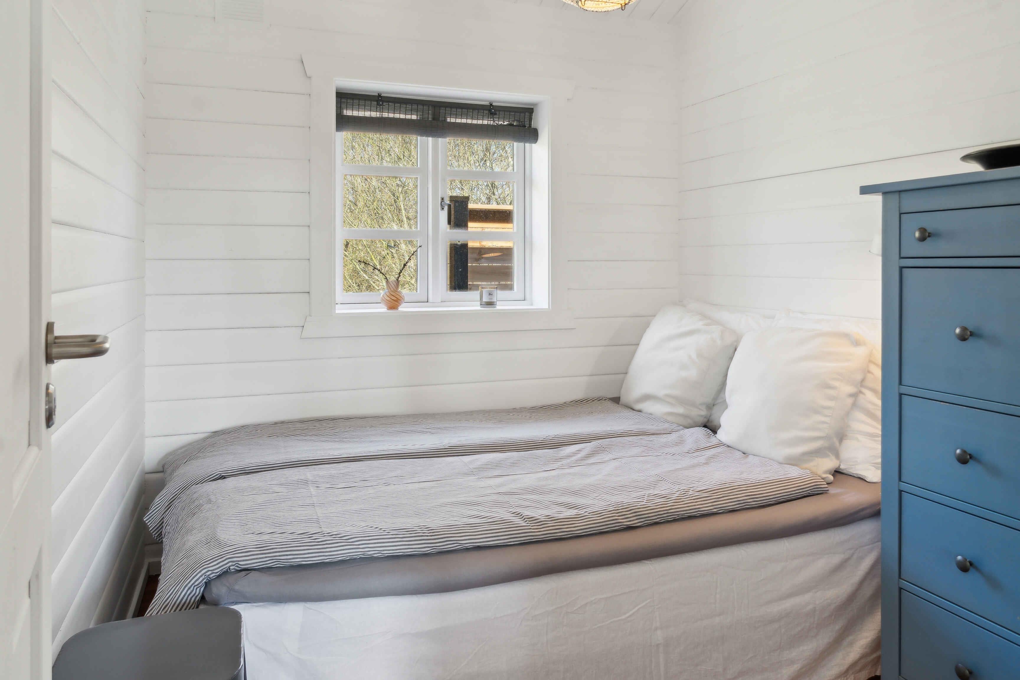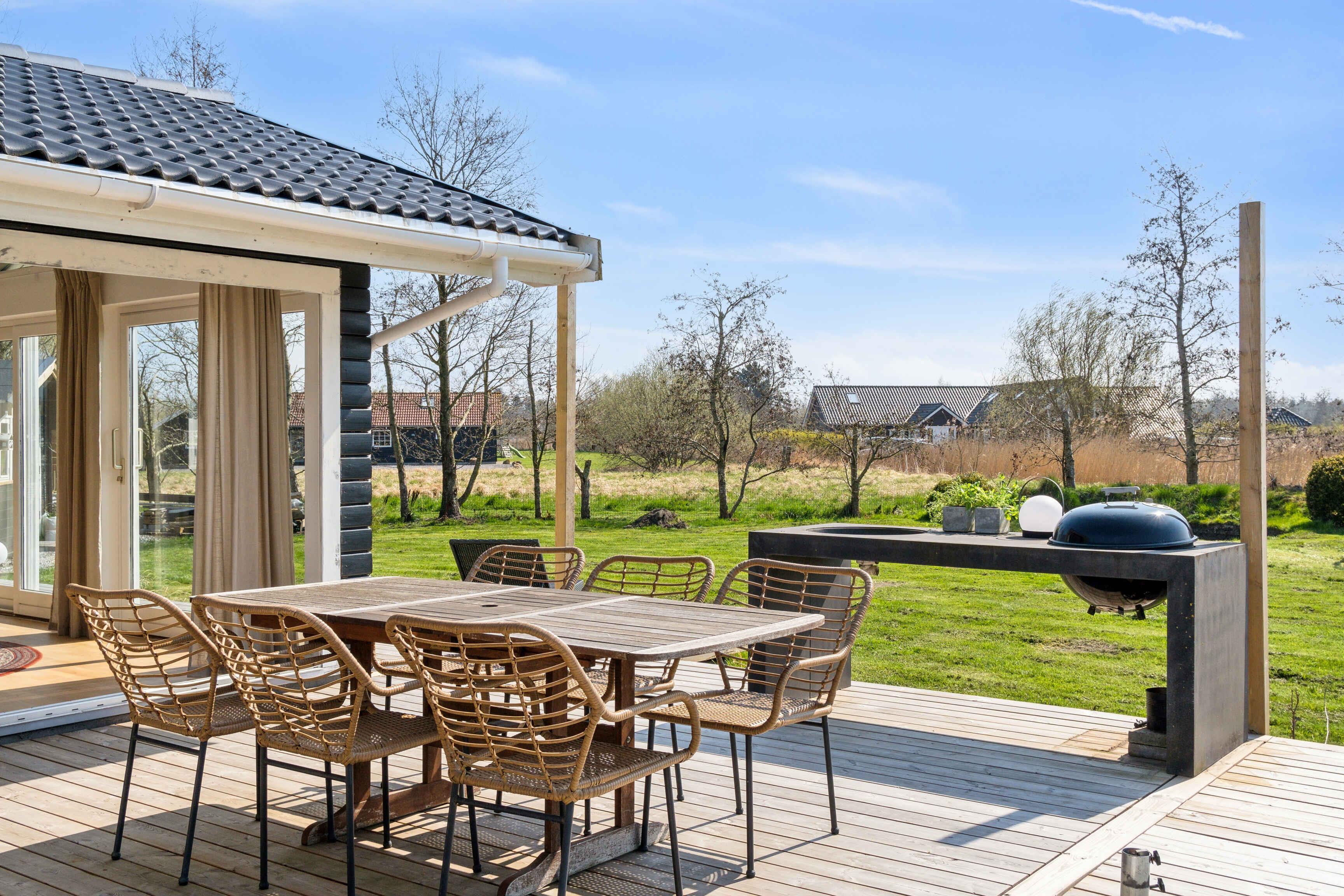 Enjoy the enchanting atmosphere of a cozy cottage that exudes genuine charm. Step out onto the impressive wooden terrace, where you can relax and enjoy a wonderful meal at one of the dining areas designed for this purpose. Or simply sit on one of the garden sofas and read a good book, watch the wildlife in the garden or play games. The possibilities are many. This wonderful retreat is located only 3 km from Marielyst city center and close to the lovely Marielyst Beach. There are bicycles here so you can easily get around. Marielyst beach has been voted Denmark's best beach several times. When you get back from the beach, you can enjoy a hot or cold bath in the outdoor shower and wash off the sand and salt. Marielyst city center offers lots of restaurants, paddle tennis, mini golf cafes and much more. Here you can feel the real summer atmosphere with its many ice cream parlors, lifestyle shops and market every Tuesday during the summer holiday months. Marielyst Street Food is also worth a visit, with activities, food stalls and a big screen all summer long showing films, sporting events and other large events. At Marielyst Street Food there are several paddle courts, football fields, mini golf, bowling and much more. The house offers a kitchen-dining room, equipped with what you would expect in a summer house kitchen, inviting you to cozy cooking sessions and long dinners. The house includes two bedrooms with beds of 180 x 200 and 140 x 200, respectively, which promise comfortable nights. The intimate and cozy living room offers entertainment with a projector and a lot of board games, as well as a comfortable lounge bed. Outside on the terrace there is a gas grill and a sink if you would rather clean out the fresh potatoes from Marielyst Gårdbutik outdoors. If the weather is not at its best and the terrace is not the obvious choice for the dining experience, the dining room is cozy with windows on three sides, so you almost feel like you are sitting in the middle of nature. Here, on one side, towards the sunset, there is a folding door section that can be opened all the way up, so inside and out almost flow together This beautiful cottage gives you the opportunity to embrace the true cottage atmosphere and create memories while enjoying the best of both nature and experiences. Note: Not for commercial rental.
