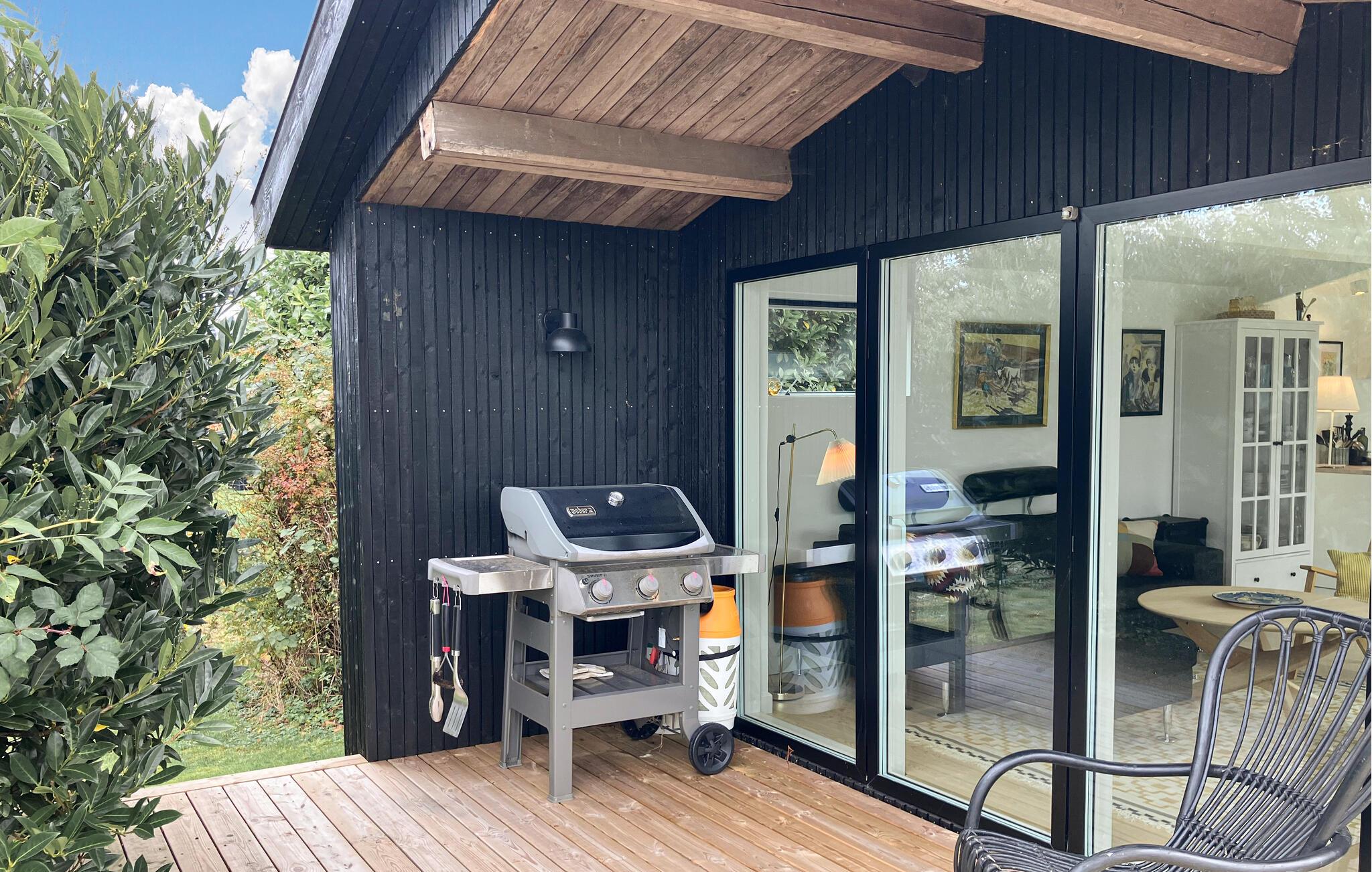 Verbringen Sie schöne Stunden auf der großen Holzterrasse, die sich über die gesamte Hausfront erstreckt. Genießen Sie die freie Urlaubszeit mit einer Tasse Kaffee oder entspannen Sie auf den Gartenmöbeln mit Blick auf den Fjord. Grillen Sie an milden Sommerabenden und lassen Sie den Tag in ruhiger Stimmung ausklingen. Der weitläufige Garten bietet Platz für Spiel, Bewegung und Erholung.