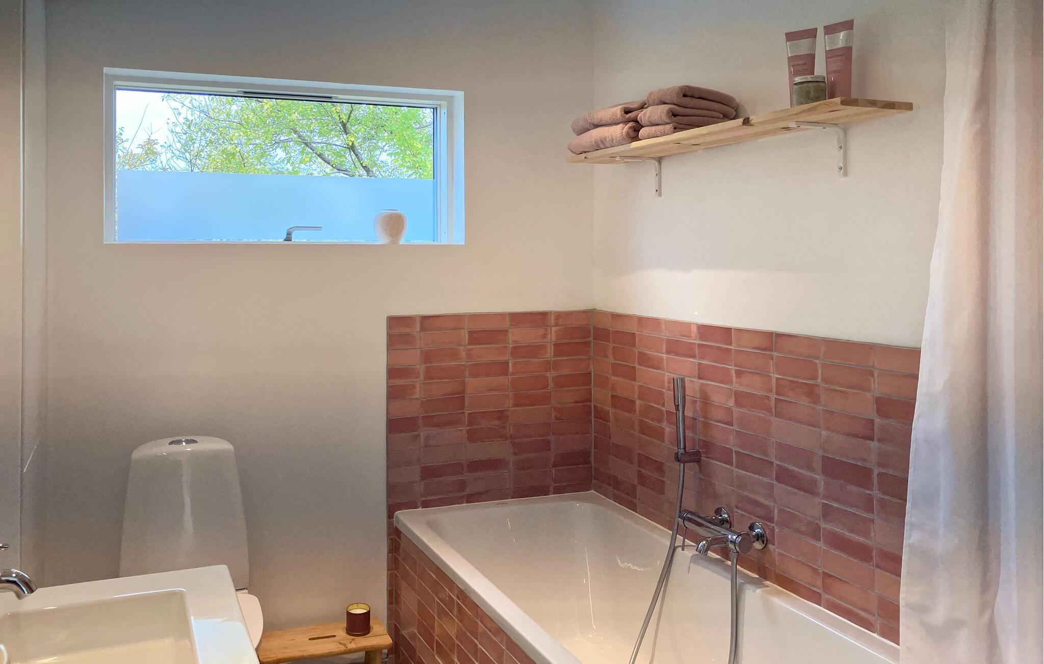 - WC mit warmem und kaltem Wasser, Handbrause, Badewanne und Dusche