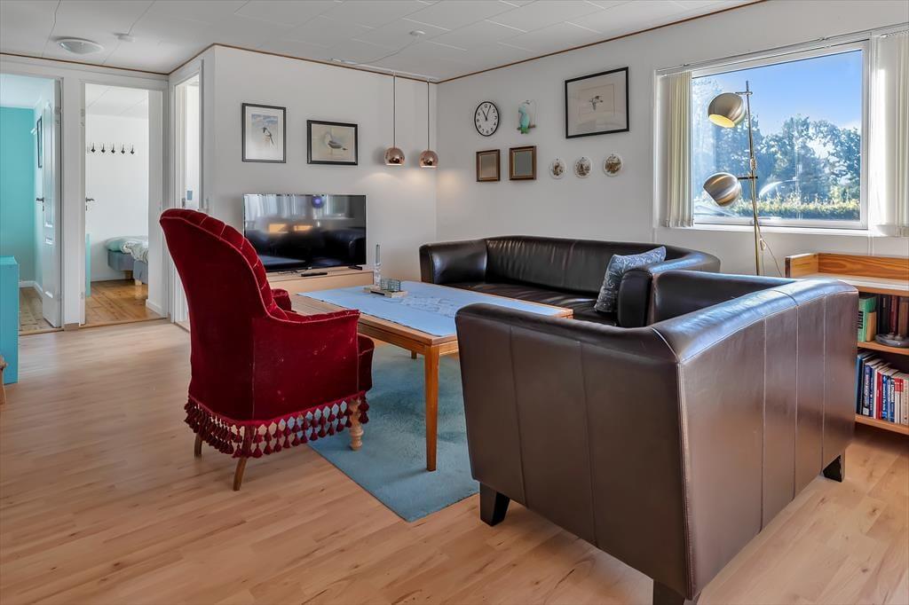 Das Ferienhaus begrüßt Sie mit zwei guten Schlafzimmern, von denen eines mit einem Doppelbett und das andere mit zwei Einzelbetten samt ausreichend Schrankfläche ausgestattet ist. Im Wohnraum sorgt ein Fernseher mit Chromecast dafür, das Sie selbst im Urlaub Ihre Lieblingsserien streamen können. Die Küche fügt sich praktischerweise offen in den Wohnraum ein. Vom Wohnraum aus genießen Sie direkten Zugang zur gemütlichen, überdachten Terrasse, auf der Sie wunderbar grillen und es sich entspannt auf den Gartenmöbeln gemütlich machen können. Während Sie sich auf der Terrasse in vollen Zügen erholen und entspannen, beobachten Sie Ihre Kinder, die vergnügt im großen Garten und im gemütlichen Spielhaus spielen oder auf das Fußballtor schießen. Das Annex enthällt ein Dobbeltbett und TV.