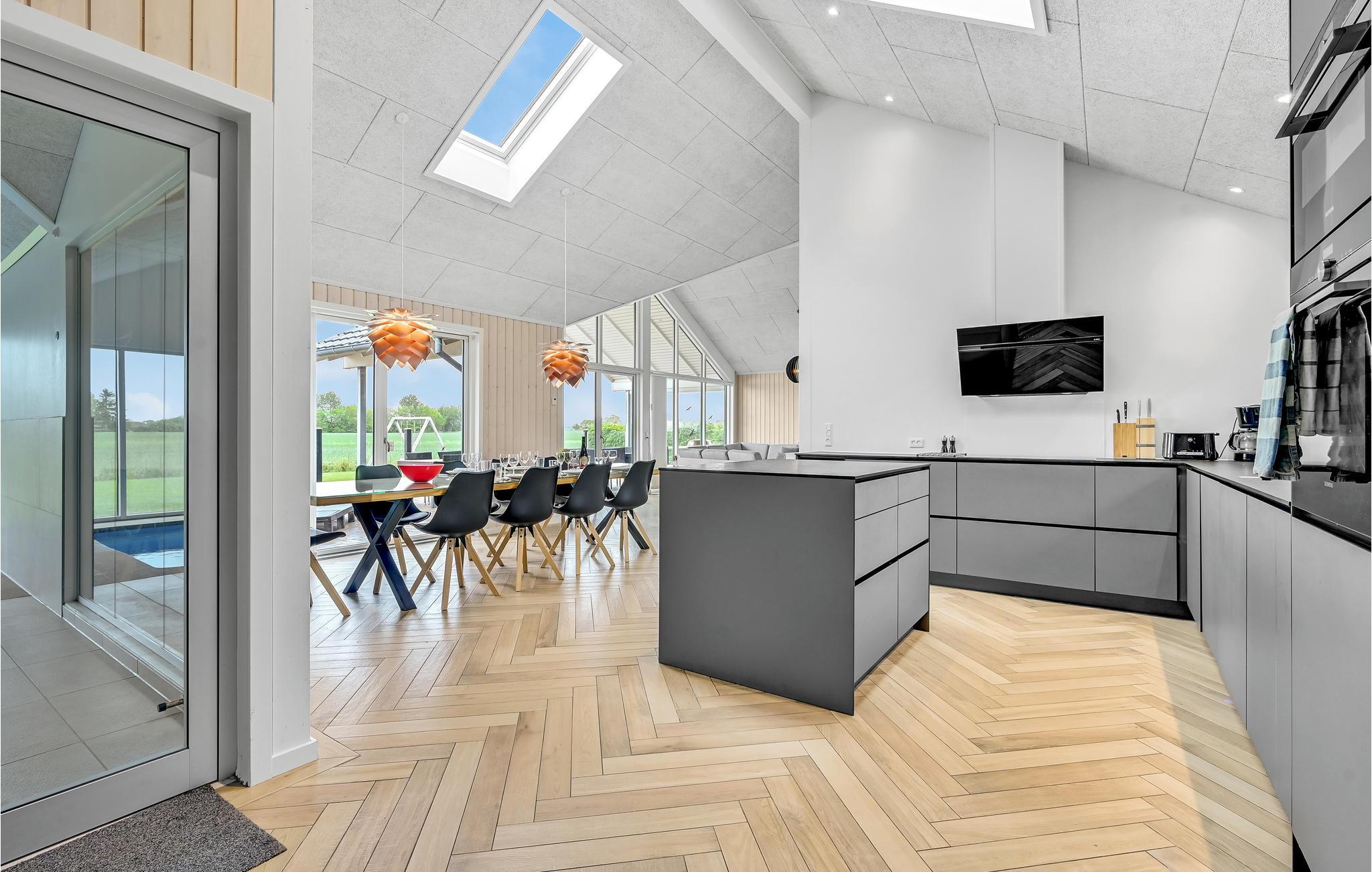 Die schöne große Terrasse ist mit Gartenmöbeln ausgestattet, wo Sie sitzen und den Urlaub in vollen Zügen genießen können. An warmen Sommerabenden können Sie am Grill eine leckere Mahlzeit zubereiten. Das Haus verfügt über fünf gute Schlafzimmer und einen Zwischenboden mit vier Schlafplätzen, den Sie aus dem Aktivitätsraum erreichen. Fünens bester Badestrand liegt in kurzer Entfernung. Wenn Sie mehr erleben wollen, als das Haus zu bieten hat, erreichen Sie in einer halben Stunde Dänemarks drittgrößte Stadt Odense, wo Sie alles an Erlebnissen, Aktivitäten und Sehenswürdigkeiten finden, was das das Herz begehrt.