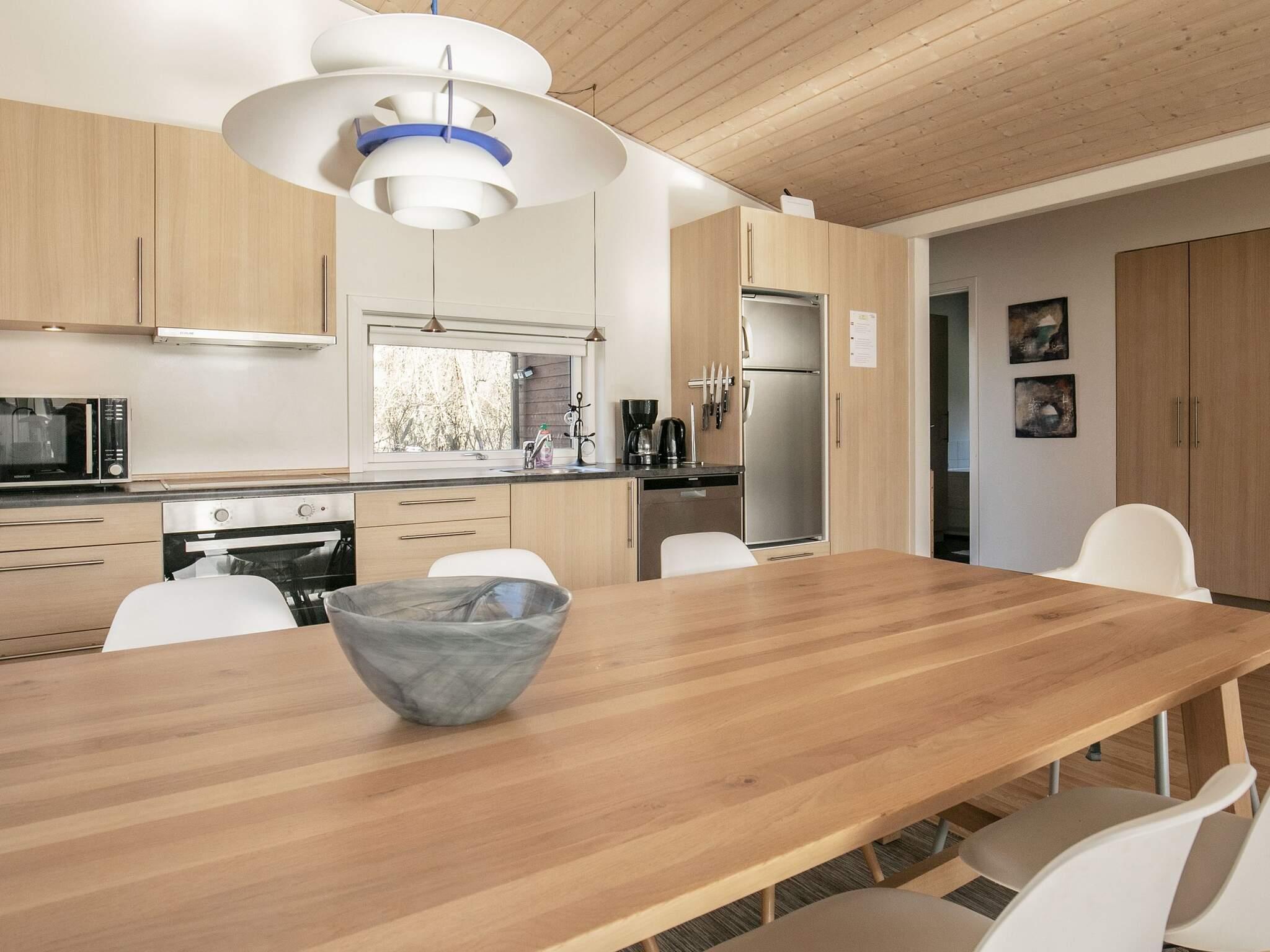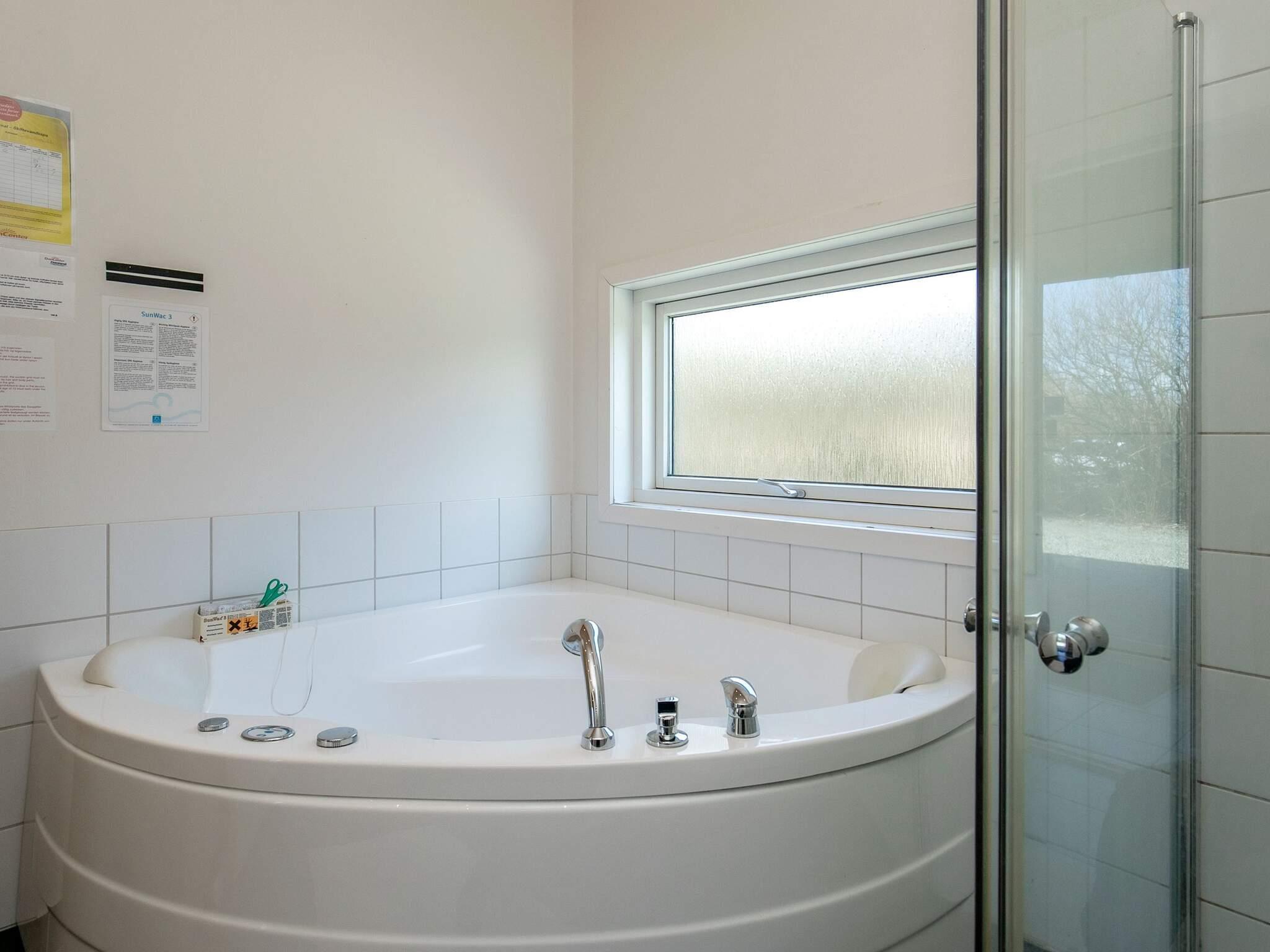 Auf einem großen Naturgrundstück, nur ca. 200 m von der Küste bei Kærgården, findet man dieses Ferienhaus mit Whirlpool im Bad. Das Haus ist innen hell und wohnlich eingerichtet mit einem großen Fenster zur Terrasse. Es gibt drei große Schlafzimmer; zwei mit je einem Doppelbett, das dritte mit zwei Einzelbetten. Alle Zimmer bieten gute Staufläche. Für die kleinen Feriengäste stehen sowohl Hochstuhl als auch Kinderbett bereit.