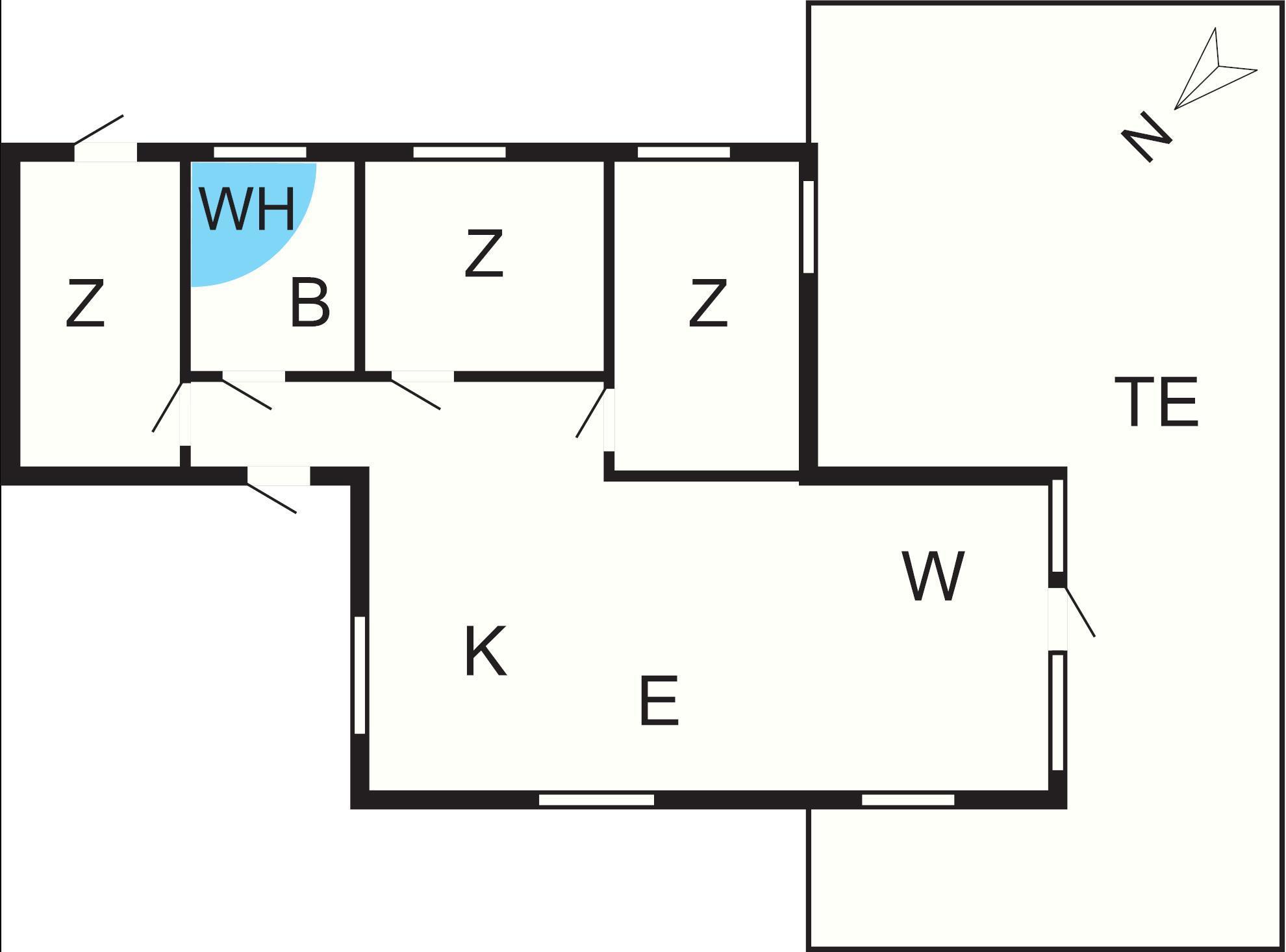 Große, offen kombinierter Wohn-/Essbereich und gut ausgestattete Küche mit u.a. Geschirrspüler, Kühl-/Gefrierschrank, Mikrowelle und Ceranfeld. Vom hellen Wohnbereich hat man direkten Zugang zur großen, offenen Terrassenfläche. Zur technischen Ausstattung des Ferienhauses zählen freie WLAN, TV, DVD-Player und Chromecast zum Streamen eigener Anbieter. Zudem Badezimmer mit Whirlpool für zwei Personen sowie angenehmer Fußbodenheizung und Dusche im Haus. Außerdem stehen Waschmaschine und Wäschetrockner bereit. Außen große, offene Terrasse mit hochwertigen Gartenmöbeln und Grill für schöne Tage und Abende. Für die kleinen Gäste gibt es einen direkten Zugang zu dem schönen Gemainschaftsspielplatz.