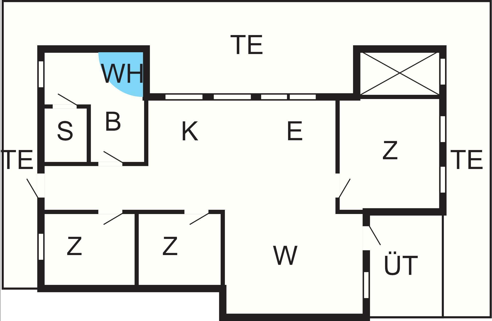 Bad: WC, Waschb., Dusche, Fußbodenheiz.