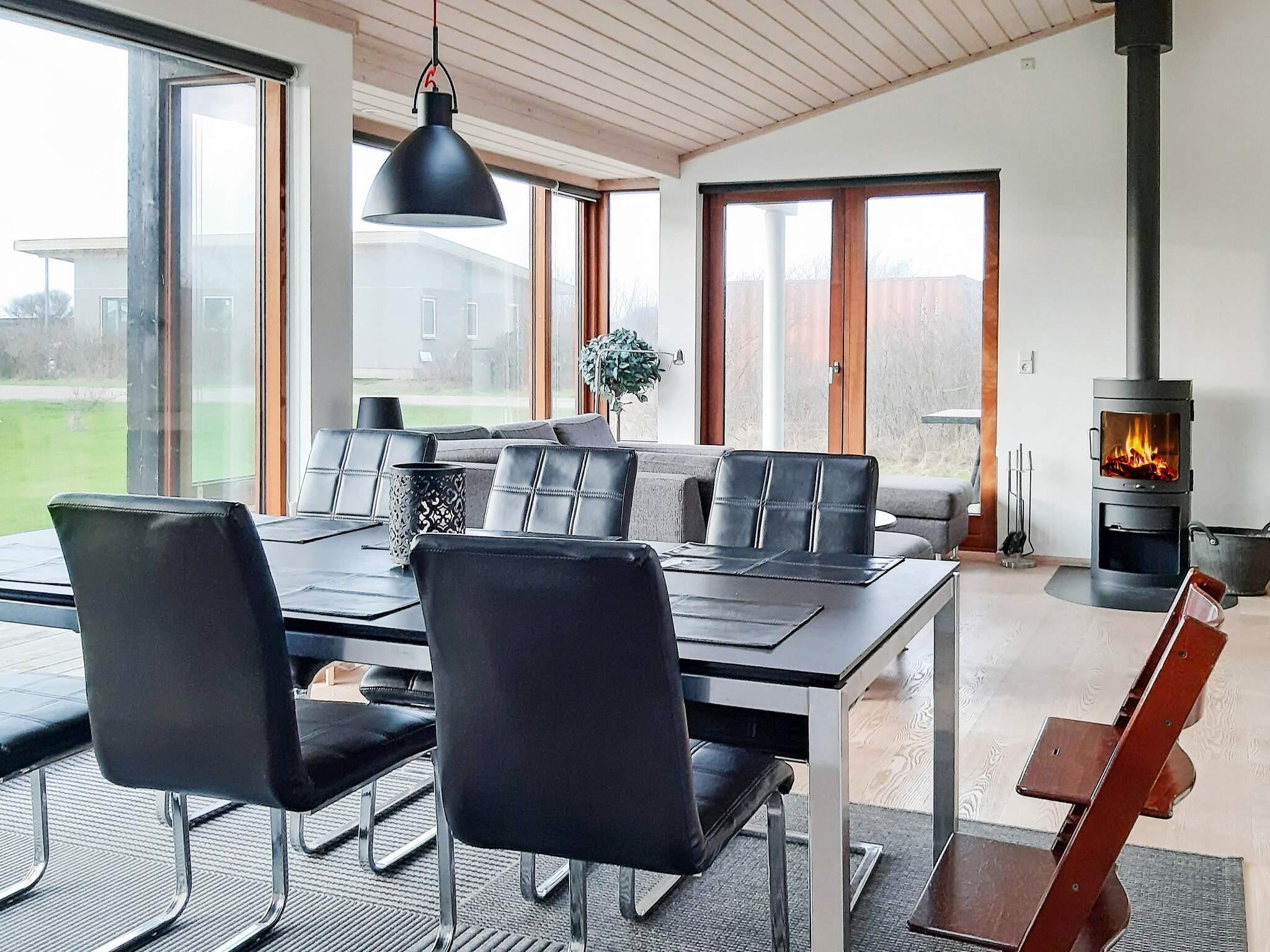 Zum Haus gehört sowohl eine große offene als auch eine überdachte Terrassenfläche. Dort kann man immer ein geschütztes Plätzchen finden, um die Aussicht über den Limfjord zu genießen, während das Abendessen auf dem Grill zubereitet wird. Eine praktische Außenküche an der Terrasse rundet das Kochvergnügen im Freien ab.