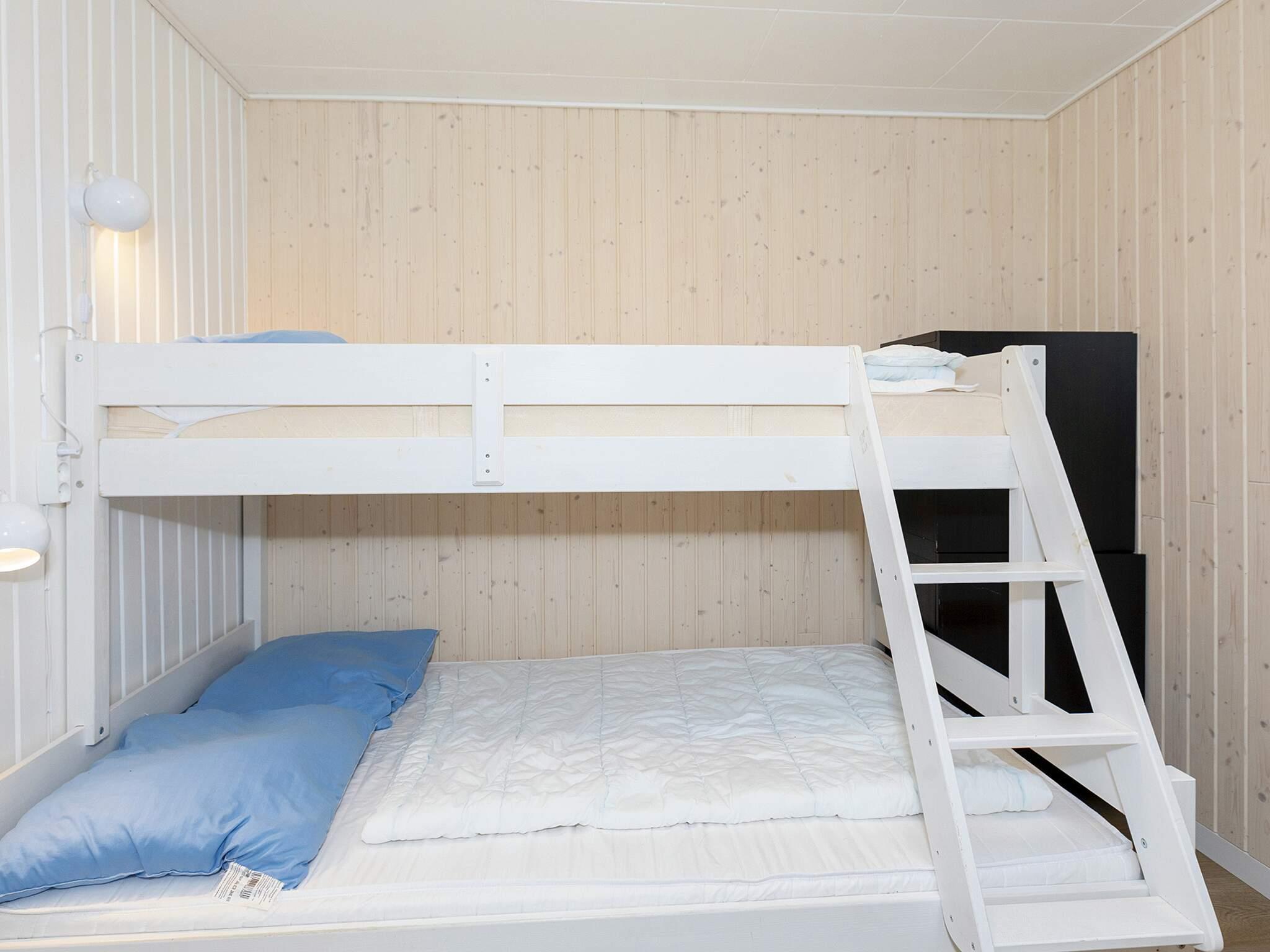 Das Haus bietet einen geräumigen Wohnbereich mit direktem Zugang zu einer großen Terrasse, ideal für Mahlzeiten im Freien, Sonnenbaden oder Familienfeiern. Das Badezimmer ist mit Fußbodenheizung ausgestattet und sorgt so an kühleren Tagen für zusätzlichen Komfort. Es gibt zwei Schlafzimmer mit jeweils zwei Einzelbetten und ein drittes Schlafzimmer mit einem Etagenbett für drei Schlafplätze – ideal für Familien.