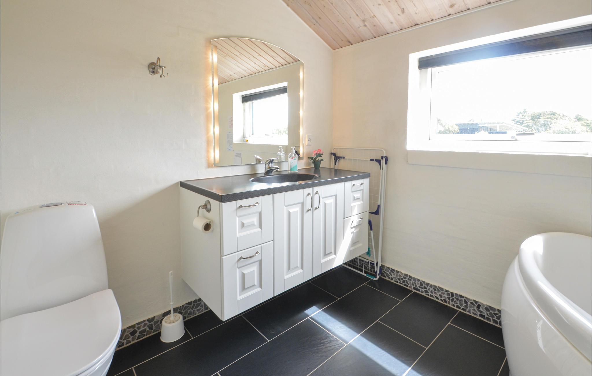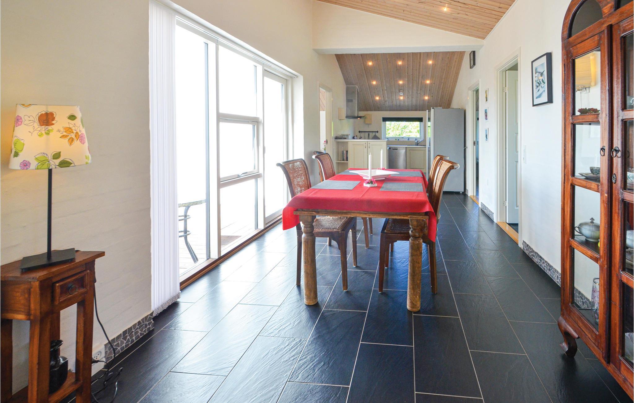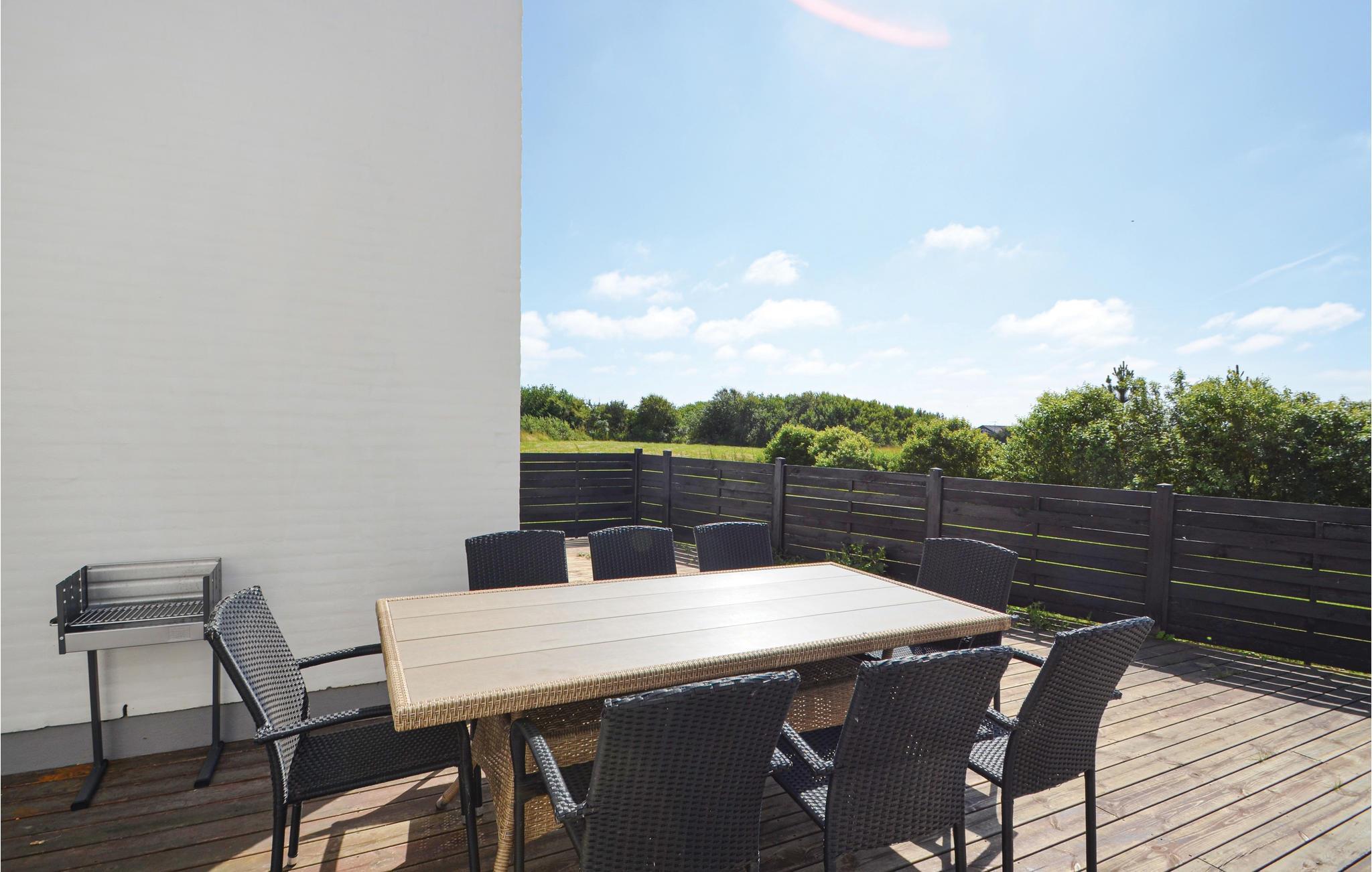 Gepflegtes Ferienhaus aus guten Materialien. Das Haus bietet drei gute Schlafzimmer mit Doppelbetten und einen Alkoven, in dem sich zwei Schlafplätze befinden. Im großen, hellen Wohnzimmer mit moderner und geschmackvoller Einrichtung gibt es einen Fernseher mit Flachbildschirm und dänischen und deutschen Kanälen. Außerdem gibt es zwei gute Bäder, beide mit Fußbodenheizung, in dem einen befinden sich eine Multifunktionsdusche und ein Whirlpool für 2 Personen. Gut ausgestattete Küche, u.a. mit amerikanischem Kühlschrank.