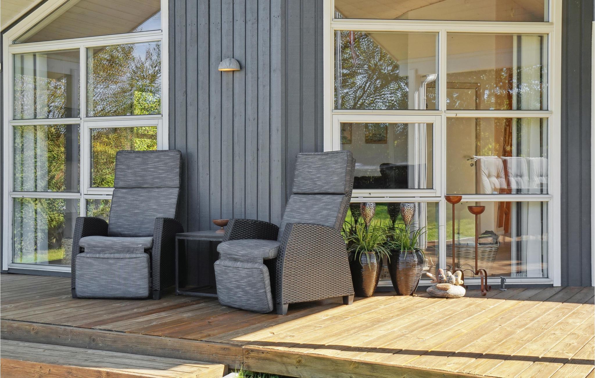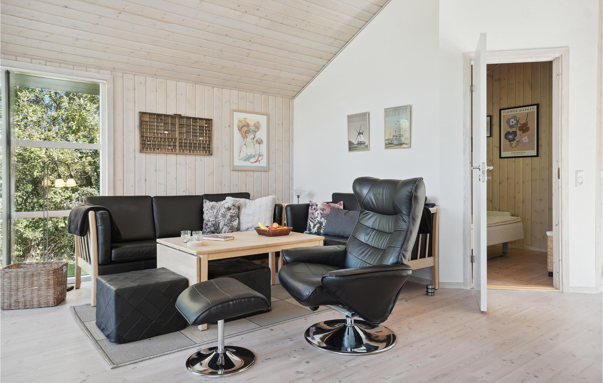 Willkommen in diesem einladenden Ferienhaus, das Sie in idyllischer Lage umgeben von Bäumen und nahe dem Fjord erwartet. Helle Räume und die geschmackvolle Einrichtung sorgen dafür, dass Sie hier vom ersten Tag entspannen. Der offene Wohnbereich wird schnell zum Zentrum der gemeinsamen Aktivitäten. Genießen Sie den wunderbaren Blick auf die Natur durch große Sprossenfenster und plaudern Sie nach einem Saunagang oder einem Bad in der Whirlpoolbadewanne abends noch lange beim gemütlichen Knistern des Kaminofens.