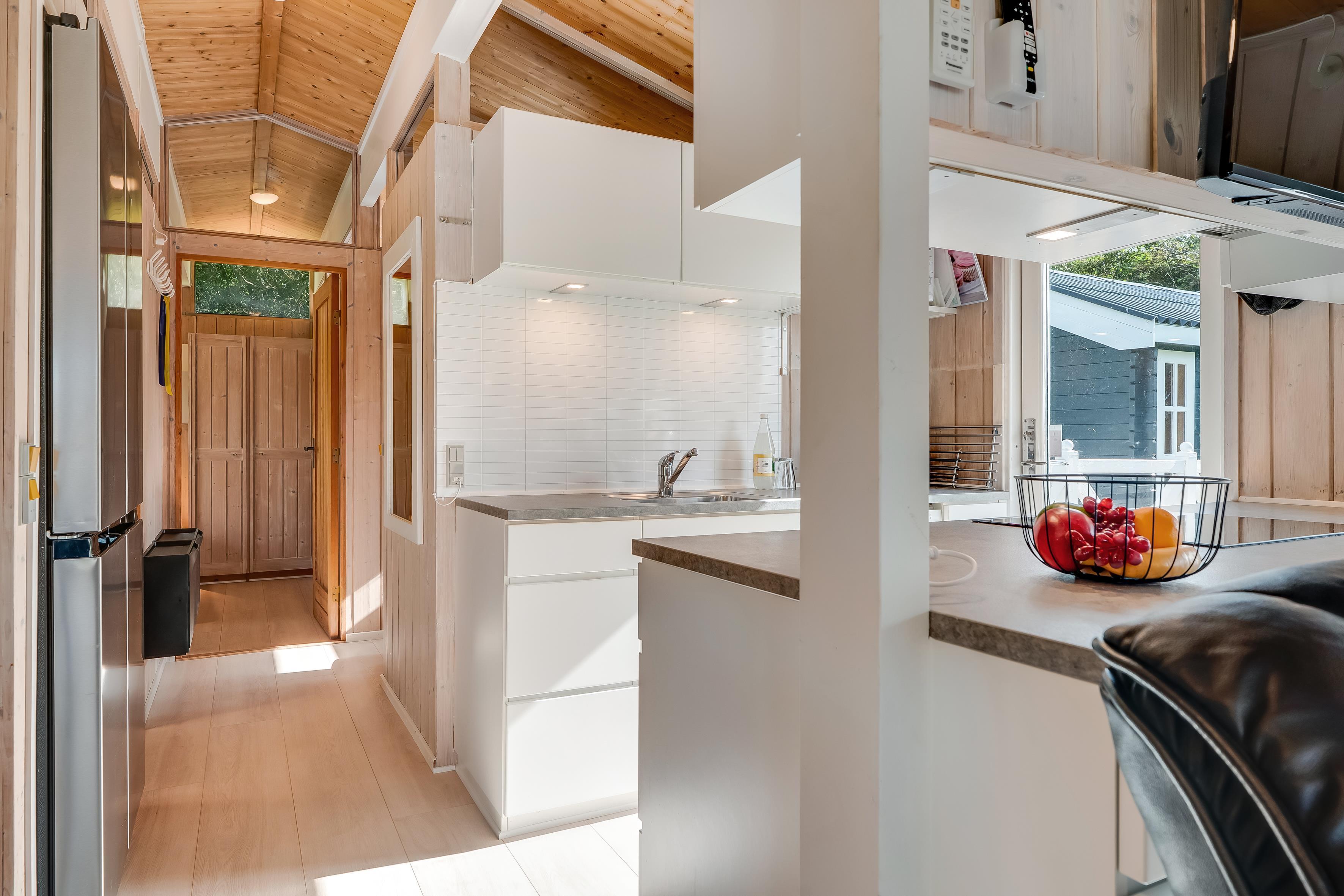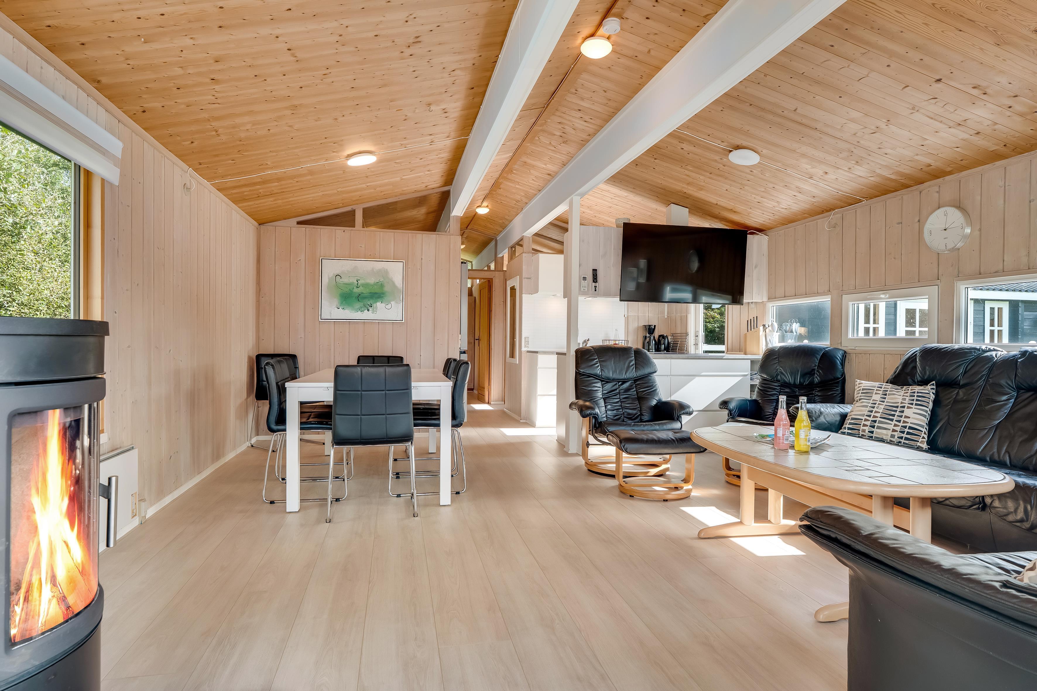 Inside, the house offers a well-equipped kitchen with modern appliances, including an induction hob, oven, microwave, fridge and dishwasher, making cooking a breeze. The freezer has a capacity of 100 litres, so there is plenty of space to store food for the entire stay. The living room, equipped with a wood-burning stove, creates a cozy atmosphere, perfect for gathering after a day of adventures. Here you will also find a television with both Danish and German TV and Chromecast for movies and series.