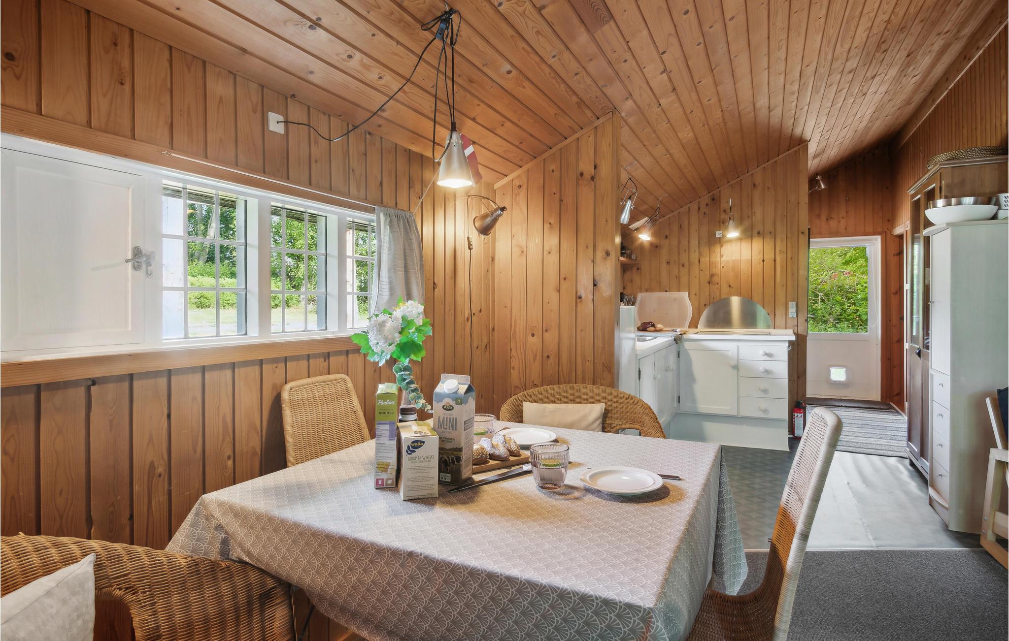 Verbringen Sie einen ruhigen und erholsamen Urlaub in diesem gemütlichen Ferienhaus, das Ihnen mit seiner Holzverkleidung und einfachem Komfort ein heimeliges Flair bietet. Machen Sie es sich am Abend auf den Sofas gemütlich und schauen einen spannenden Film. Die Sommerabende können Sie bei gegrillten Speisen und leckerem Salat auf der großen Terrasse genießen und anschließend bei einem Glas Wein und Kartenspielen den Abend ausklingen lassen.