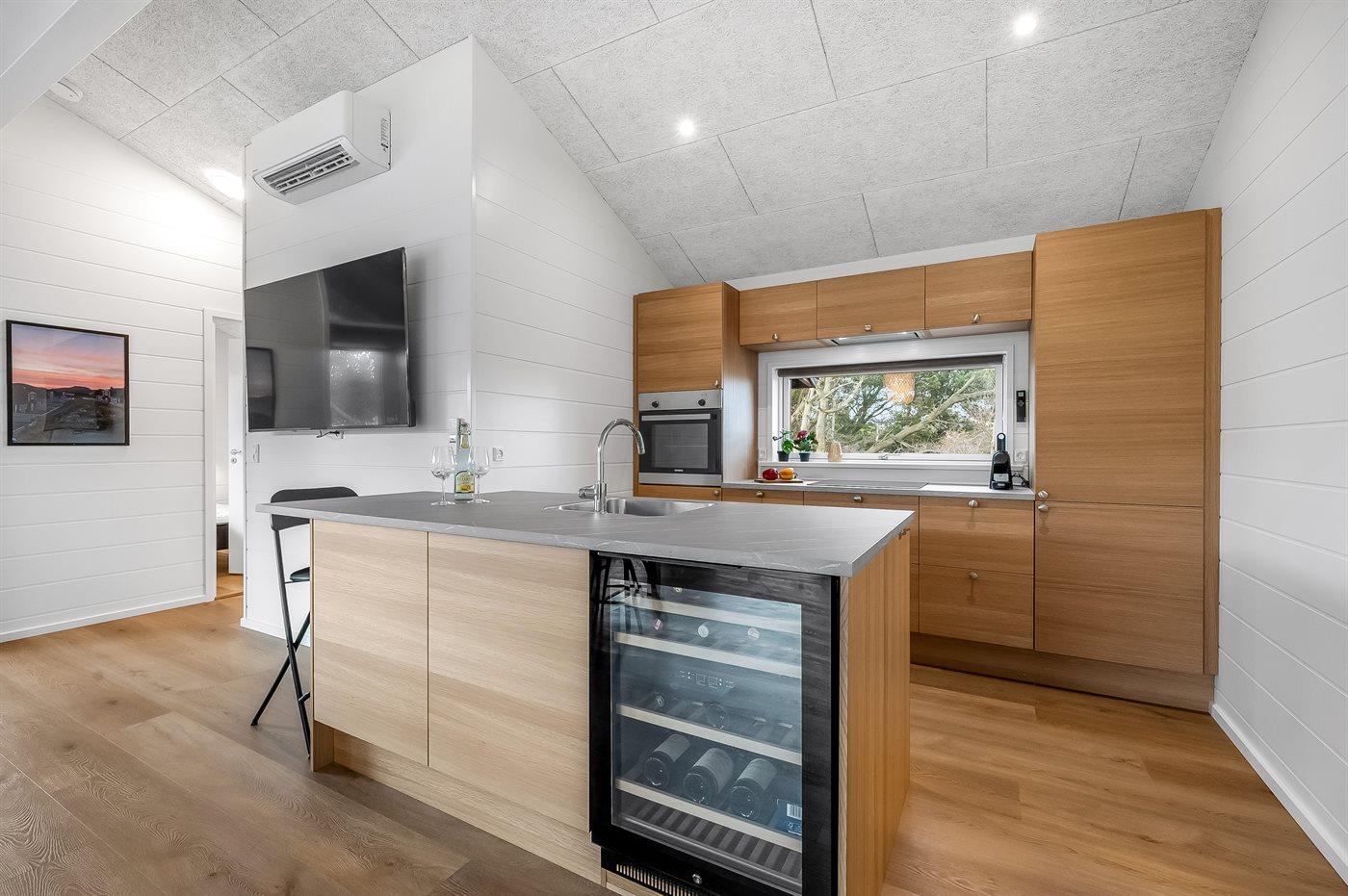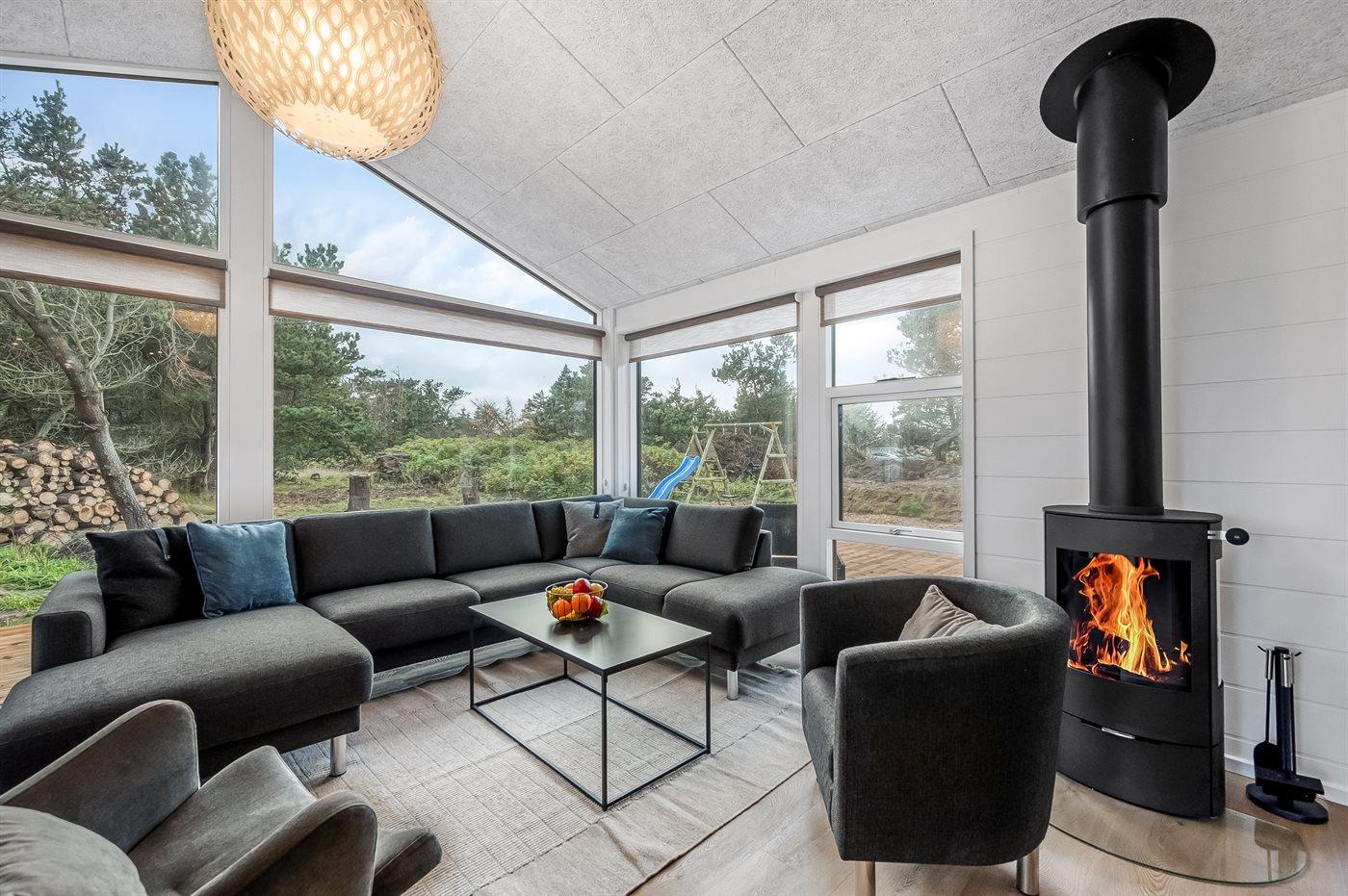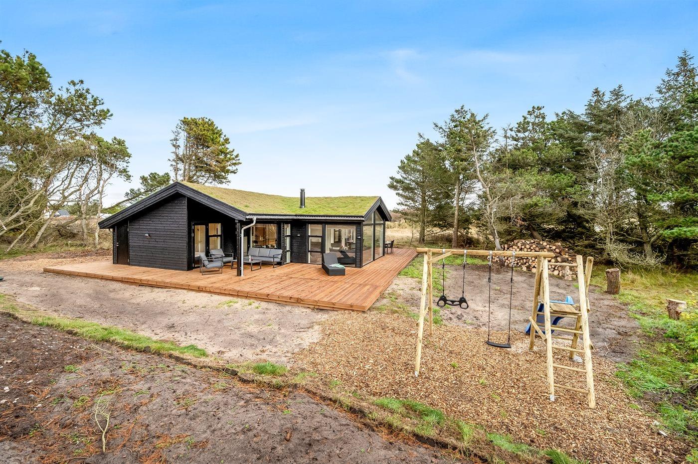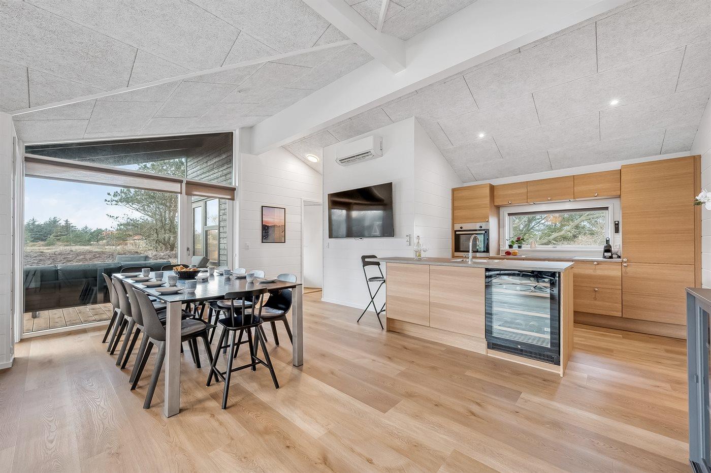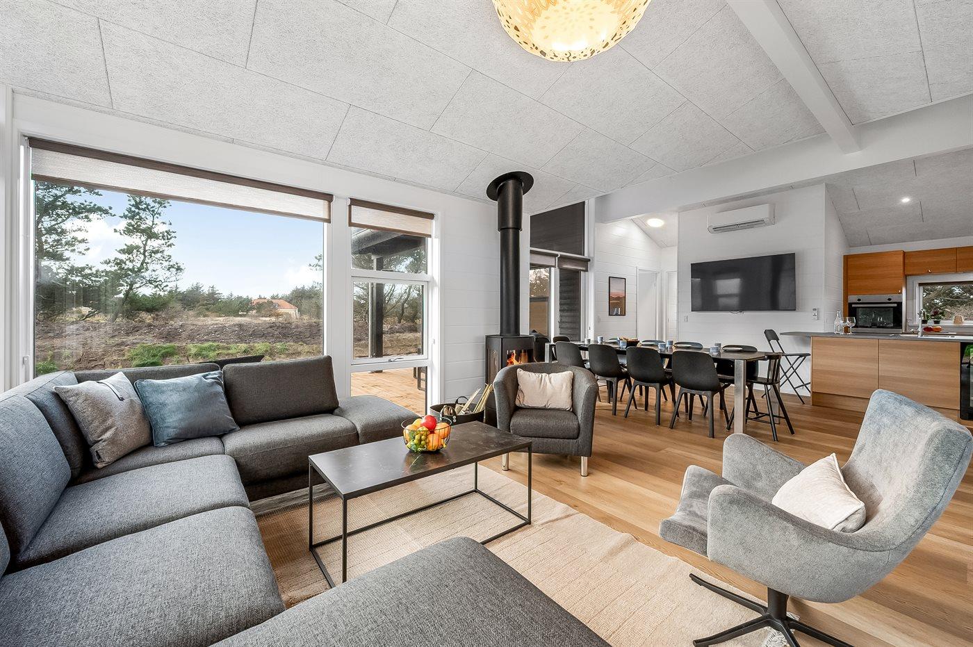 Holiday home suitable for 8 persons . The holiday home is 113 m² and is build in 2024. No pets allowed. The holiday home is equipped with 1 energy-friendly air-to-air heat pump. Floor heating in all tiled floors. The holiday home has washing machine. Tumble dryer. Freezer capacity of 60 litres. Further more there is 1 wood-burning stove. For the youngest ones there is 1 high chair.