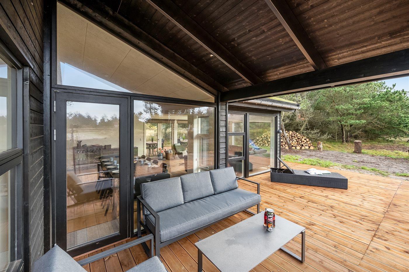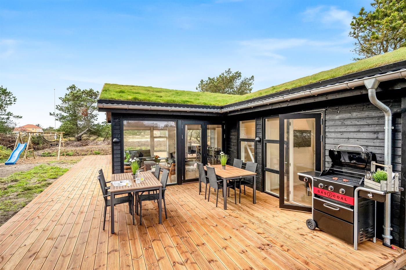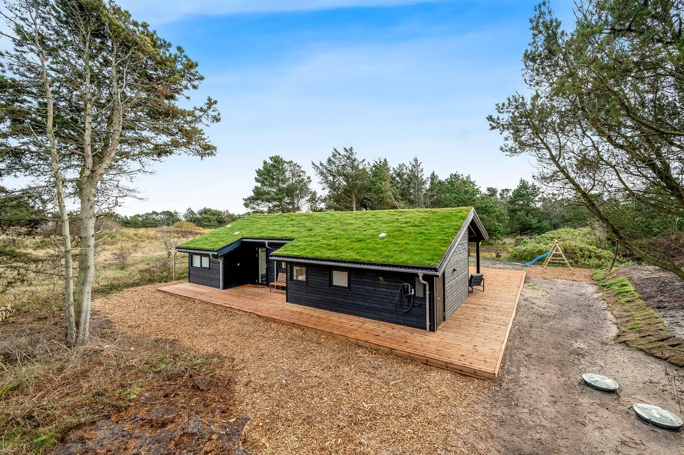 The holiday home is situated on a 2100 m² natural site. Situated 625 m from the sea. Nearest shop is 7500 m away. A terrace belong to the holiday home. Furthermore the house has a covered terrace. Swing. Slide. Barbecue at your disposal. Plug for charging electric car is available. Parking place by the holiday home.