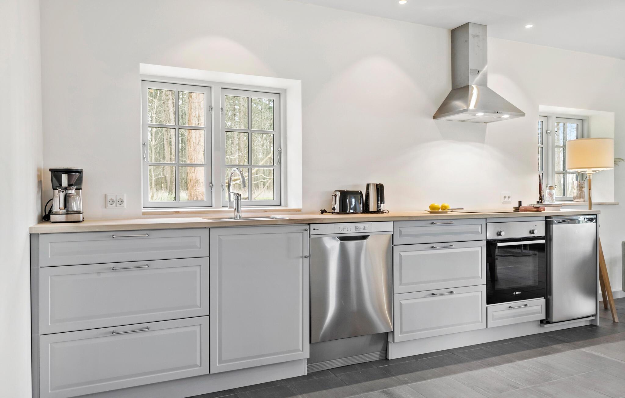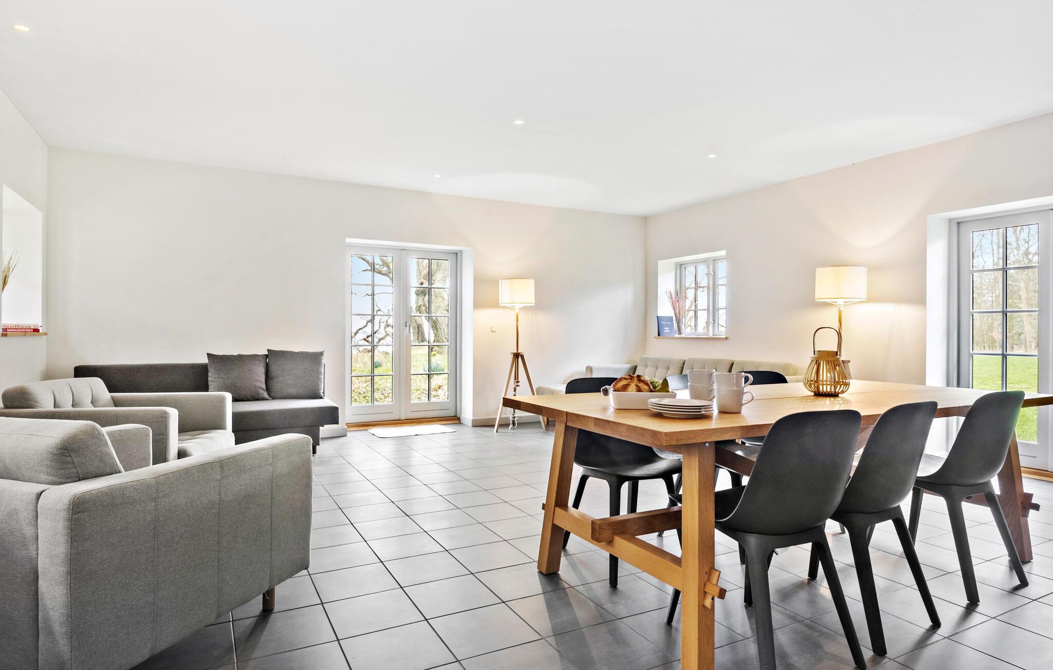 Reisen Sie mit Ihrer Großfamilie oder befreundeten Familien auf die Insel Gavnø am Karrebæk Fjord und genießen einen großartigen Urlaub in dieser geräumigen Unterkunft, bestehend aus zwei Ferienhäusern. Während Sie von außen sichtbarem Fachwerk empfängt, heißt Sie das Innere mit moderner Einrichtung, Design und hohen Decken ein. Es ist der ideale Ort, um die Ferienzeit beim gemeinsamen Spielen, Kochen oder Entspannen zu verbringen.