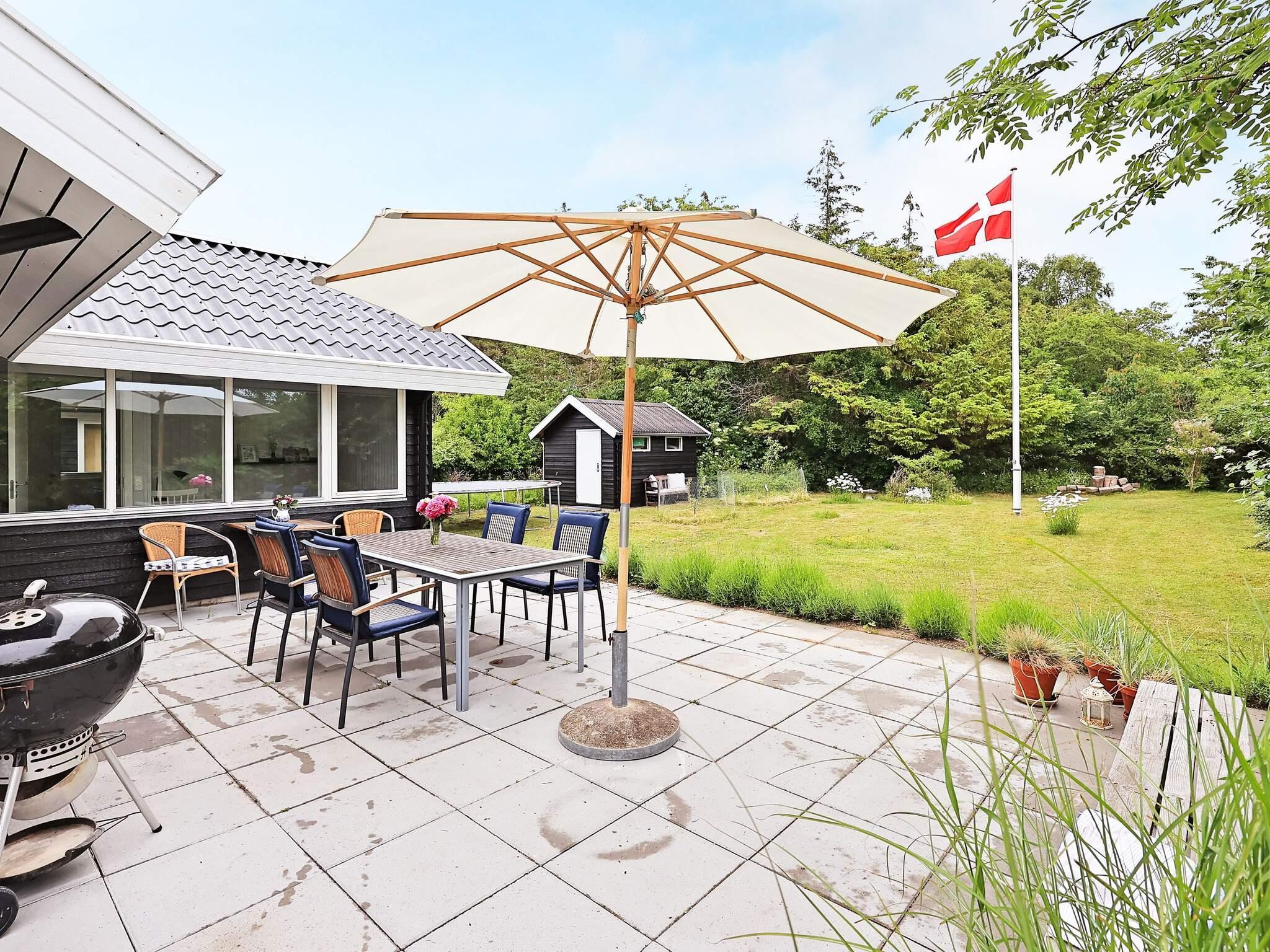 Auf der lauschigen Terrassenfläche gibt es reichlich Gelegenheit zum Grillen und Entspannen. Auf der Rasenfläche davor steht für die Kinder ein Gartentrampolin bereit (Nutzung nur auf eigenes Risiko). Das Ferienhaus liegt attraktiv, nur etwa 150 m von der Küste mit Badesteg und ca. 2 km von Einkauf und Restaurant.