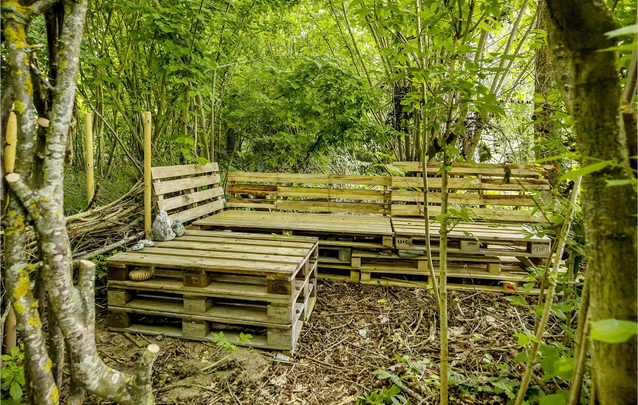 Das Haus liegt neben einem Miniwald, in dem man unter anderem in einem „Waldbad“ baden kann. Das Ferienhaus ist von allen Seiten ungestört und von Vegetation umgeben. In einer Ecke des Gartens gibt es eine kleine Feuerstelle. Ihnen steht außerdem eine Terrasse zur Verfügung.