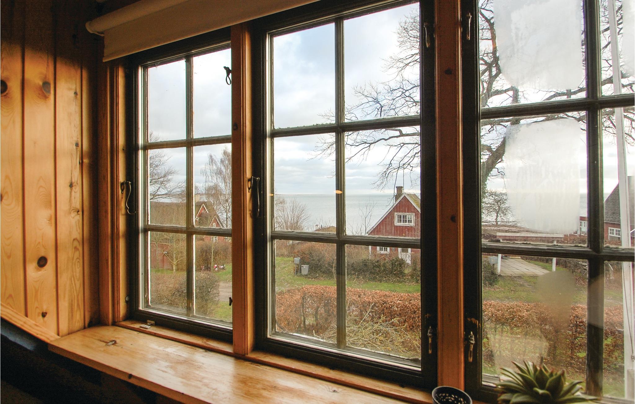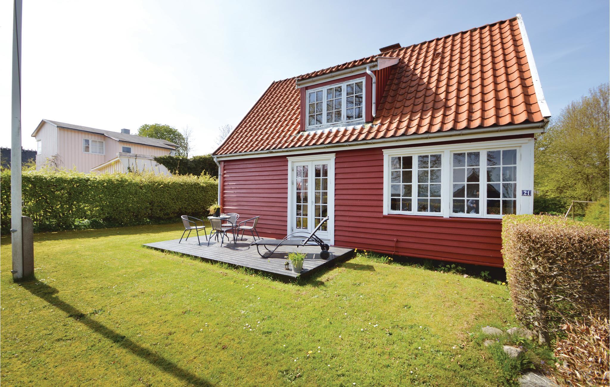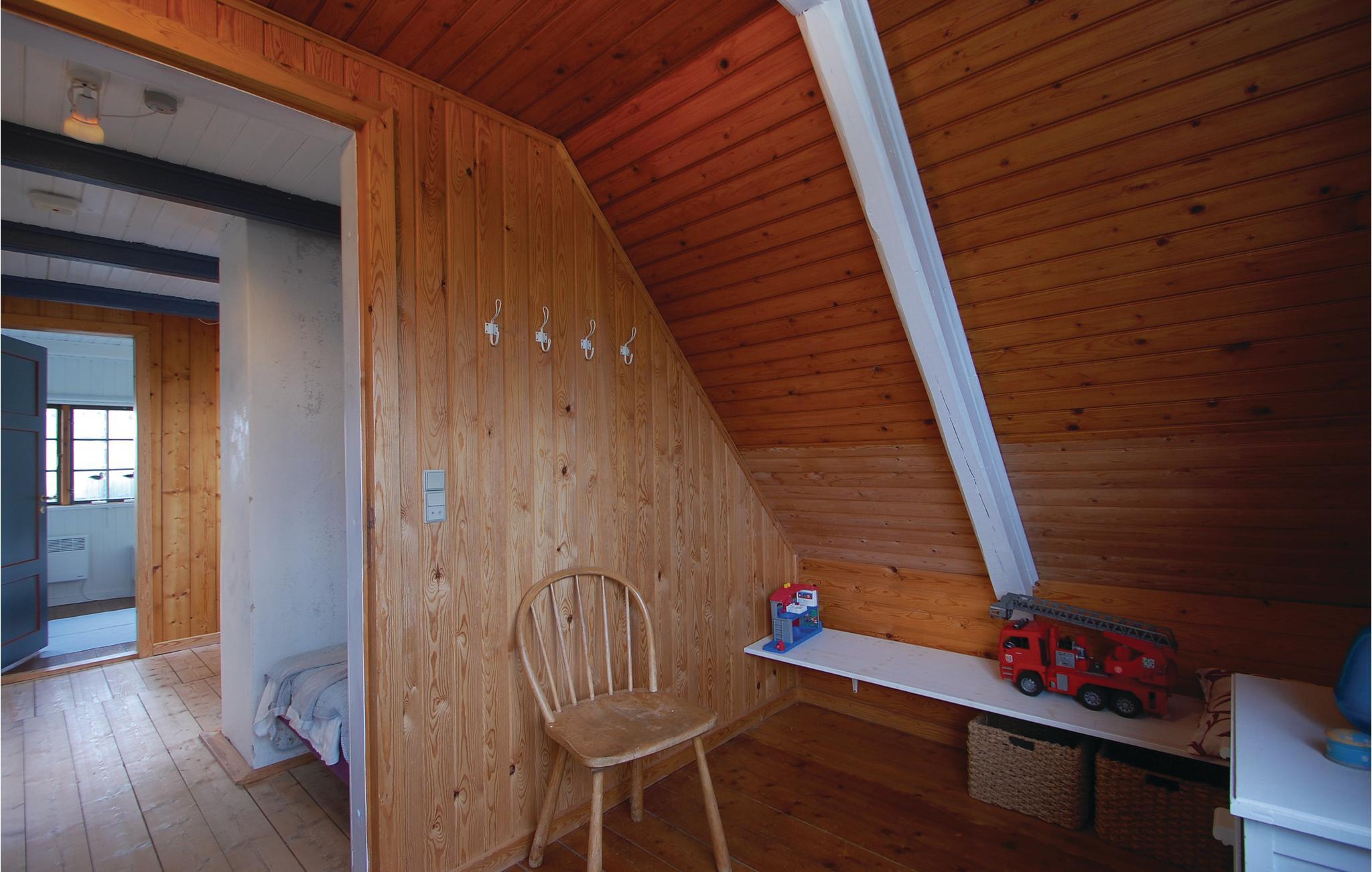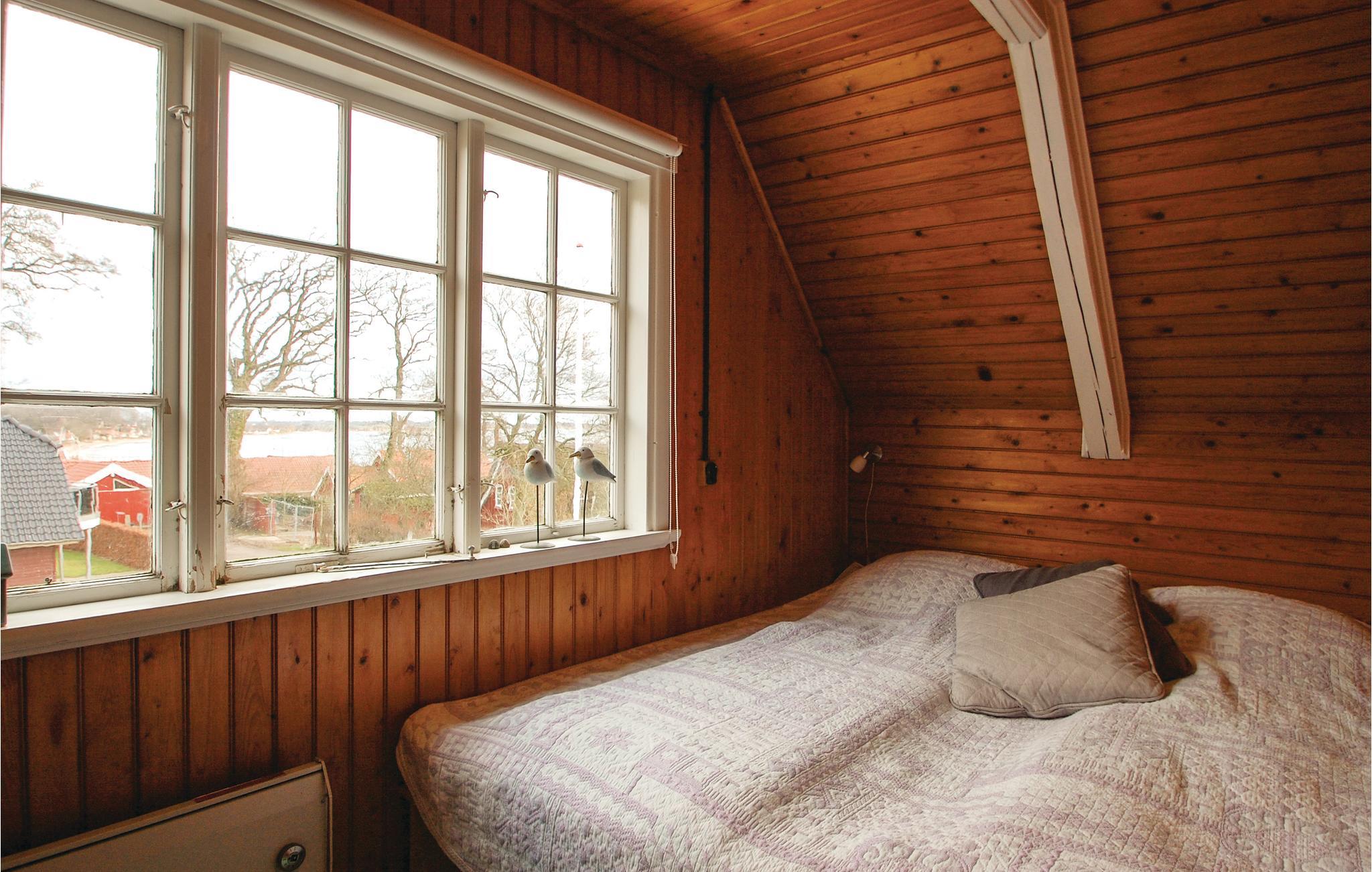Die Ferienhaussiedlung beherbergt an einem ruhigen Weg dieses charmante Ferienhaus mit zwei Etagen. Es liegt sichtgeschützt und umgeben von einer phantastischen Natur sowie im Gehabstand zum Wasser. Aussicht auf das Meer haben Sie vom Garten und vom Haus. Die Einrichtung des Hauses unterstreicht respektvoll das Alter des Hauses. Im 1. Stock schlafen Sie in drei Schlafzimmern und in einem Bett auf dem Gang. Im Garten sind Sandkasten und Spielhaus vorhanden. Ein Fußweg führt vom Ferienhaus direkt zum Wassern.