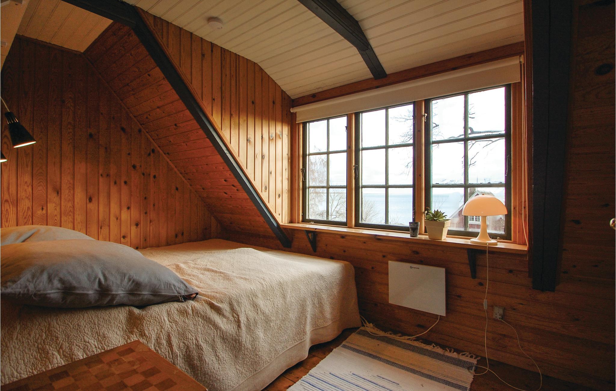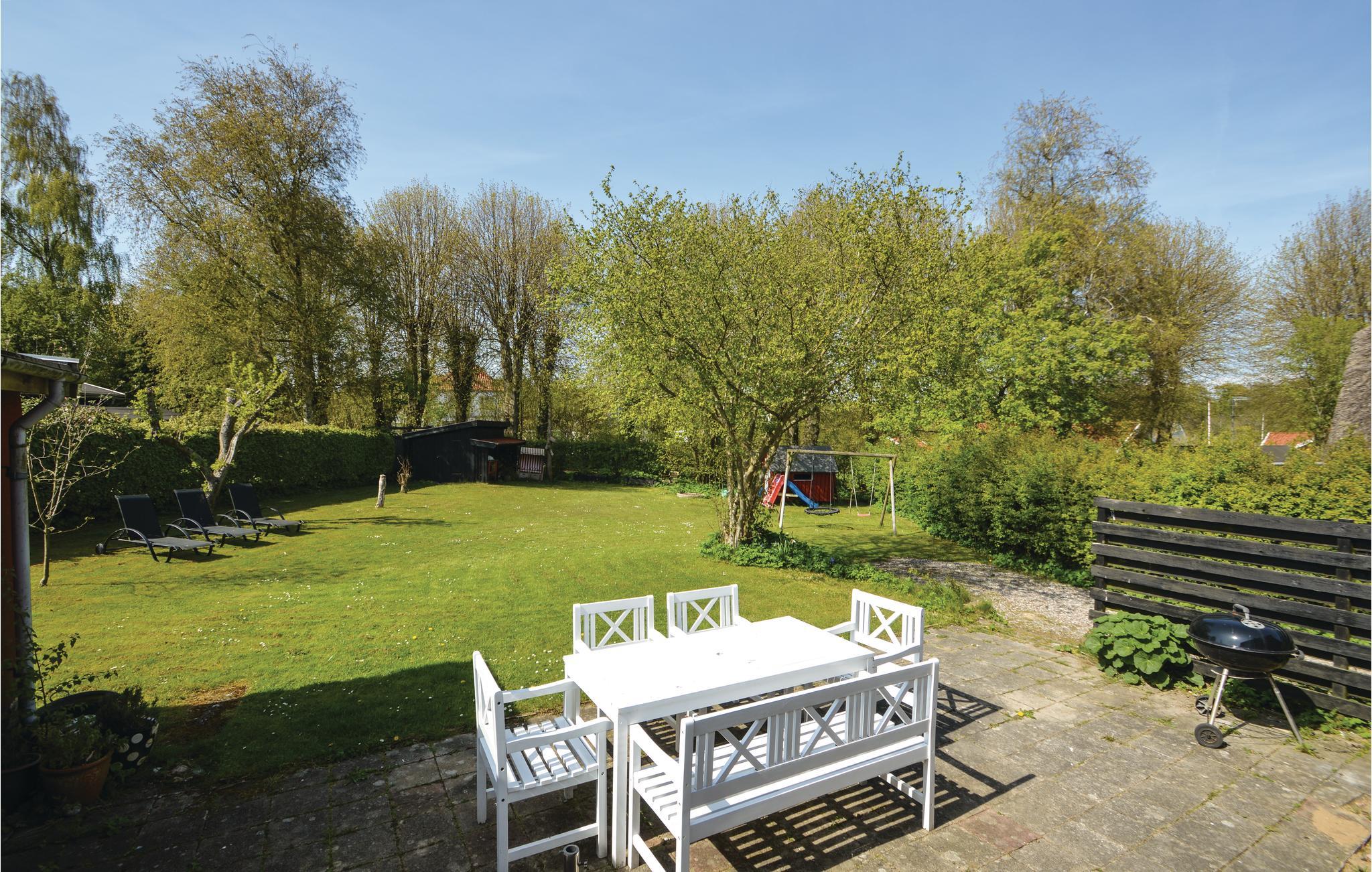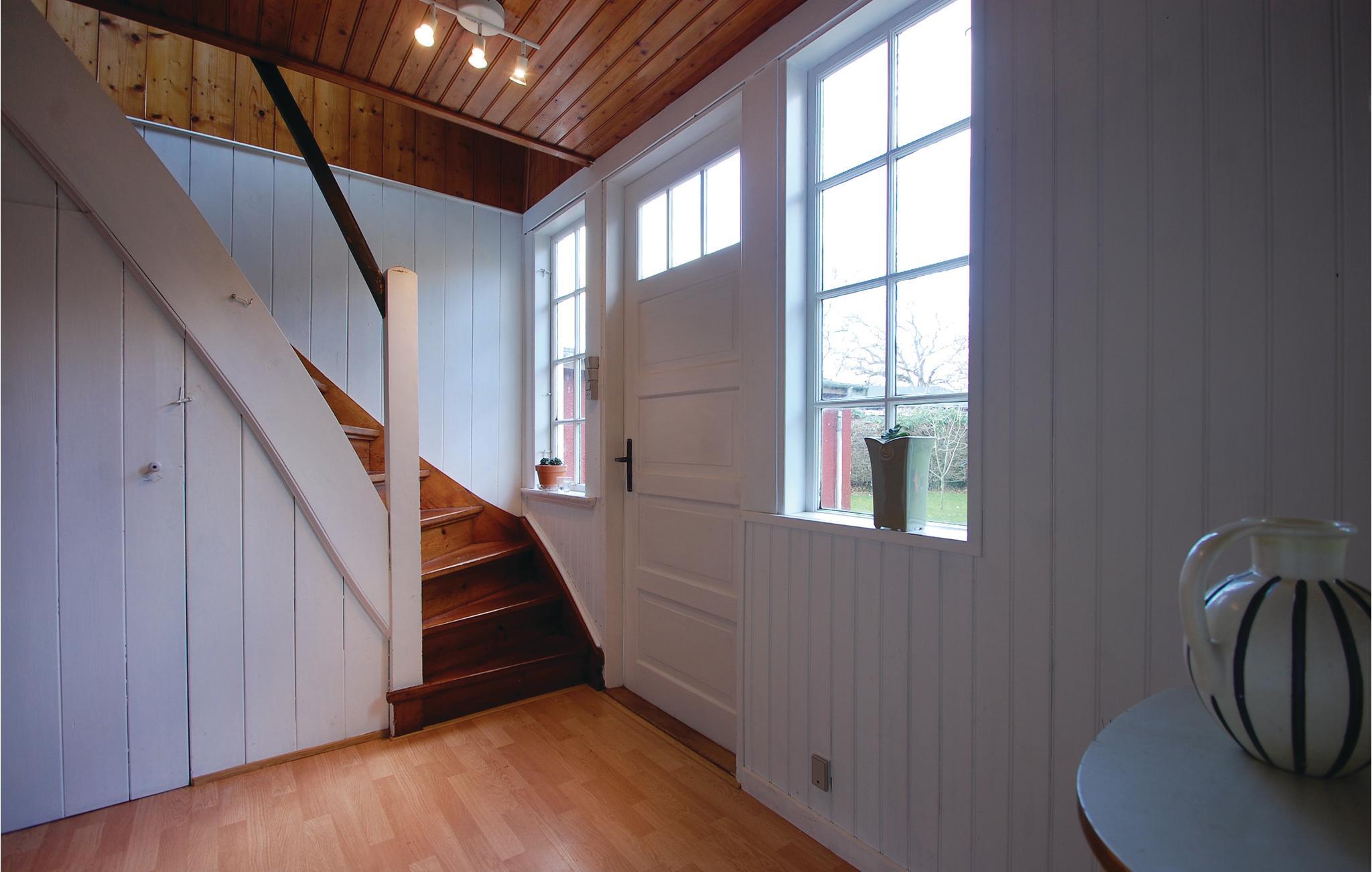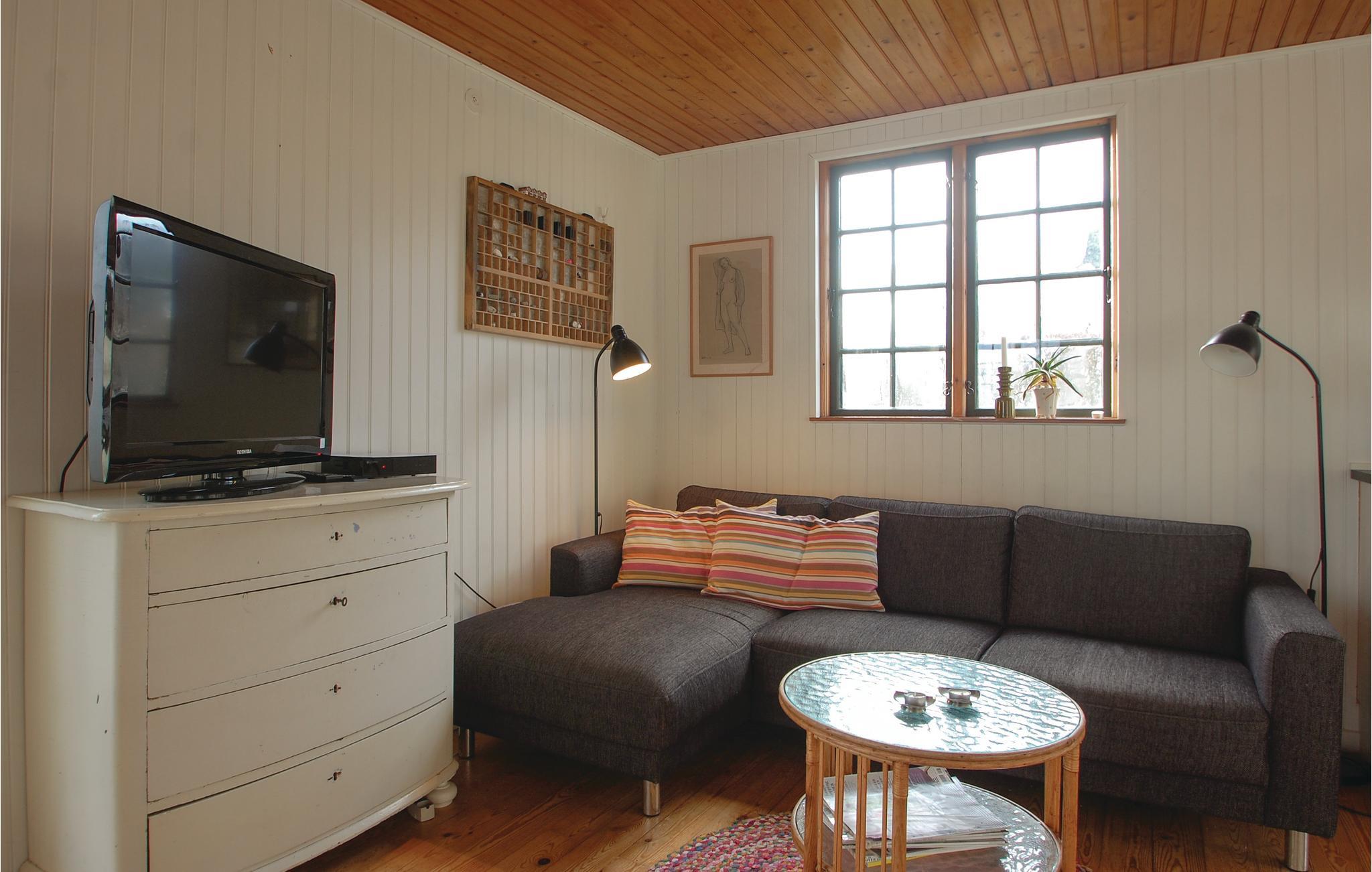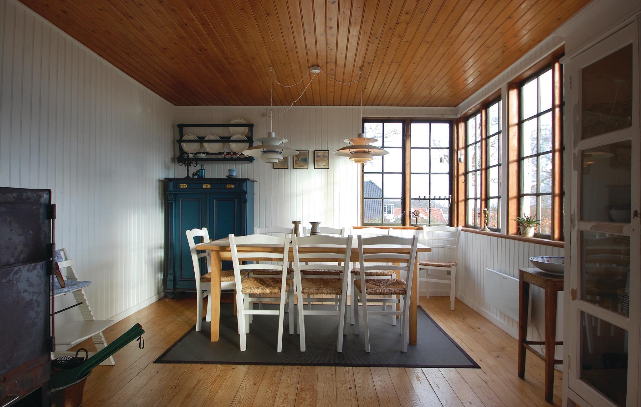 Die Ferienhaussiedlung beherbergt an einem ruhigen Weg dieses charmante Ferienhaus mit zwei Etagen. Es liegt sichtgeschützt und umgeben von einer phantastischen Natur sowie im Gehabstand zum Wasser. Aussicht auf das Meer haben Sie vom Garten und vom Haus. Die Einrichtung des Hauses unterstreicht respektvoll das Alter des Hauses. Im 1. Stock schlafen Sie in drei Schlafzimmern und in einem Bett auf dem Gang. Im Garten sind Sandkasten und Spielhaus vorhanden. Ein Fußweg führt vom Ferienhaus direkt zum Wassern.