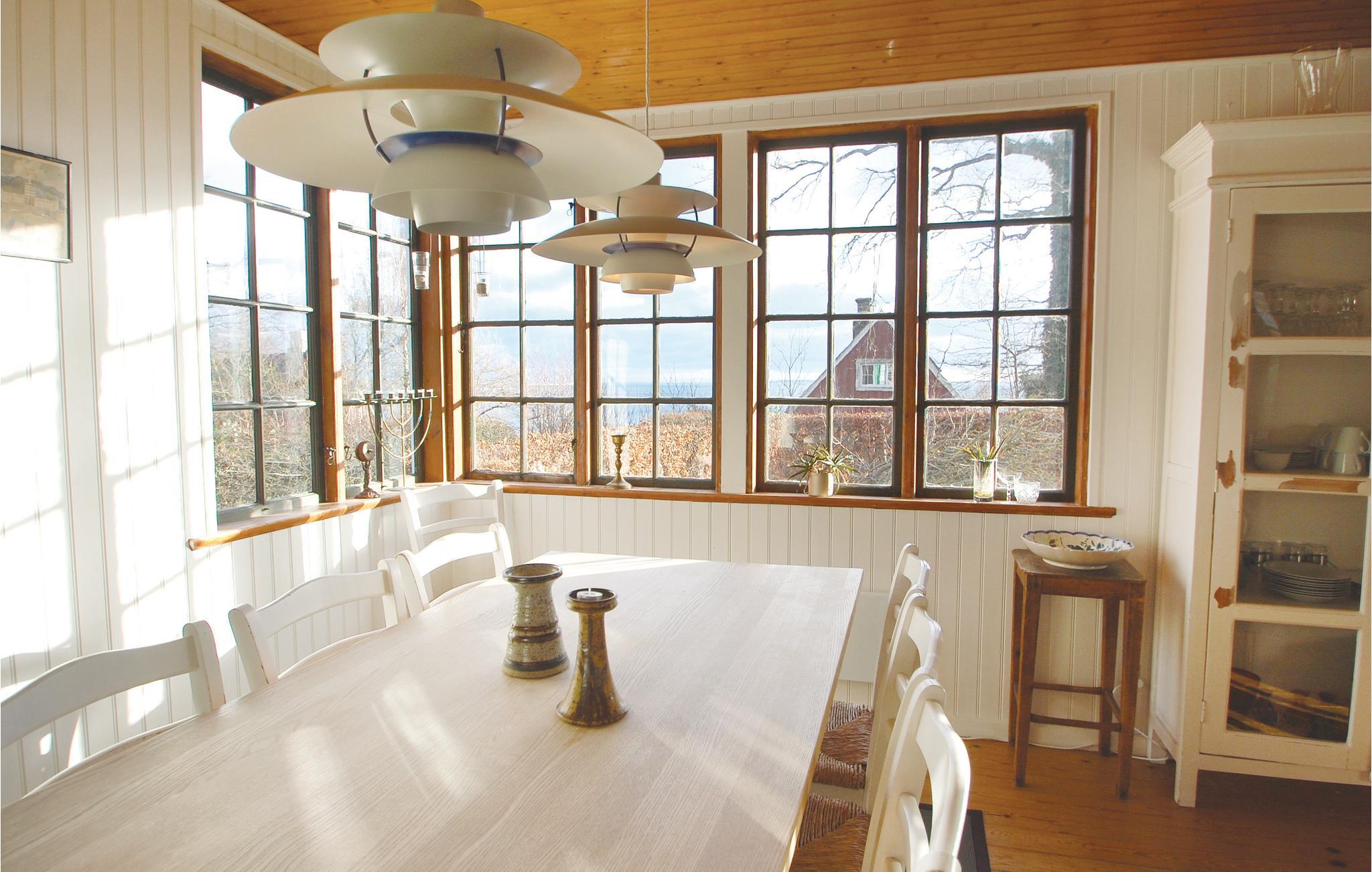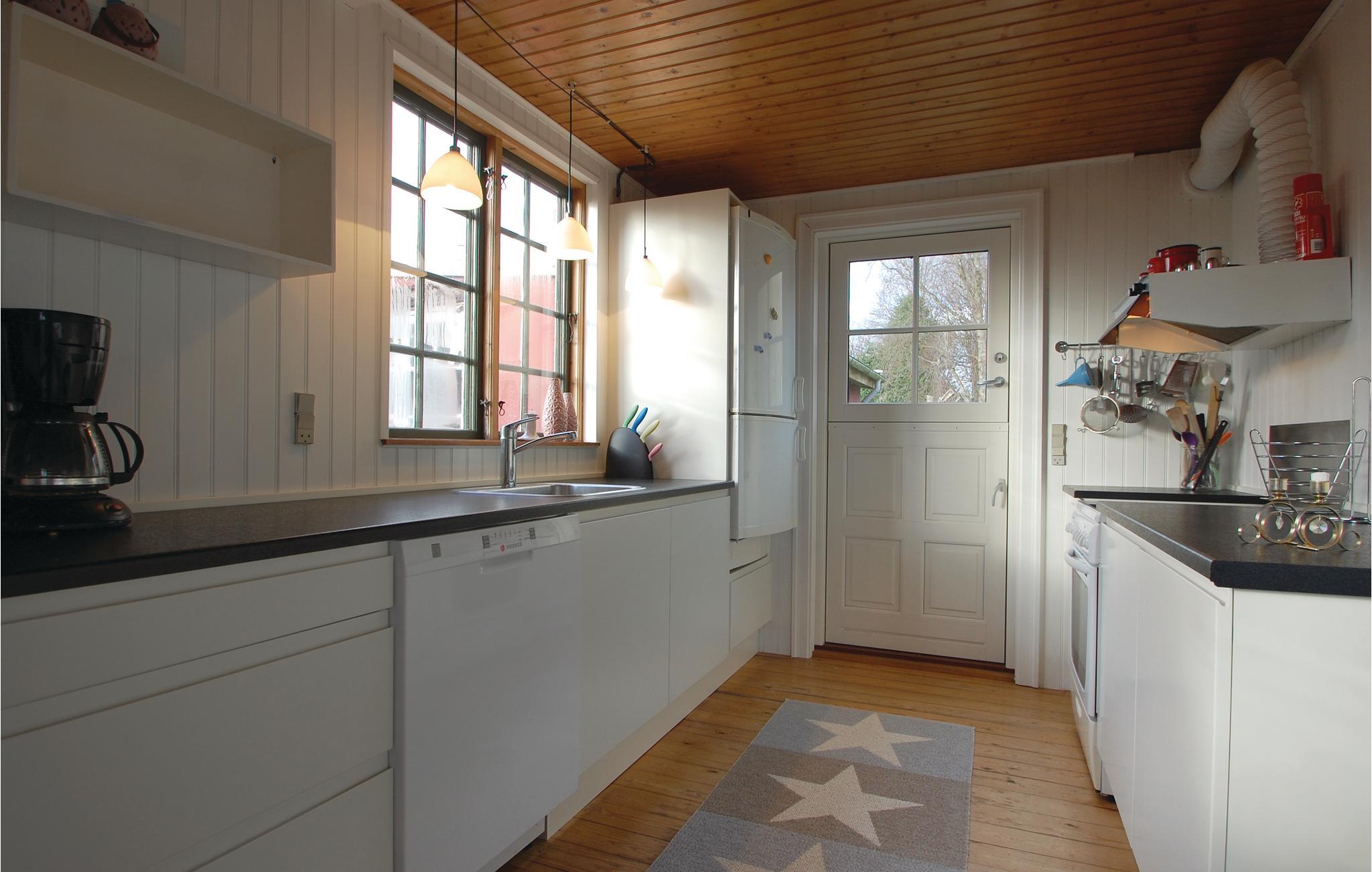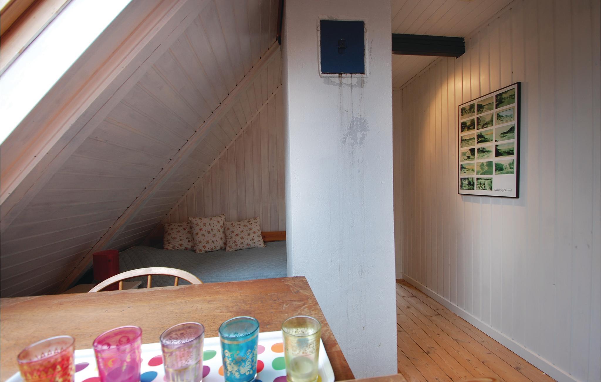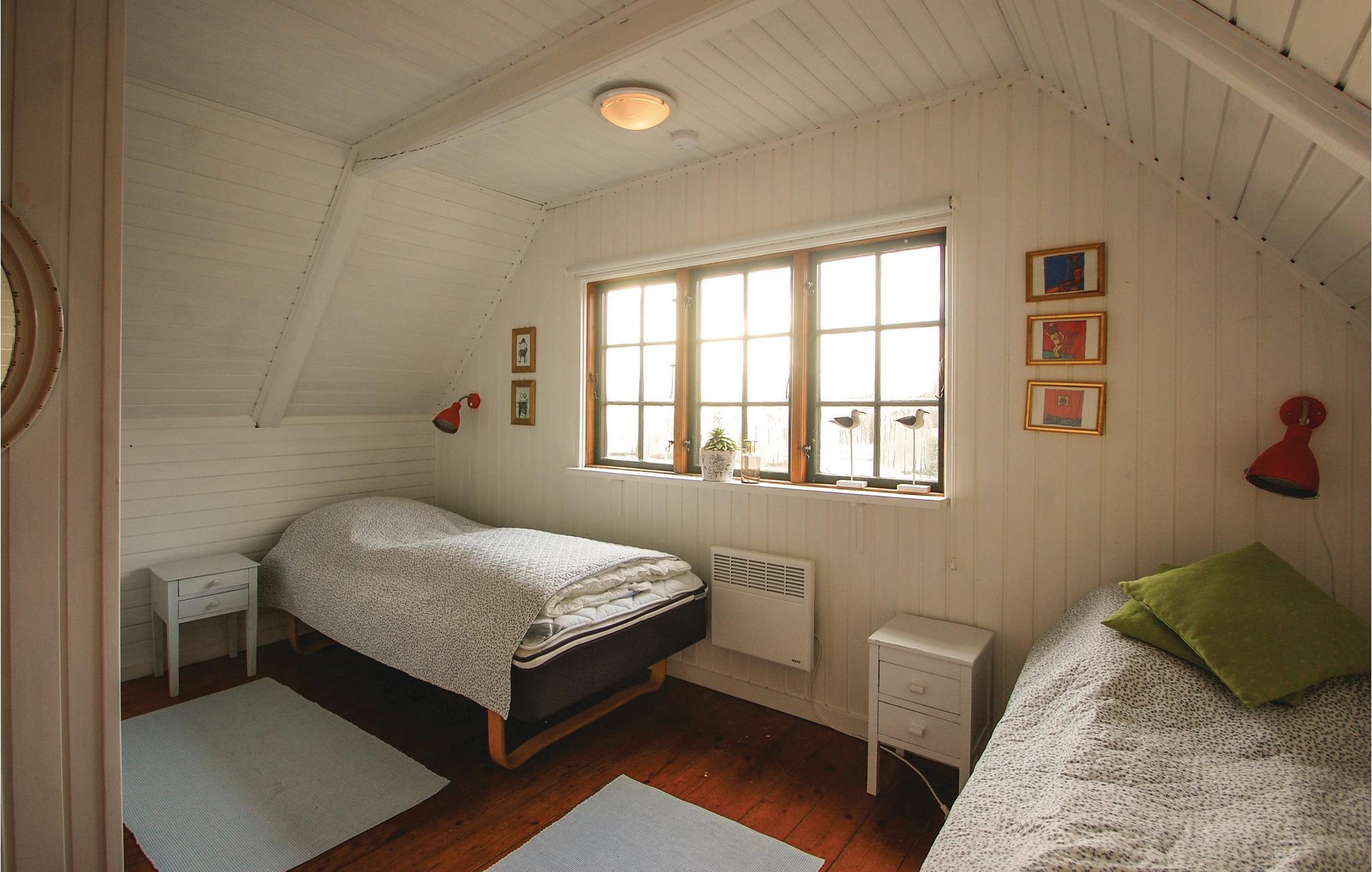 Die Ferienhaussiedlung beherbergt an einem ruhigen Weg dieses charmante Ferienhaus mit zwei Etagen. Es liegt sichtgeschützt und umgeben von einer phantastischen Natur sowie im Gehabstand zum Wasser. Aussicht auf das Meer haben Sie vom Garten und vom Haus. Die Einrichtung des Hauses unterstreicht respektvoll das Alter des Hauses. Im 1. Stock schlafen Sie in drei Schlafzimmern und in einem Bett auf dem Gang. Im Garten sind Sandkasten und Spielhaus vorhanden. Ein Fußweg führt vom Ferienhaus direkt zum Wassern.