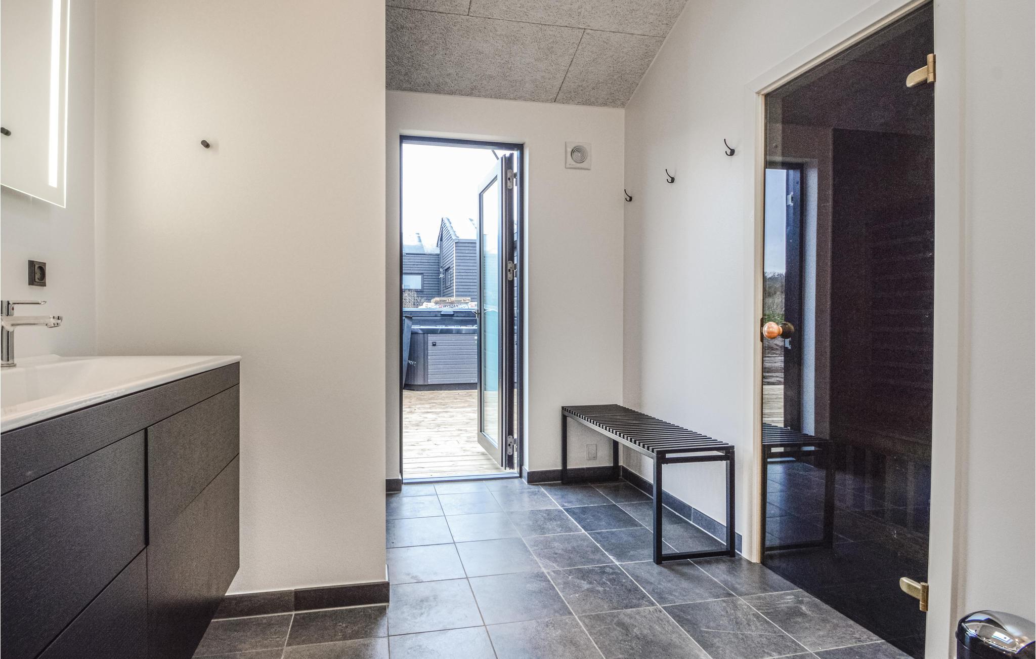 Mit Außen-Whirlpool und einer Kombi-Sauna bietet dieses Ferienhaus herrliche Wellness! Modern ausgestattetes Haus mit vielen Aktivitätsmöglichkeiten. Es liegt in einem neueren Ferienhausgebiet von Kelstrup Strand. HDas Haus ist hell eingerichtet und verfügt über vier gute Schlafzimmer. Der Aktivitätsraum ist an einem Ende des Hauses ungestört; Hier können Sie viele Stunden mit Tischtennis, Tischfußball u.a. verbringen. Darüber hinaus gibt es ein einladendes und geräumiges Wohnzimmer in offener Verbindung mit der Küche und dem Essbereich, wo Sie gemeinsam Spiele spielen können. Außerdem gibt es zwei schöne Badezimmer, eines mit einer Kombisauna, so dass sowohl die traditionelle Sauna mit Ofen und Strahlungswärme genutzt werden kann, als auch Infrarotwärme, die die Tiefe der Haut durchdringt und die Durchblutung erhöht. Weitere Wellness-Möglichkeiten finden Sie auch im Freien, wo ein Whirlpool bereit steht.