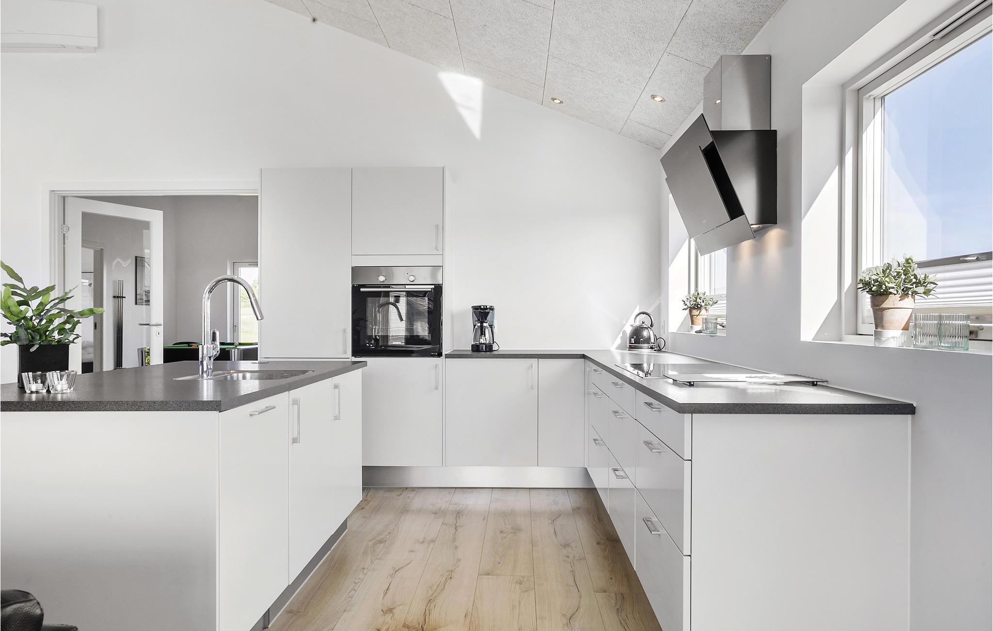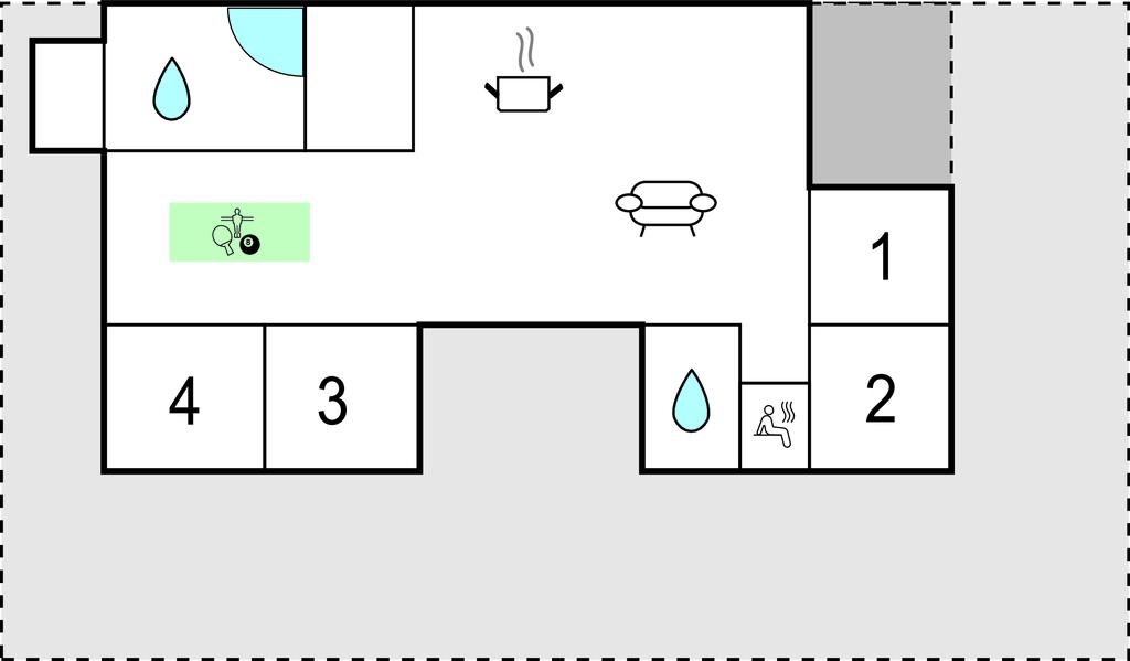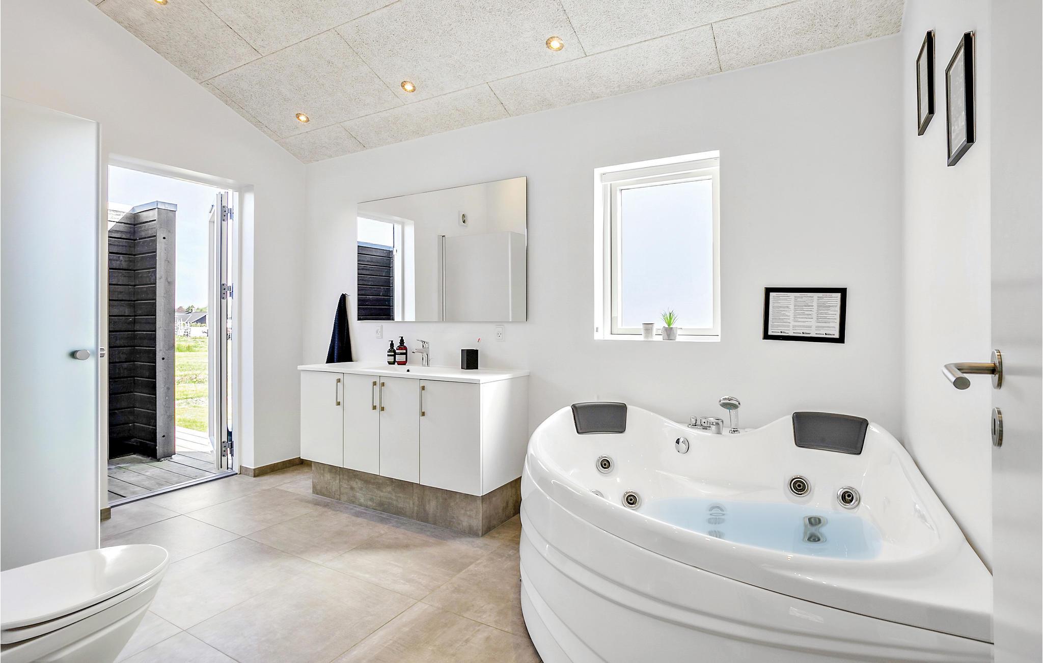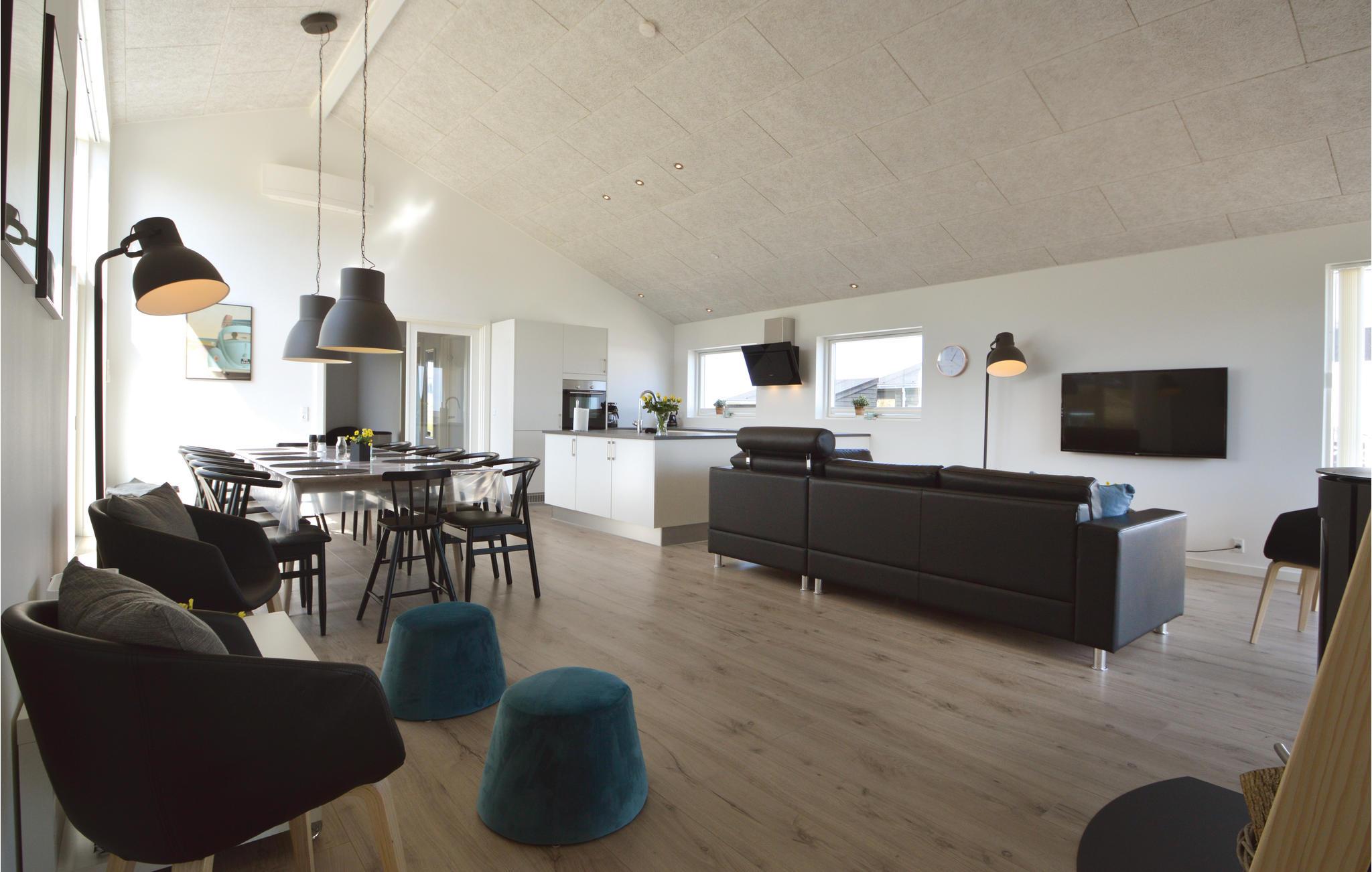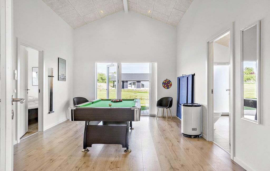 Schön großes Luxusferienhaus mit viel Platz für die Familie. Mitten im Haus liegt die schöne, helle Wohnküche mit Aussicht auf das Wasser. Schlafzimmer und Badezimmer liegen in zwei Bereichen, ideal für zwei Familien. Für die Jugend eignet sich am besten der große Schlafboden. Das Spielzimmer ist ausgestattet mit Billard und Tischfußball. Whirpool in einem Badezimmer, Sauna im anderen. Zwei Drittel des Hauses werden von der Terrasse umgeben, damit finden Sie je nach Bedarf Sonne oder Schatten. Für die Kinder sind Trampolin und Schaukel vorhanden.
