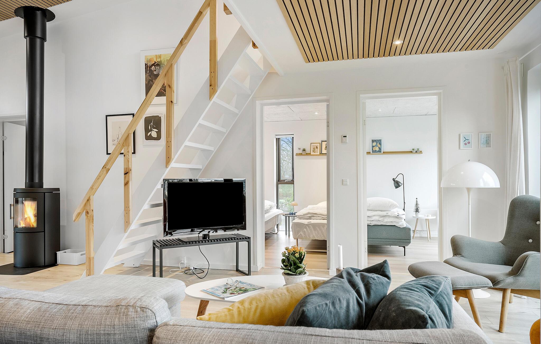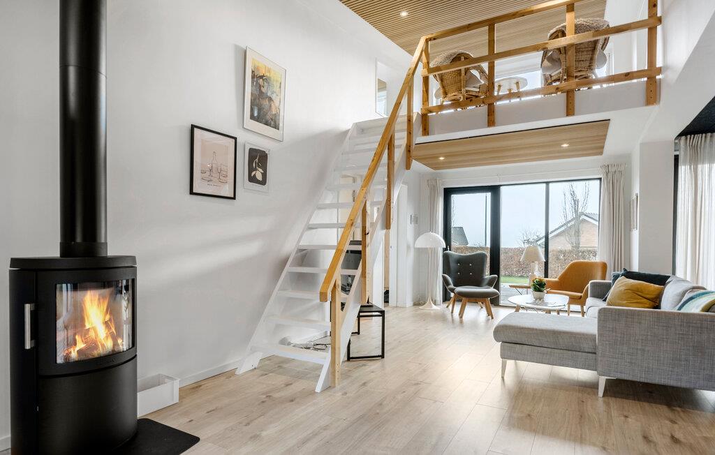 Treten Sie ein und genießen die offene Gestaltung über zwei Ebenen, die ein großzügiges Raumgefühl schafft, das durch hochwertige und geschmackvolle Einrichtung ergänzt wird. Im Wohnbereich sorgt ein stilvoller Holzofen für wohlige Wärme und gemütliche Stunden. Große Fenster lassen viel Tageslicht herein und bieten Ihnen einen schönen Blick in den weitläufigen Garten. Die große Terrasse lädt Sie dazu ein, die frische Meeresbrise zu genießen, während der Strand nur einen kurzen Spaziergang entfernt liegt.