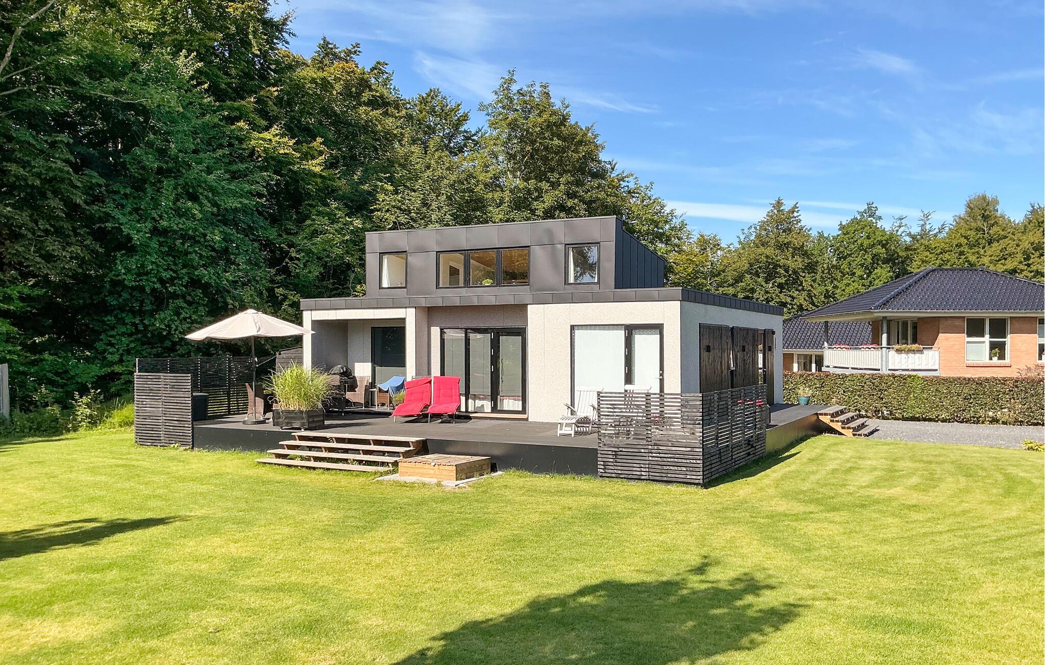 Freuen Sie sich auf einen erholsamen Urlaub in diesem modernen und lichtdurchfluteten Ferienhaus mit einzigartiger Architektur.