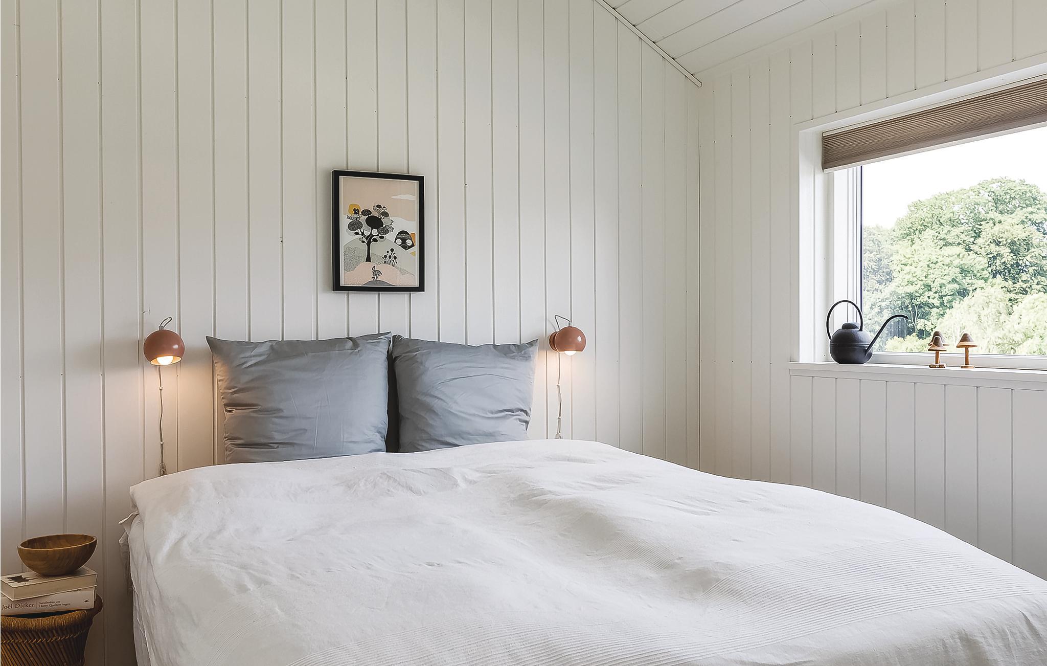 Alle drei Schlafzimmer sind mit guten Betten eingerichtet. Die hochwertigen Baumaterialien ermöglichen dem Haus, dass durch eine Wärmepumpe, einen Ofen und Fußbodenheizung erwärmt wird, einen niedrigen Energieverbrauch.