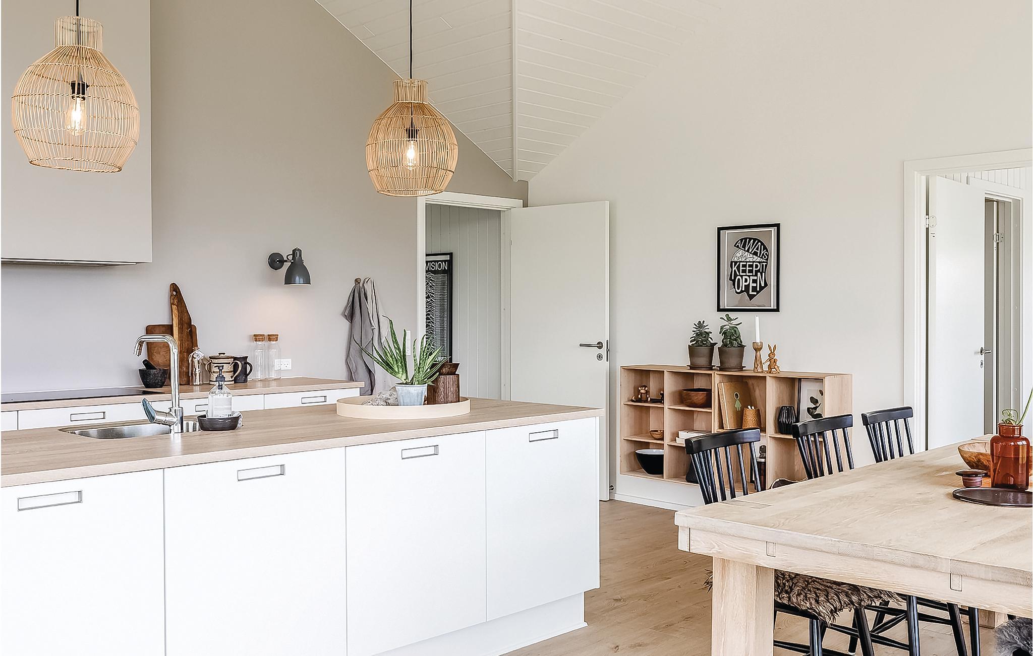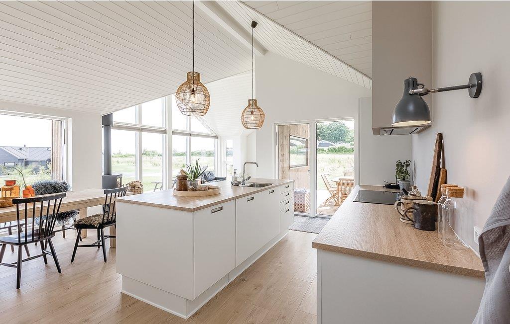 Das Herz des Hauses ist die geräumige Wohnküche, die durch das von draußen durch die großen Fensterpartien einfallende hell erscheint. Gleichzeitig können Sie das wunderschöne Panorama genießen.