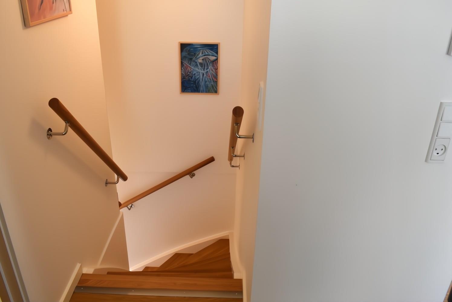 The apartment is accessed via a walkway, and the building has an elevator for easy access. There is free parking in front of the building. From mid-August 2025, you can park for free with one car in a private, fenced area with access to a charging station.