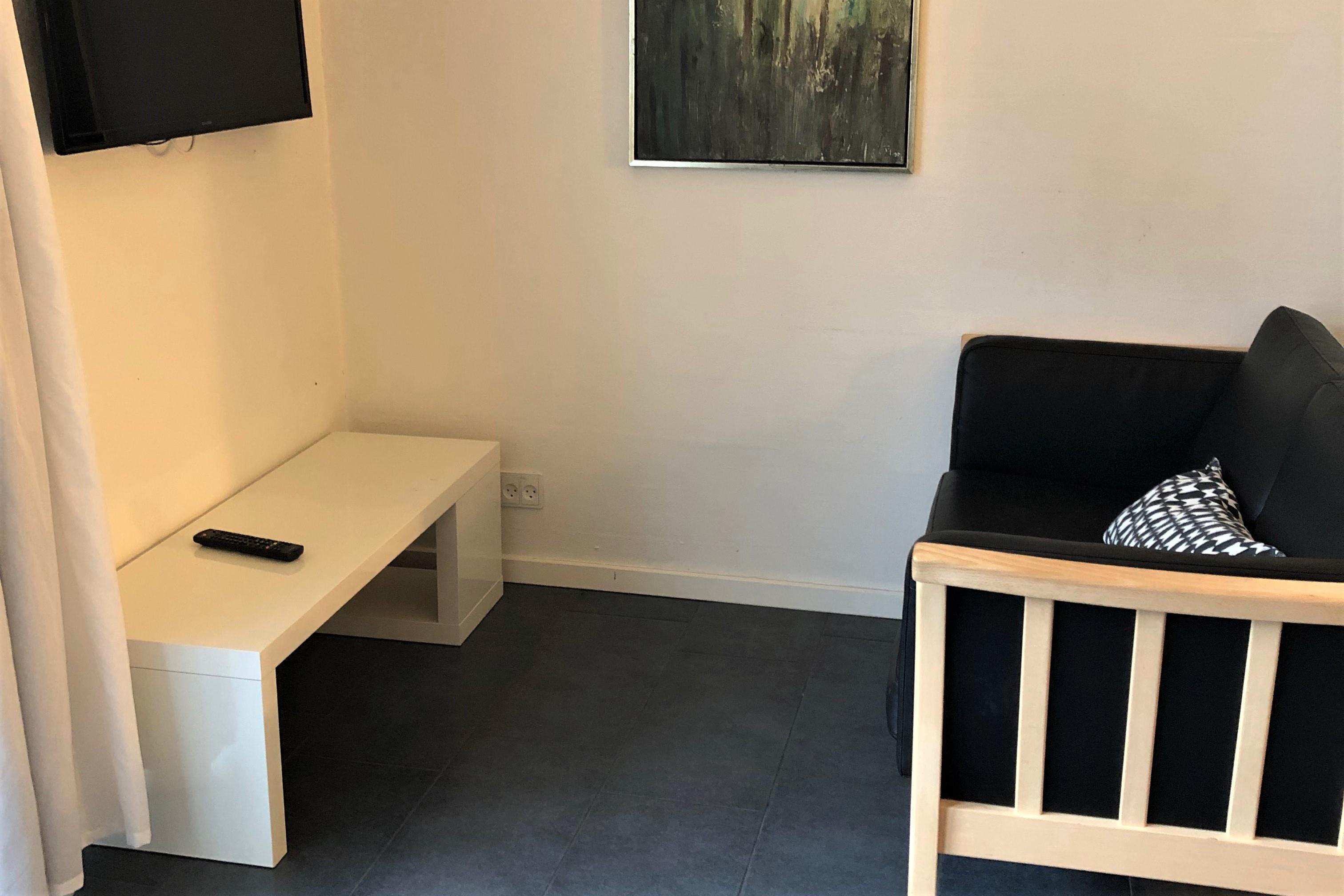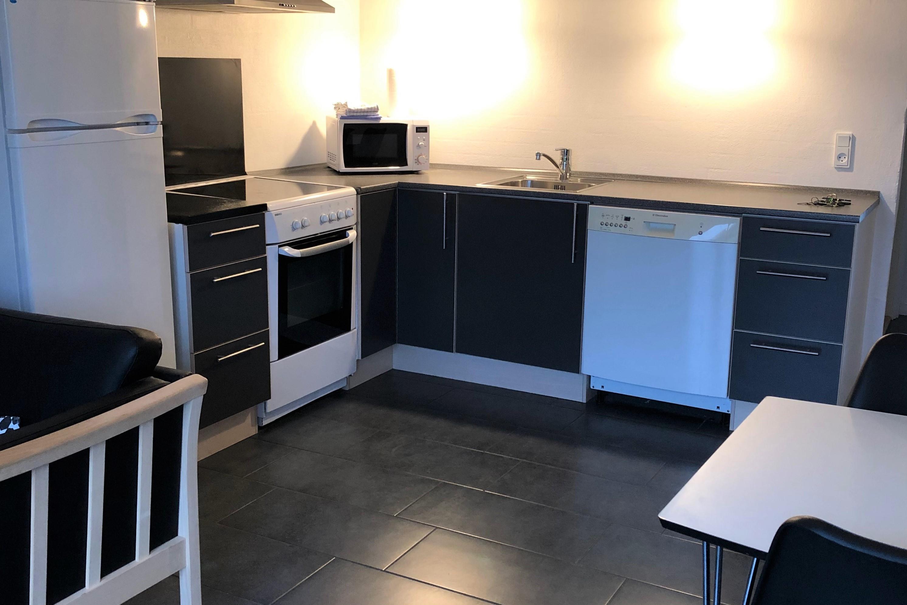 Modern holiday apartment located in the small holiday complex Kerteminde Byferie, just 2km from the center of Kerteminde and 800m from the beautiful beach. The apartment is on one level and contains a living room with open kitchen, a bathroom, one bedroom with one double bed and an open attic with two mattresses. From the living room you have access to a private terrace with garden furniture and view of the playground.