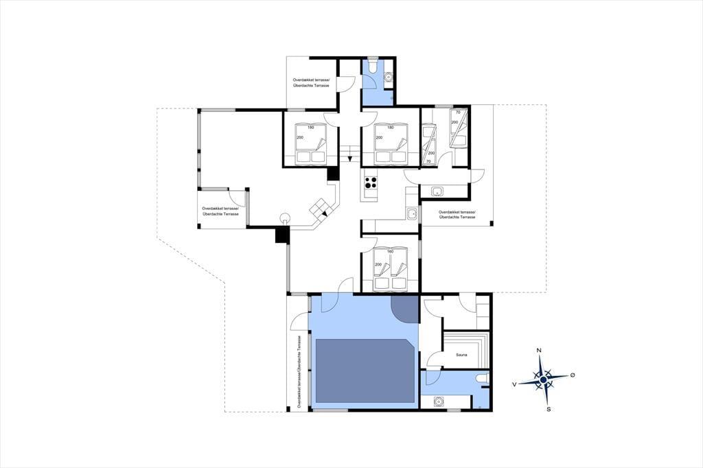 Das Ferienhaus liegt erhöht in der Dünenlandschaft. Über eine steile Zufahrt erreichen Sie den Hauseingang, wiederum genießen Sie vom Grundstück und Haus einen tollen Blick über die Dünen und die Nordsee. Es sind 10 Schlafmöglichkeiten vorhanden, die sich auf vier Schlafzimmer verteilen. Falls eine Großfamilie oder zwei kleine Familien zusammen verreisen, ist dieses Haus ein guter Tipp. Das Haus wurde in versetzten Ebenen gebaut. Vom Wohnzimmer, das aus zwei zusammenhängenden Räumen mit schönem Kamin, TV und Möglichkeiten zum Entspannen auf den Sofas besteht, führt eine kleine Treppe zur Küche mit Essbereich hinauf. In Verlängerung der Essecke liegt der Poolbereich. Waschmaschine und Trockner sorgen dafür, dass Sie immer saubere und trockene Handtücher für jede Runde im kühlen Nass haben werden. Außerdem steht kostenloses WLAN (200/200 Mbit) zur Verfügung - also denken Sie an Ihr Tablet oder Laptop.