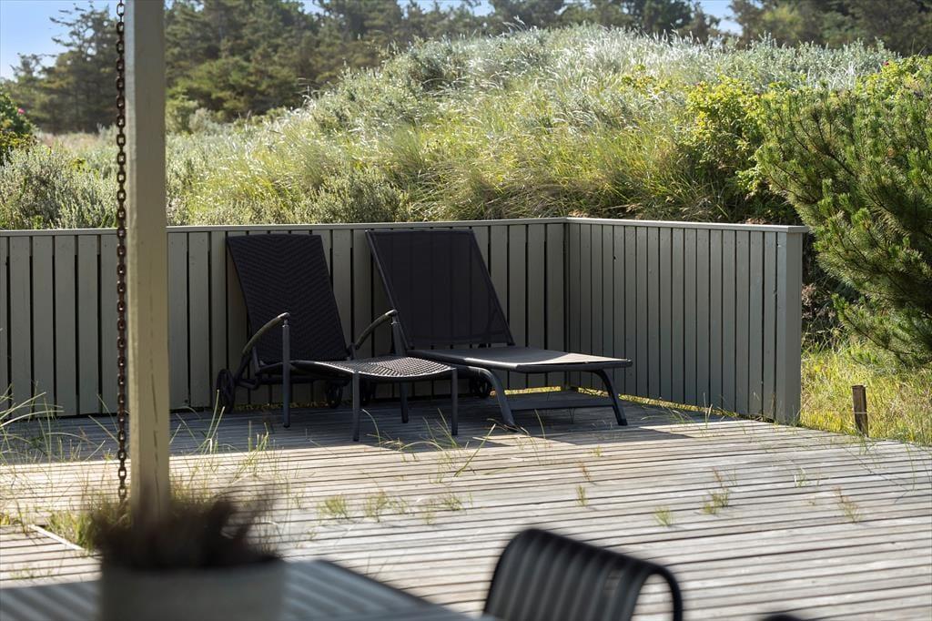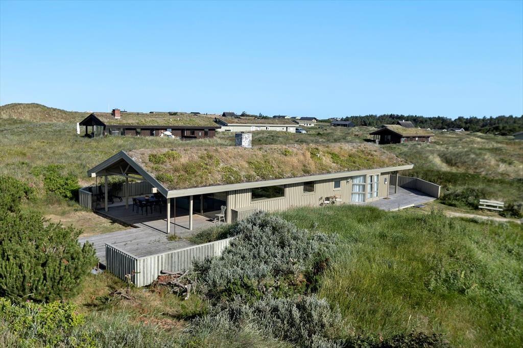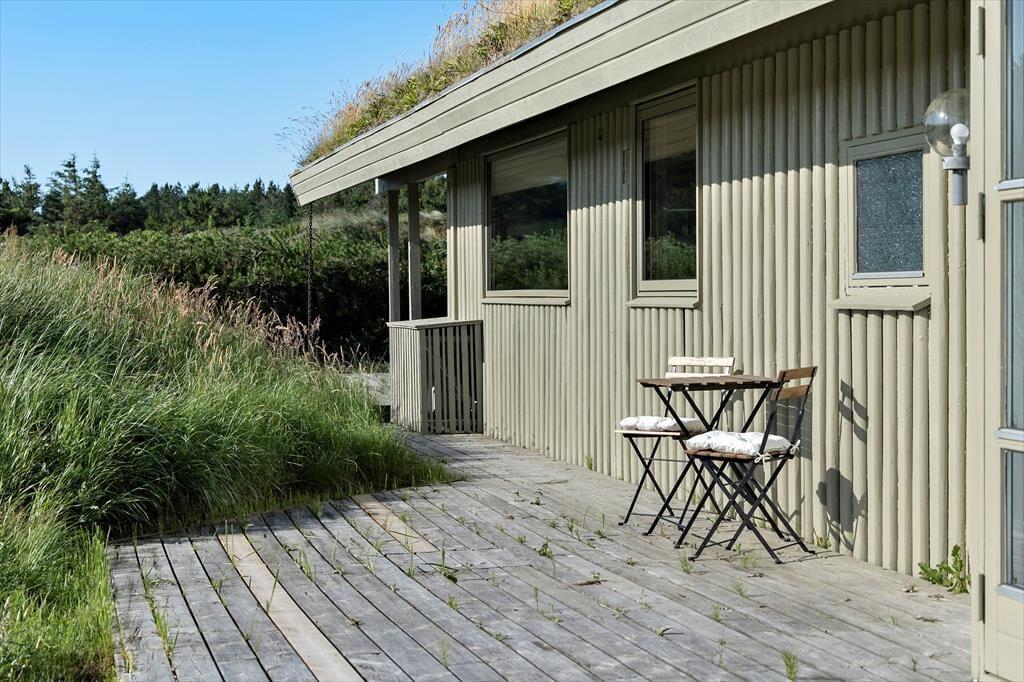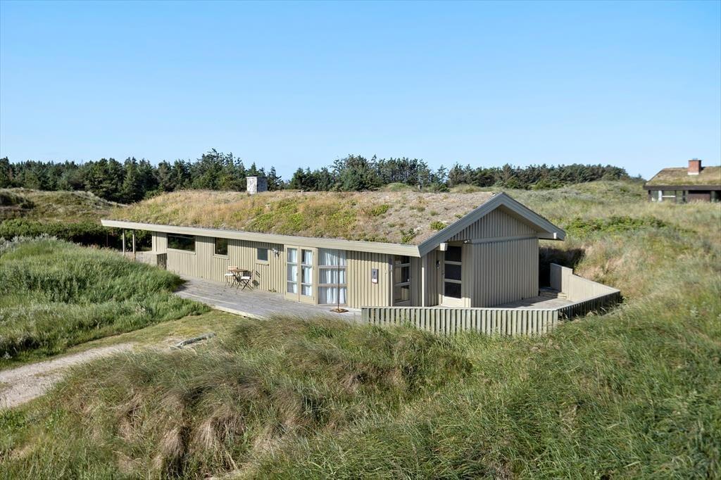 Das Ferienhaus liegt auf einem schönen und charmanten Naturgrundstück in den Dünen. Mit Strandhafer und hohem Gras auf dem Grundstück und einem moosbedeckten Dach fügt sich das Haus ganz natürlich in die malerische Umgebung ein. Es gibt mehrere schöne Terrassen am Ferienhaus; auf dem großen überdachten Teil, der vom Wohnzimmer zugänglich ist, kannst du die Sommerabende mit Grillgerichten und langen Gesprächen genießen, während das Vesterhavet in der Ferne rauscht.