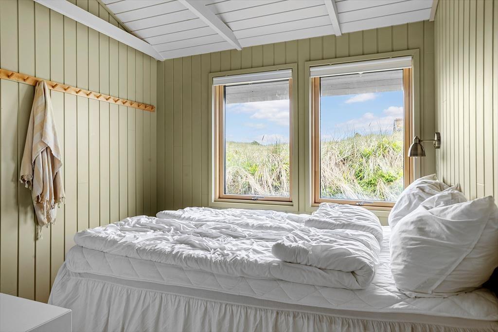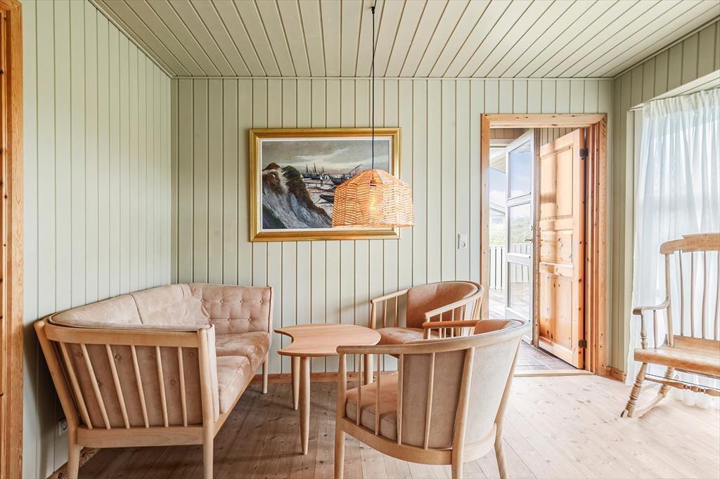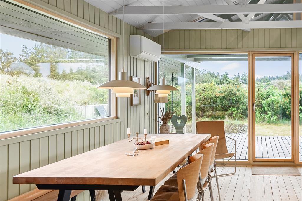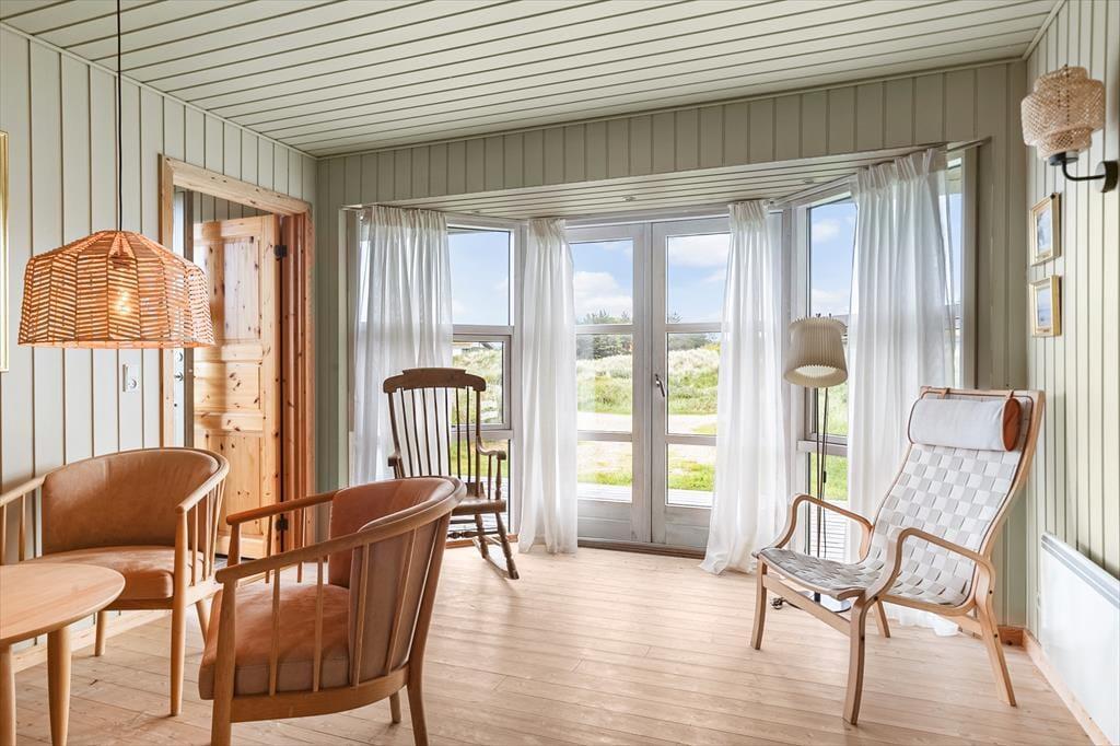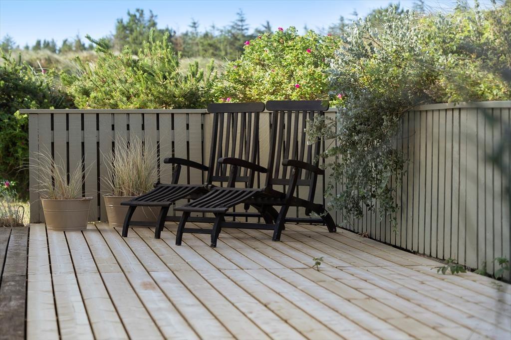 Das Ferienhaus liegt auf einem schönen und charmanten Naturgrundstück in den Dünen. Mit Strandhafer und hohem Gras auf dem Grundstück und einem moosbedeckten Dach fügt sich das Haus ganz natürlich in die malerische Umgebung ein. Es gibt mehrere schöne Terrassen am Ferienhaus; auf dem großen überdachten Teil, der vom Wohnzimmer zugänglich ist, kannst du die Sommerabende mit Grillgerichten und langen Gesprächen genießen, während das Vesterhavet in der Ferne rauscht.