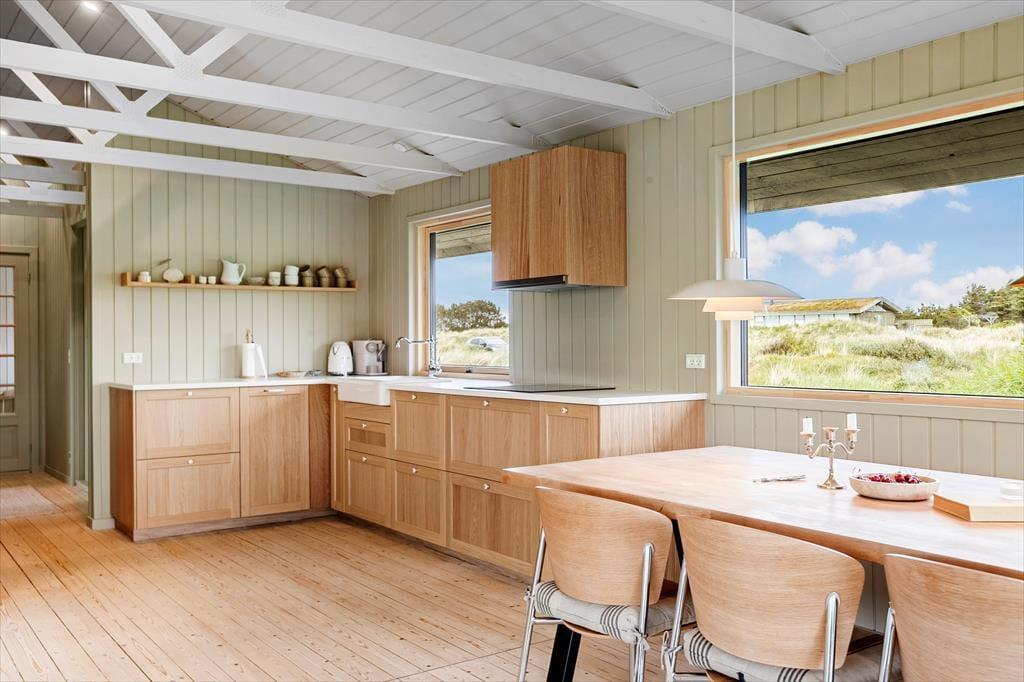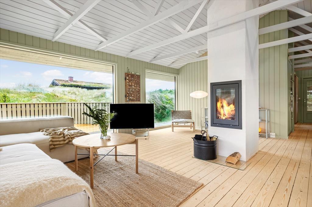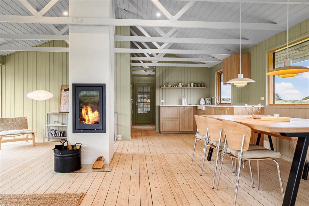 Dieses Ferienhaus wird 2025 vollständig renoviert mit neuer Küche, hohen Decken, größeren Fenstern und neuen Böden. Du findest eine gemütliche und entspannende Atmosphäre im ganzen Ferienhaus. Es gibt eine helle und warme Einrichtung überall, mit schönen und praktischen Möbeln sowie einem wunderschönen neuen Kaminofen im Wohnzimmer. Am einen Ende des Hauses findest du ein großes Wohnzimmer mit offener Küche, einen gemütlichen Essbereich mit Platz für viele und ein Wohnzimmer mit einem großen und bequemen Sofa, auf dem die ganze Familie zusammen sitzen und sich bei einem guten Film auf dem Fernseher entspannen kann. Am anderen Ende kannst du das besondere Licht des Vesterhavens am Glas-Kamin genießen, der auch fantastisch für eine ruhige Zeit mit der Tageszeitung oder einem guten Buch ist. Das Ferienhaus verfügt außerdem über ein Badezimmer mit Dusche, ein Gäste-WC, zwei Schlafzimmer mit Doppelbetten und ein Zimmer mit Etagenbetten. Wenn du E-Mails abrufen oder dich über die neuesten Nachrichten informieren möchtest, kannst du das drahtlose Internet nutzen. Eine sichere und gute Wahl für deinen nächsten Familienurlaub in Nordjütland!