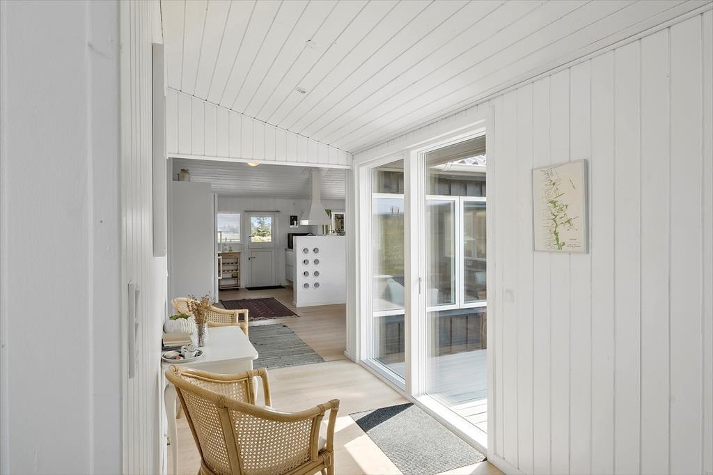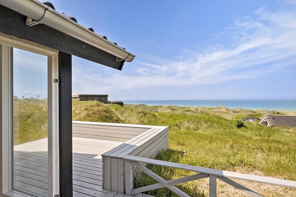 Je nach Jahreszeit und Windverhältnissen gibt es mehrere schöne Außenbereiche auf dem großen Naturgrundstück. Der nach Süden ausgerichtete Wintergarten ist eine ausgezeichnete Wahl, wenn ihr im Windschutz sitzen und gleichzeitig den Blick auf die Dünenlandschaft genießen möchtet. Die abgeschirmte, überdachte Terrasse ist ebenfalls ein schöner Zwischenstopp. Vom Wintergarten aus habt ihr außerdem Zugang zu einem kleinen, ungestörten Innenhof, während die westlichen Terrassen der beste Blick auf das Meer bieten. Östlich des Hauses gibt es eine schöne Morgen-Terrasse sowie einen Carport für das Auto.