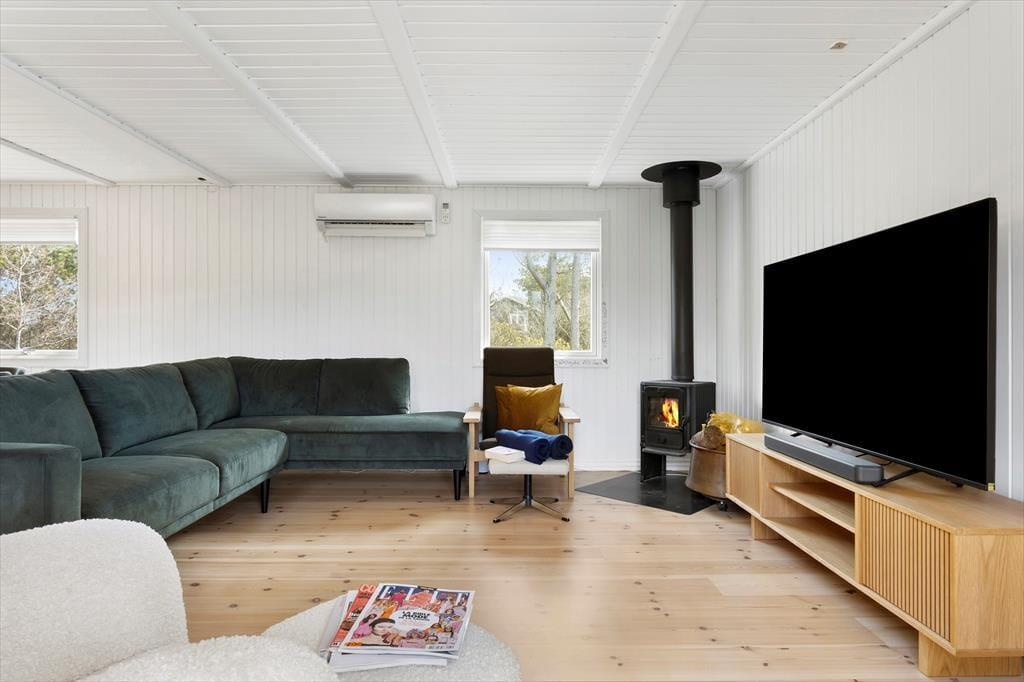 Das Ferienhaus wird derzeit umfassend renoviert und wird in Woche 16 in neuem Glanz erstrahlen und bezugsfertig sein. Im Inneren empfängt dich eine helle und einladende Atmosphäre, in der das Wohnzimmer das Herzstück des Hauses bildet. Hier kannst du es dir auf dem Sofa gemütlich machen, durch die großen Fenster den Blick in die wunderschöne Natur schweifen lassen und die wohlige Wärme des Kaminofens genießen, der für die perfekte Ferienhaus-Gemütlichkeit sorgt. Das Wohnzimmer hat direkten Zugang zur Terrasse, sodass du Innen- und Außenleben mühelos verbinden kannst.