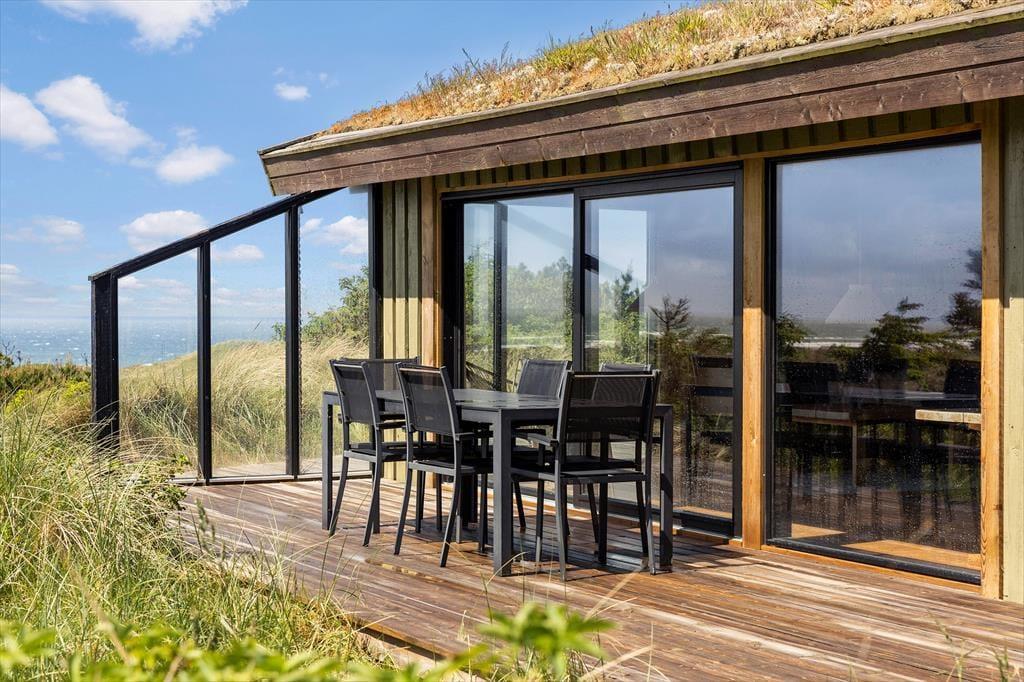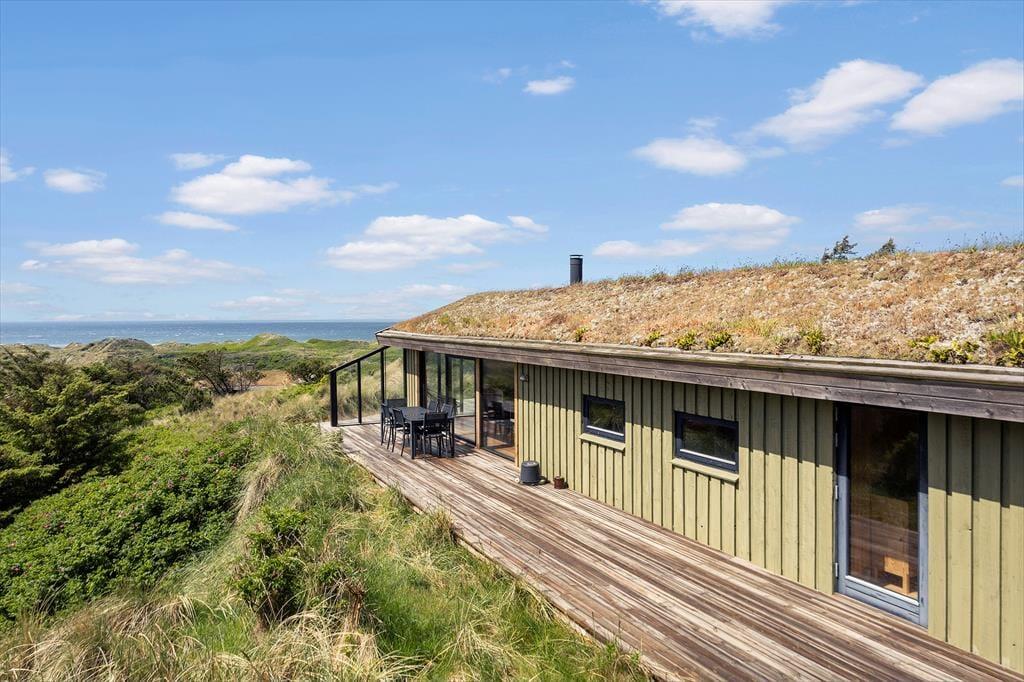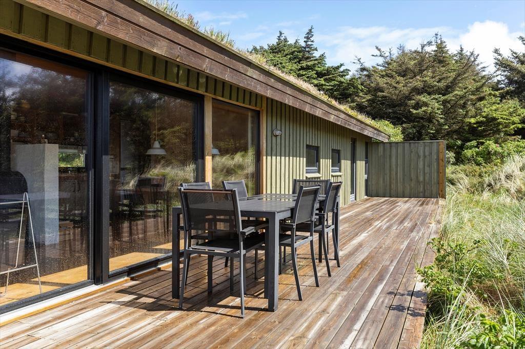 Wenn die Sonne über den Kettrup Bjerge scheint, verlagert sich das Urlaubsleben ganz automatisch nach draußen. Auf dem abgeschirmten Grundstück genießt du eine seltene Ruhe – nur unterbrochen vom Gesang der Vögel und dem Rauschen des Windes über der Dünenlandschaft. Es gibt viele windgeschützte Ecken und sonnige Plätze, in denen du es dir gemütlich machen kannst – sei es für einen ruhigen Moment mit einem Buch auf der Sonnenliege oder mit einem Glas Wein in der Abendsonne und Panoramaausblick auf die Nordsee. Hier findest du schnell deine Balance – und das Gefühl, dem Alltag weit entrückt zu sein. Wenn die Dunkelheit einsetzt und die Sterne über den Dünen aufleuchten, liegt beinahe etwas Magisches in der Stille und der Aussicht, die bis zum Horizont reicht.