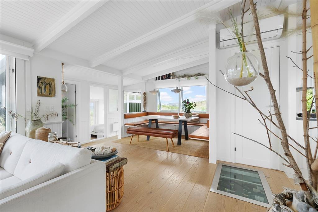 Das Ferienhaus ist mit viel Liebe zum Detail und einer warmen, einladenden Atmosphäre eingerichtet. Hier fühlt man sich sofort wohl – auch beim allerersten Besuch. Die offene Küche ist direkt mit dem Wohnbereich verbunden und bietet einen perfekten Rahmen für gesellige Urlaubsmomente, in denen Kochen und Plaudern Hand in Hand gehen. Große Fensterfronten lassen viel Tageslicht herein und eröffnen einen freien Blick auf das wechselhafte Farbspiel des Himmels über dem Meer. Im Wohnzimmer sorgt der Kaminofen für wohlige Wärme und Gemütlichkeit, wenn du dich nach einem erlebnisreichen Tag auf dem Sofa entspannst. Der Grundriss umfasst drei schöne Schlafzimmer und zwei Badezimmer mit Dusche und WC – ideal für Familien mit Kindern oder befreundete Paare, die gemeinsam verreisen. Die helle, freundliche Einrichtung unterstreicht das Gefühl von Ruhe und Leichtigkeit, das sich wie ein roter Faden durch das Haus zieht – ganz im Einklang mit der malerischen Natur rundherum.