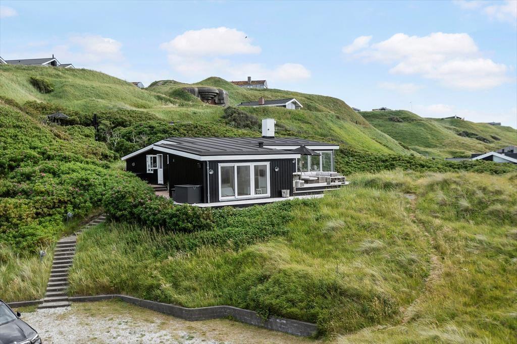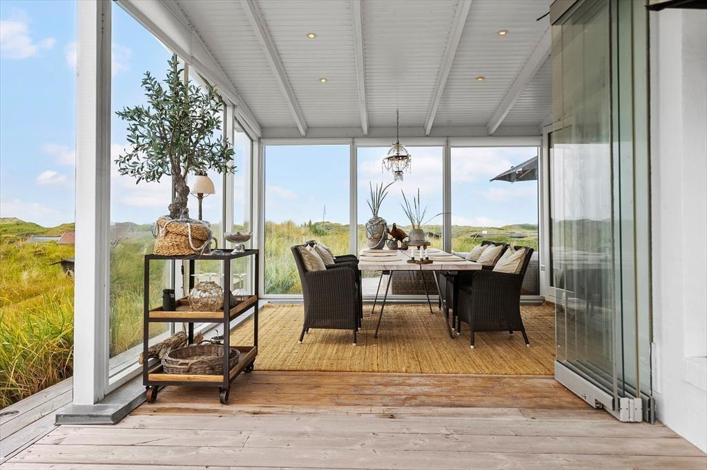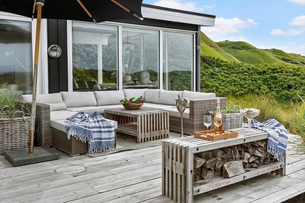 Auf dem großen Naturgrundstück des Ferienhauses kannst du tief durchatmen und die frische Meeresluft in aller Ruhe genießen. Es stehen sowohl offene als auch überdachte Terrassen zur Verfügung – perfekt für einen Morgenkaffee mit Meerblick im Hintergrund oder ein gutes Buch an einem windgeschützten Platz. Am Abend könnt ihr euch am Grill versammeln und ein leckeres Abendessen unter freiem Himmel genießen, während die Sonne langsam hinter den Dünen versinkt. Die hügelige Landschaft rund um Kettrup Bjerge lässt dich die Natur besonders intensiv erleben – nicht selten lassen sich Hasen oder Fasane auf dem Grundstück blicken, während du auf der Terrasse die Stille genießt. Hier ist Platz für ruhige Momente der Reflexion ebenso wie für gemeinsame Stunden mit Familie oder Freunden – genau die Art ungestörter Ruhe, aus der Urlaubsträume gemacht sind.