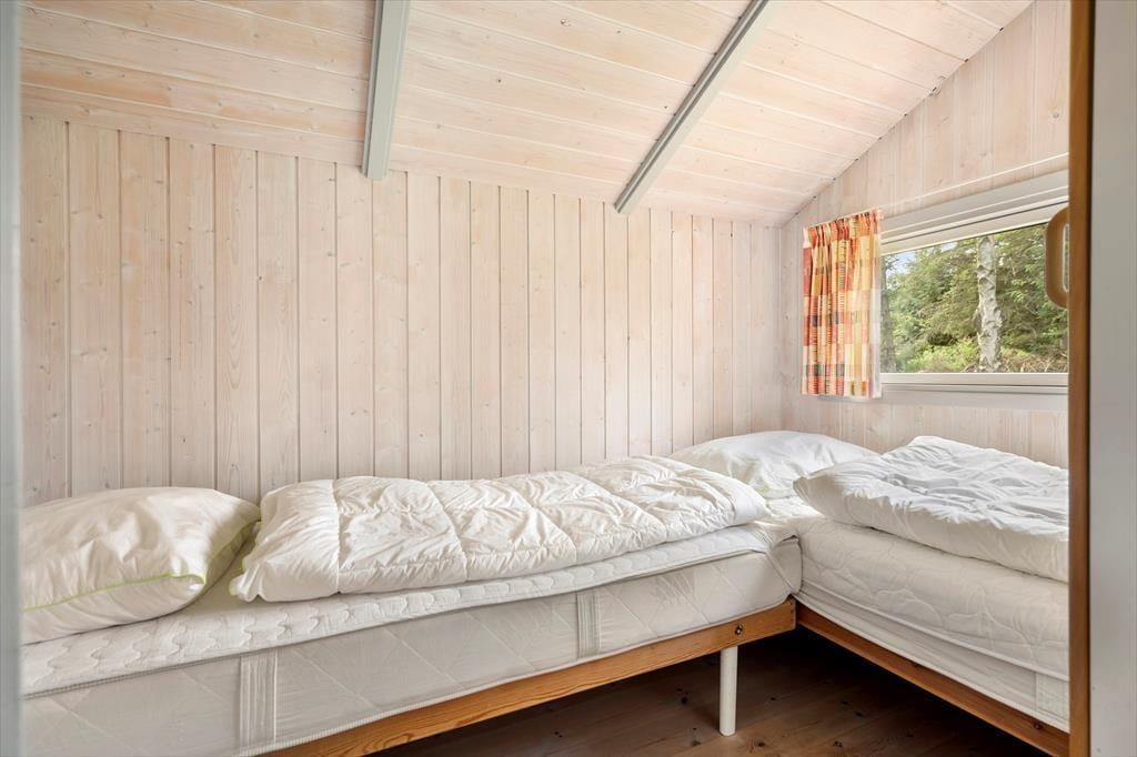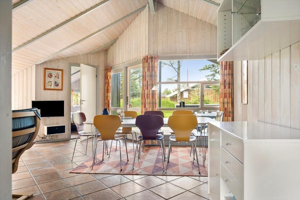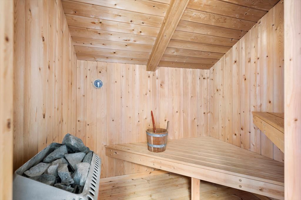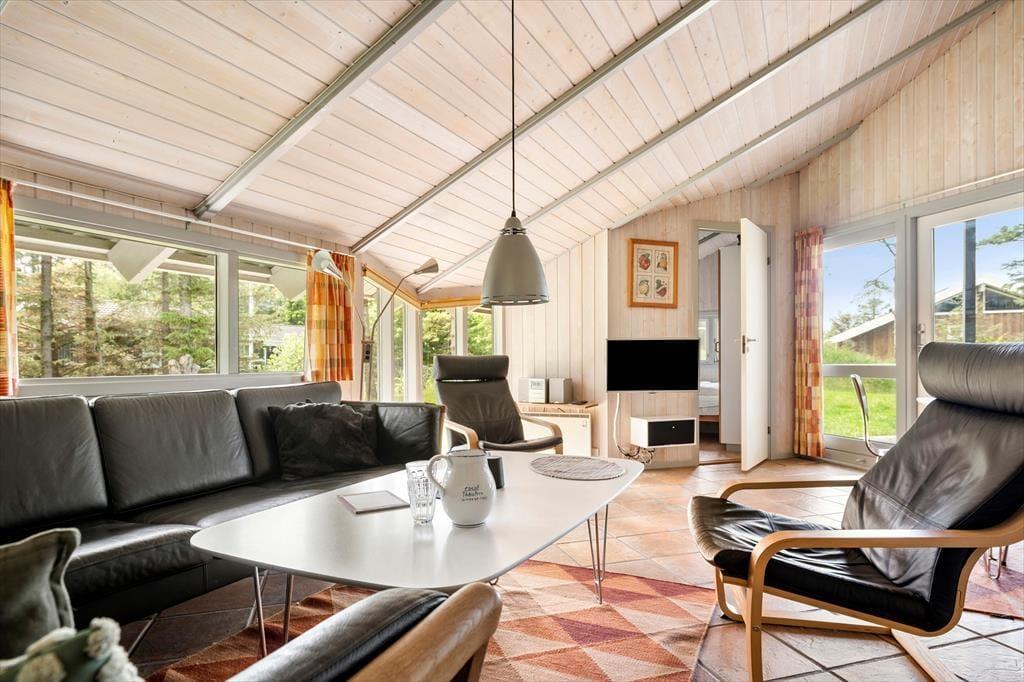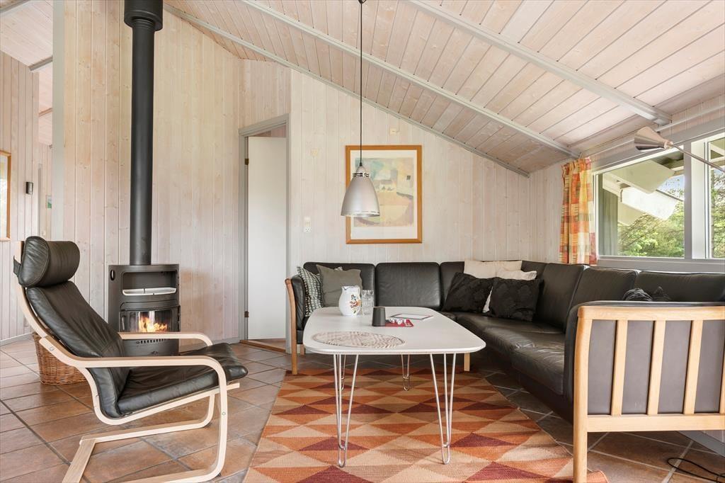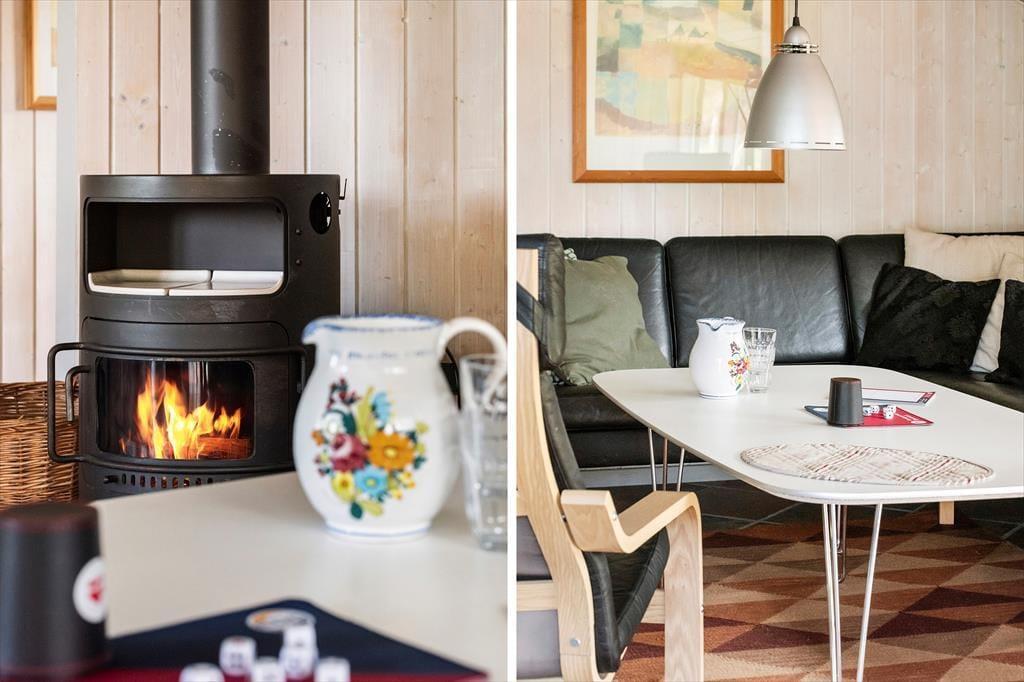 Das Ferienhaus ist funktional eingerichtet mit Küche, Wohnzimmer und Essbereich als natürlichen Treffpunkt, während die Schlafzimmer und Badezimmer rundherum verteilt sind. Es gibt helle Paneele an Wänden und Decken sowie helle Böden und große Fenster, die das Haus sehr freundlich und einladend wirken lassen. Die Küche ist mit allen Arten von Haushaltsgeräten ausgestattet, und im Wohnzimmer kann man sich bei einem gemütlichen Feuer im Kamin entspannen oder auf eine der Terrassen gehen, um die langen Sommerabende zu genießen. Die Schlafzimmer haben bequeme Betten und Stauraum, und im großen Badezimmer gibt es sowohl eine Dusche, ein Whirlpool als auch eine Sauna. Außerdem sind Waschmaschine, Stuhl und Bett für die kleinsten Kinder vorhanden.